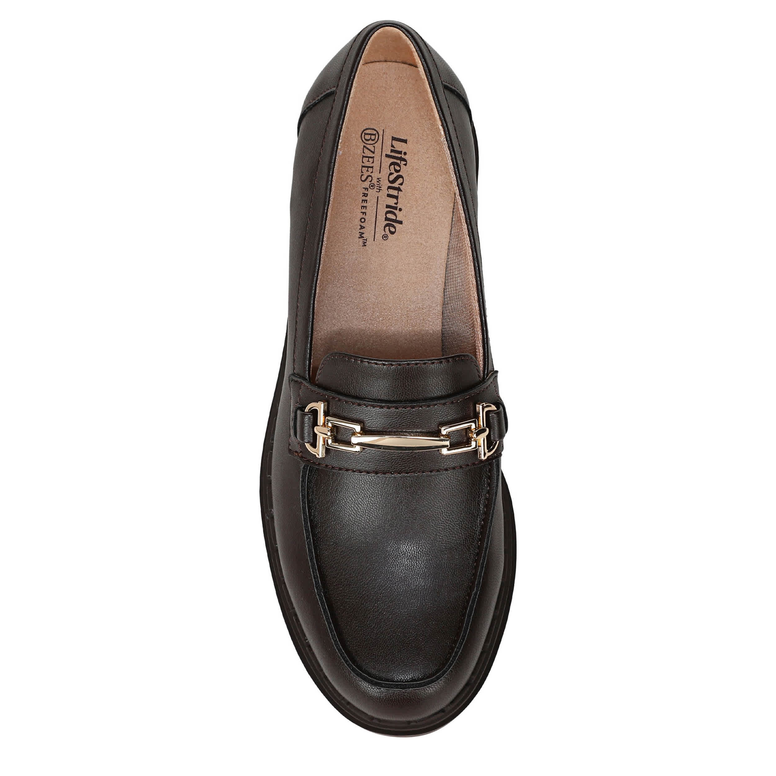 Trend comfortably in the Dolce Bit loafer from LifeStride. Featuring a faux leather upper with horsebit hardware, this lightweight shoe keeps your style flexible. The Bzees® FreeFoam™ comfort technology offers cloud-like cushioning, while that wedge adds stable lift and traction.