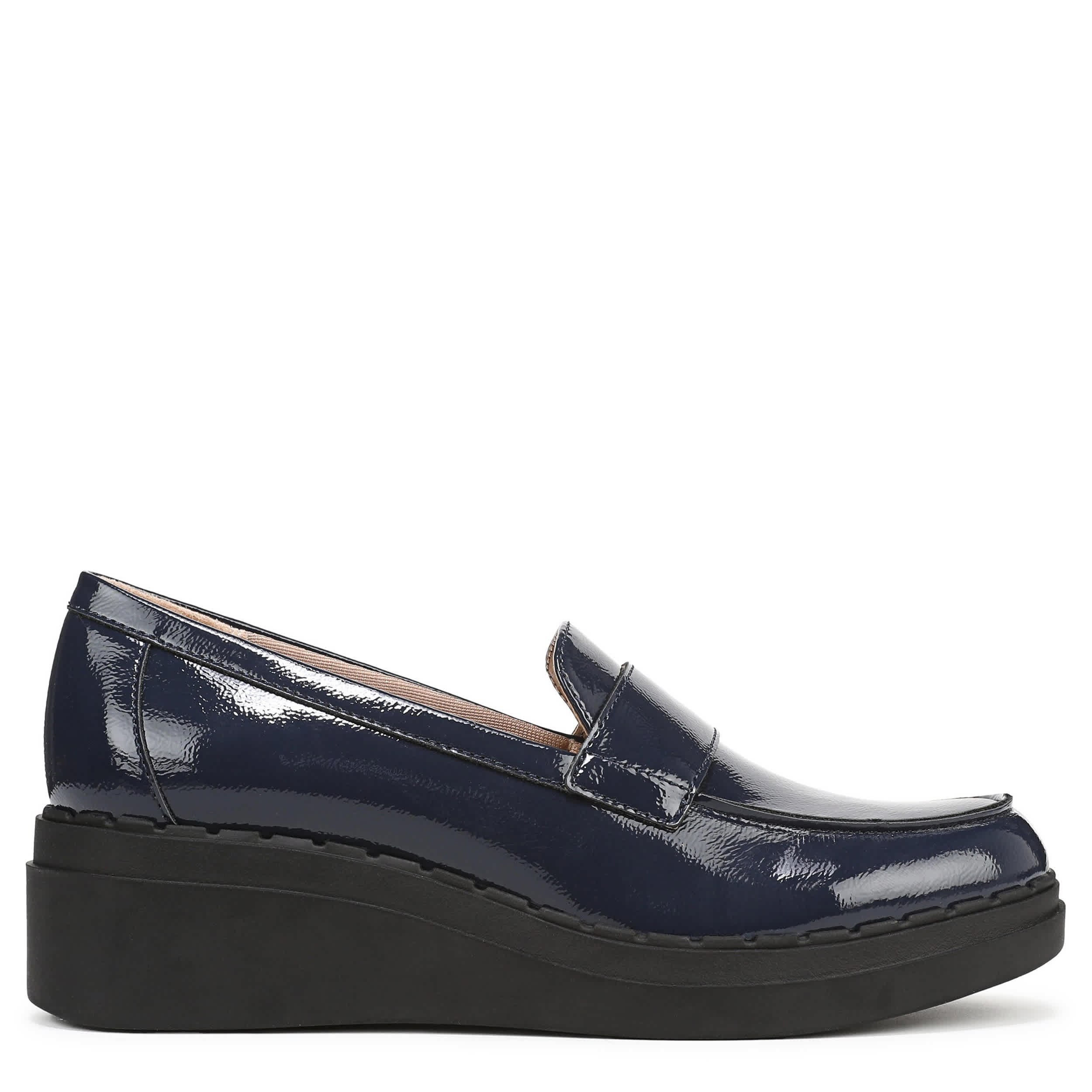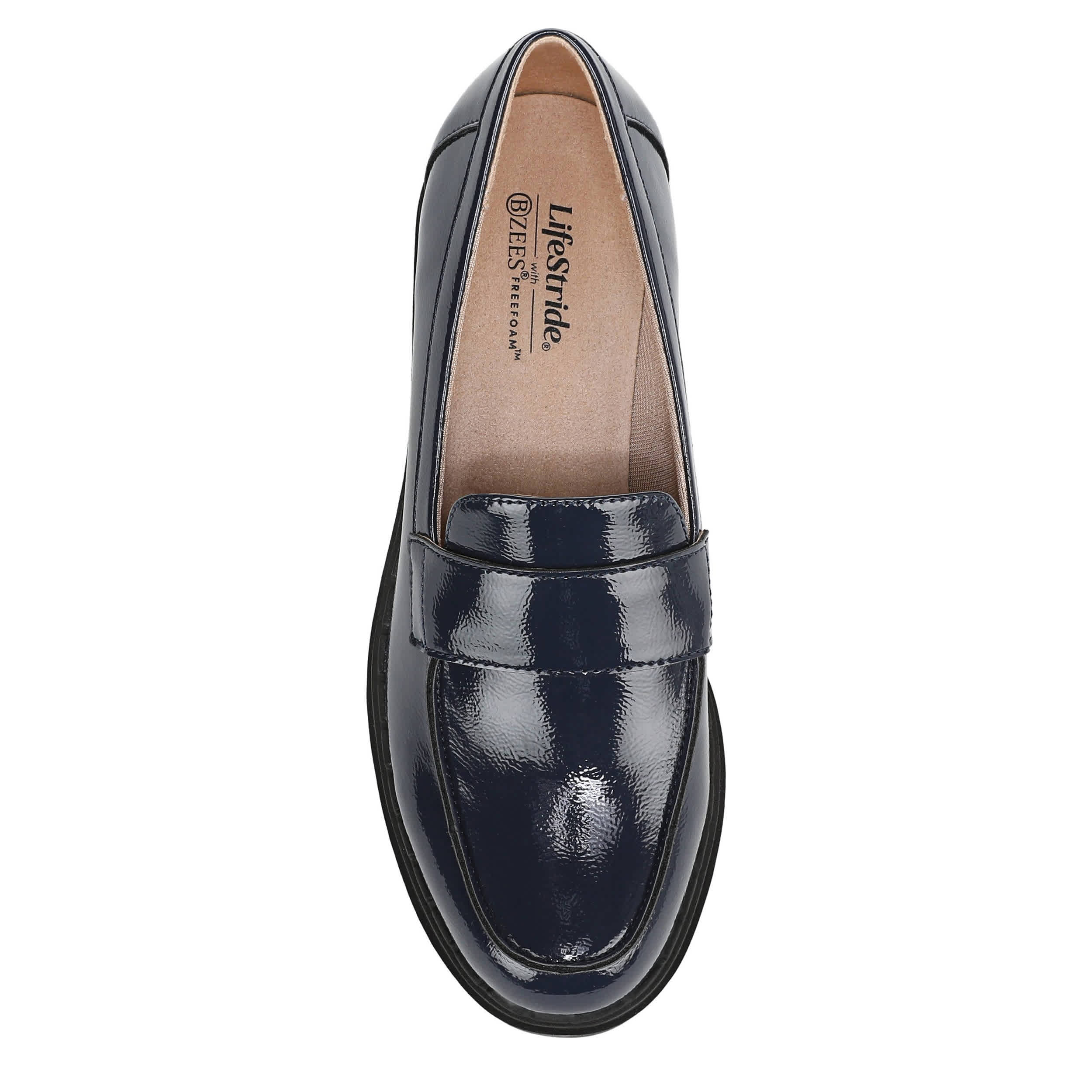 Trendy comfort is possible with the Dolce loafer from LifeStride. Featuring a patent leather upper, this lightweight shoe keeps your style flexible. The Bzees® FreeFoam™ comfort technology offers cloud-like cushioning, while that wedge adds stable lift and traction.