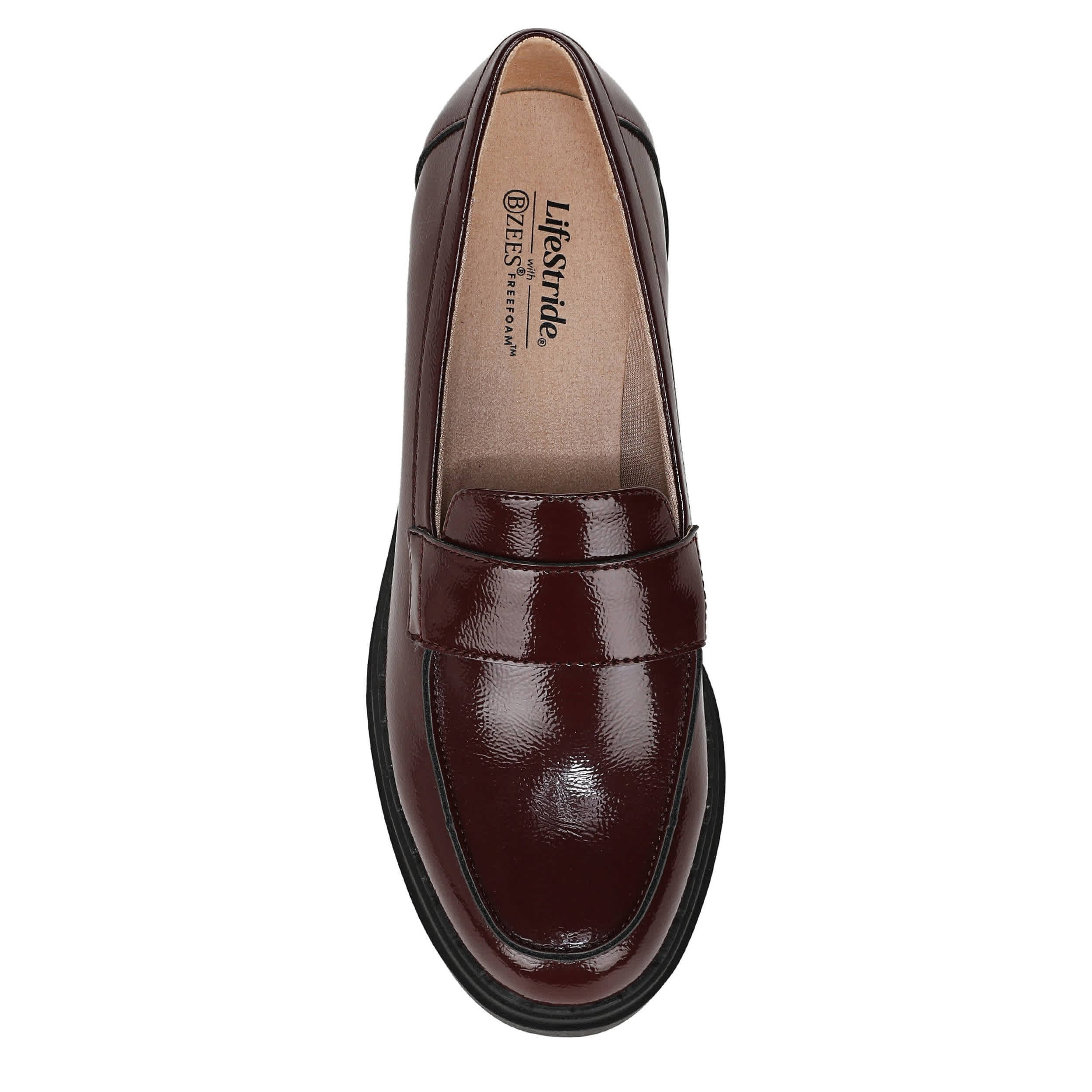 Trendy comfort is possible with the Dolce loafer from LifeStride. Featuring a patent leather upper, this lightweight shoe keeps your style flexible. The Bzees® FreeFoam™ comfort technology offers cloud-like cushioning, while that wedge adds stable lift and traction.