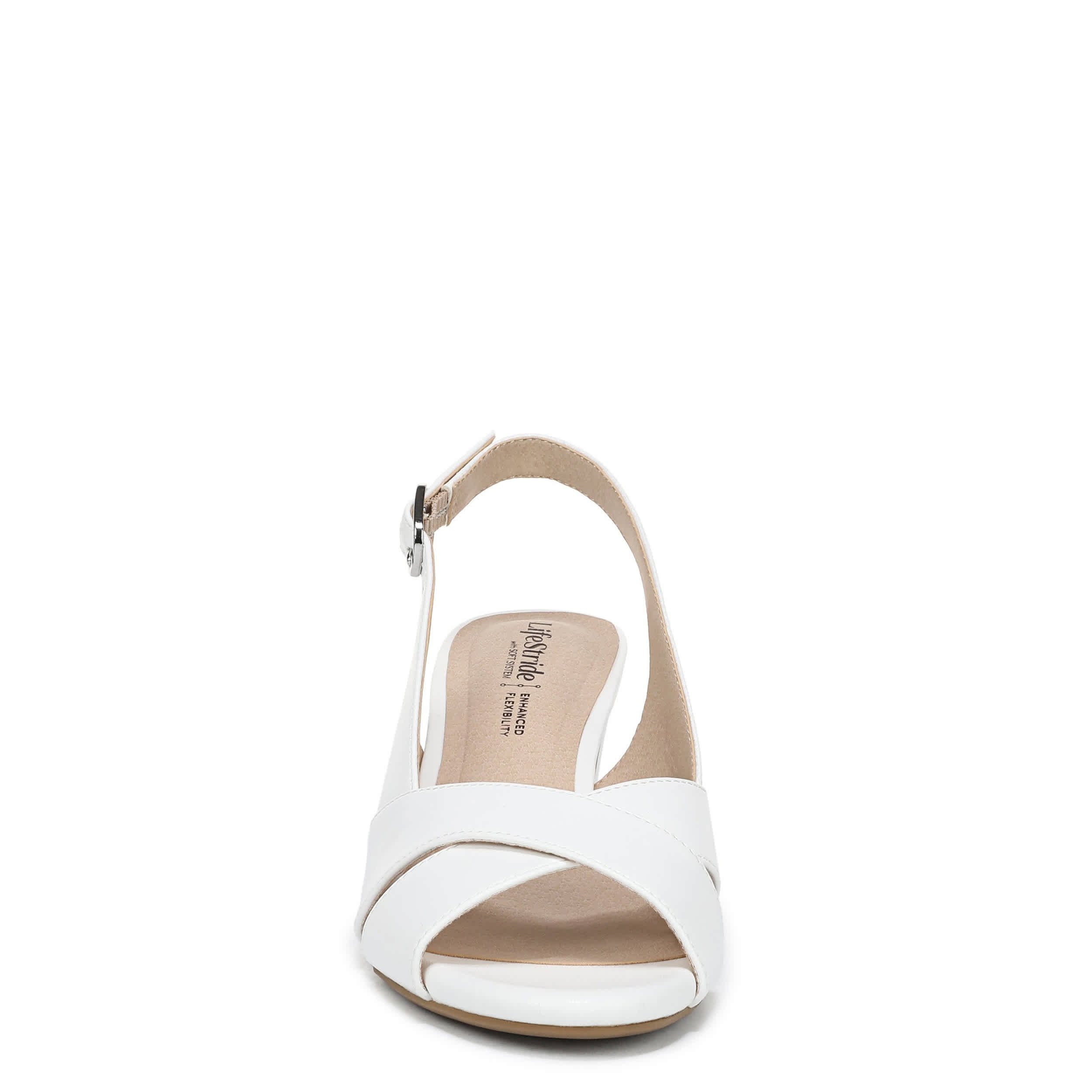 Your style remains sophisticated in the Freesia women's sandal from LifeStride, no matter the occasion. With a faux leather upper featuring a crossover strap detail, this modern sandal effortlessly transitions from day-to-night. The Soft System® comfort package cushions your feet, while the ultra-flexible, padded platform heel provides just enough lift.