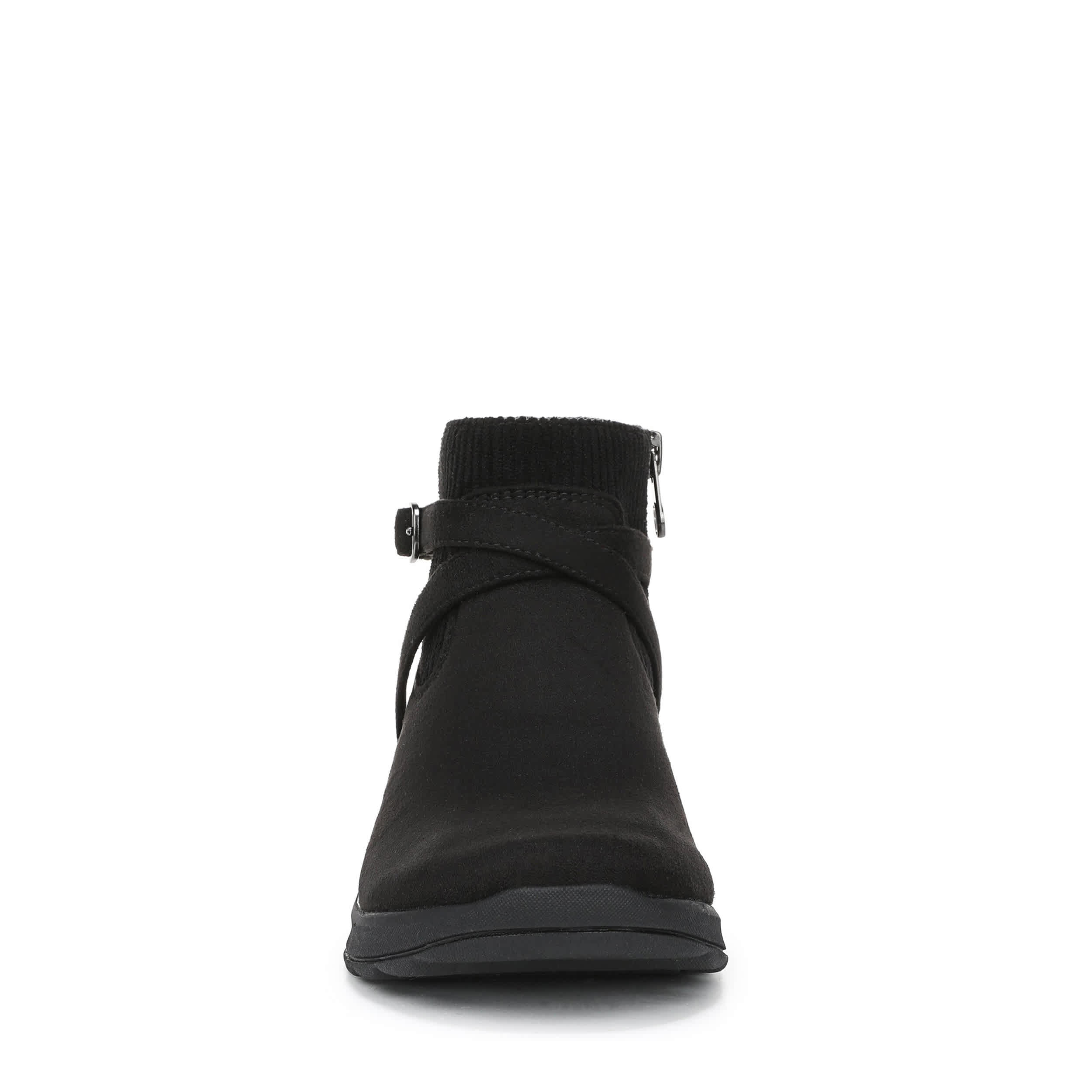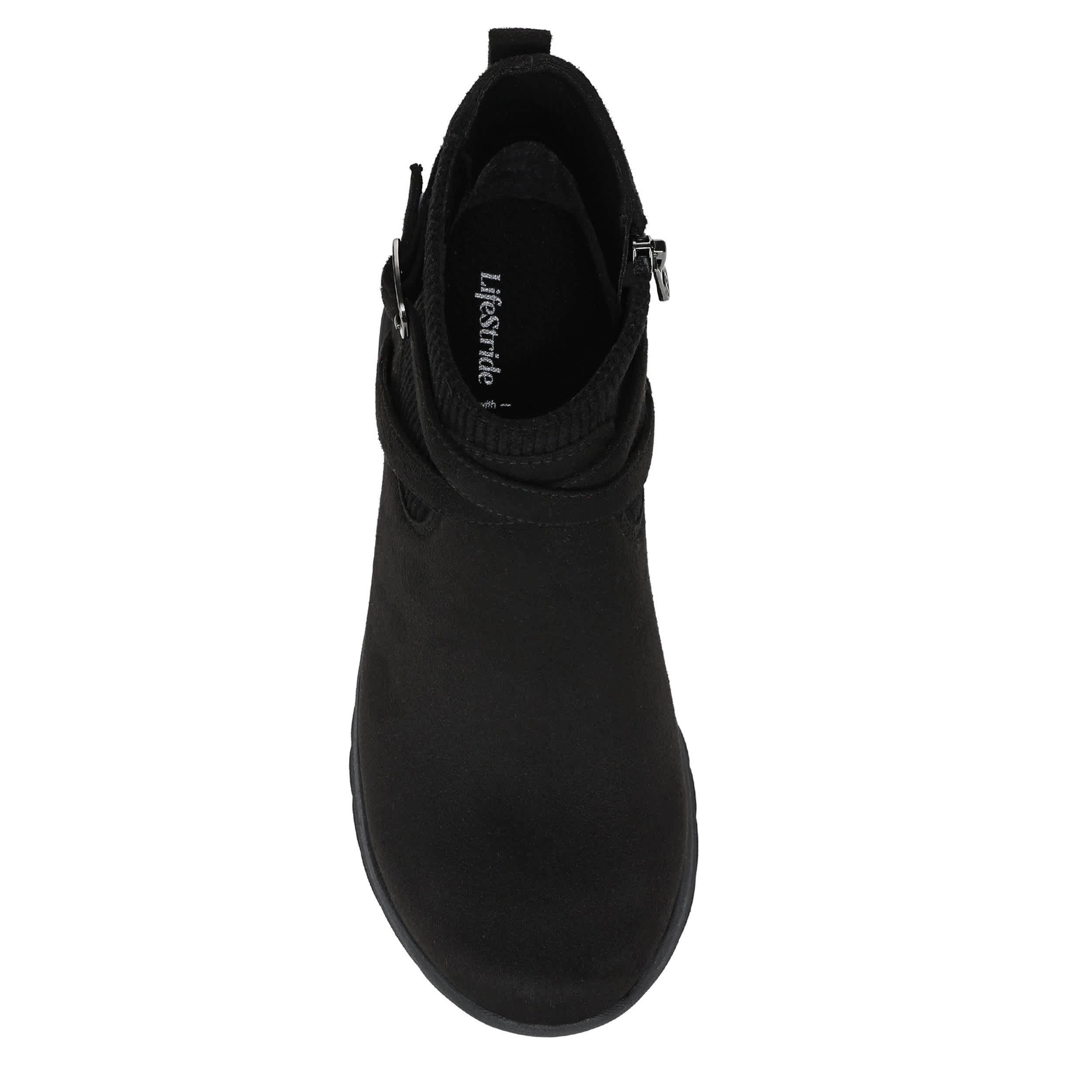 Open up with the Gates women's ankle boot from LifeStride. Featuring a microfiber upper with built-in stretch and decorative strap, this bootie also has anti-microbial and odor control technology. The low pressure insole adds cushy arch support, while the whole shoe feels practically weightless.