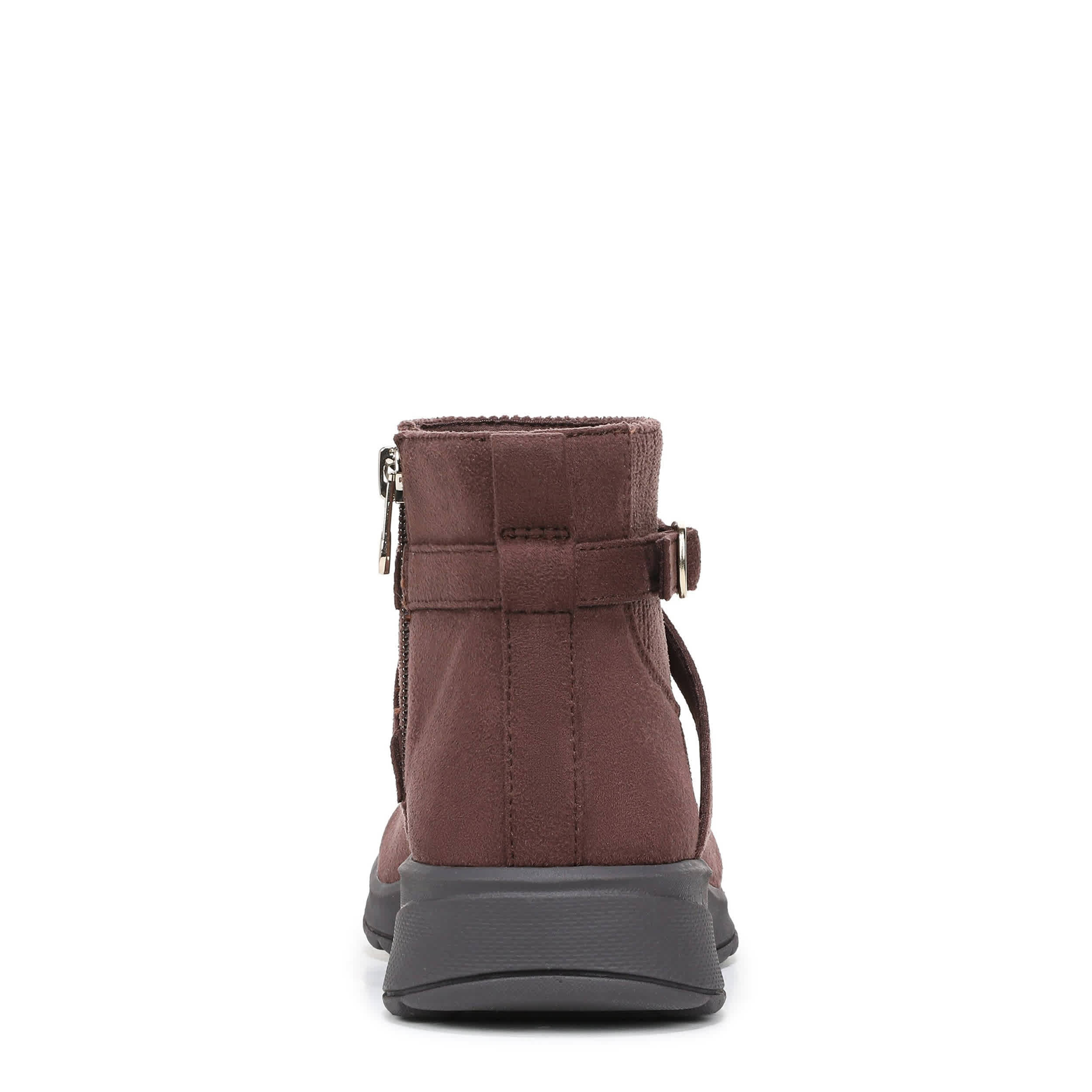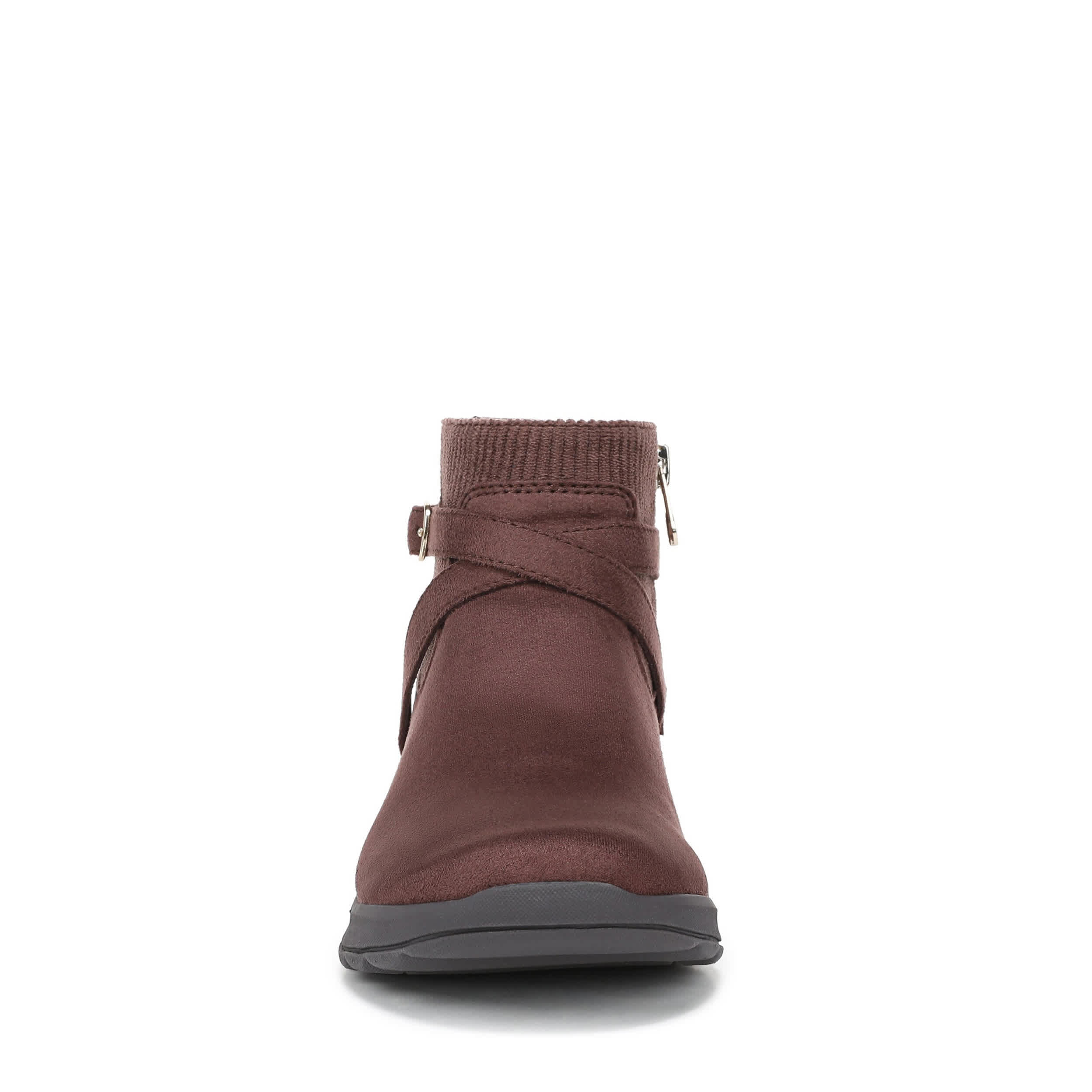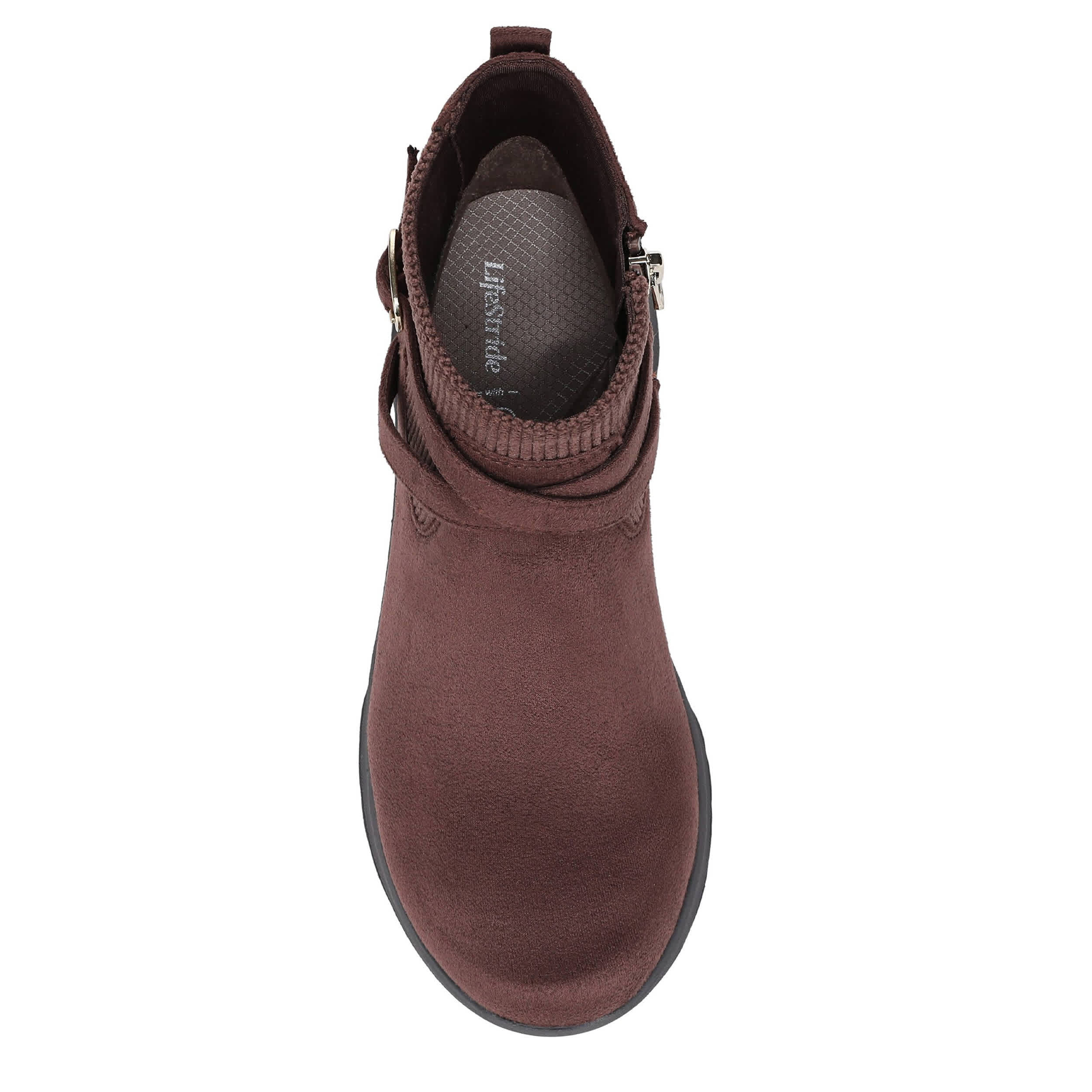 Open up with the Gates women's ankle boot from LifeStride. Featuring a microfiber upper with built-in stretch and decorative strap, this bootie also has anti-microbial and odor control technology. The low pressure insole adds cushy arch support, while the whole shoe feels practically weightless.