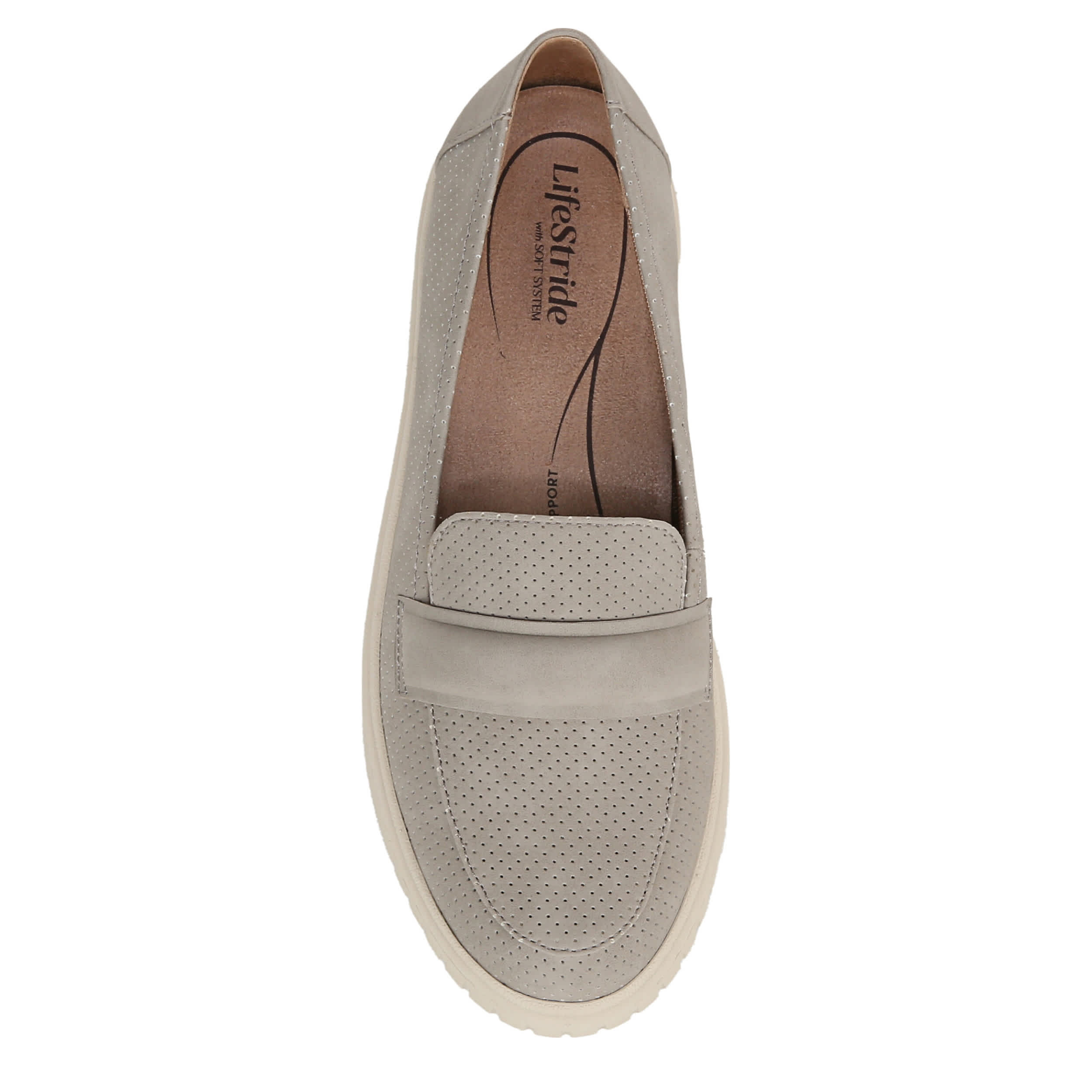 Be comfortable every day in the LifeStride Geneva loafer. With a faux leather upper featuring a strap detail across the toe, this shoe will be your new casual go-to. The cushioned footbed with Soft System® comfort technology and arch support ensures supported steps, while the outsole offers decent traction.