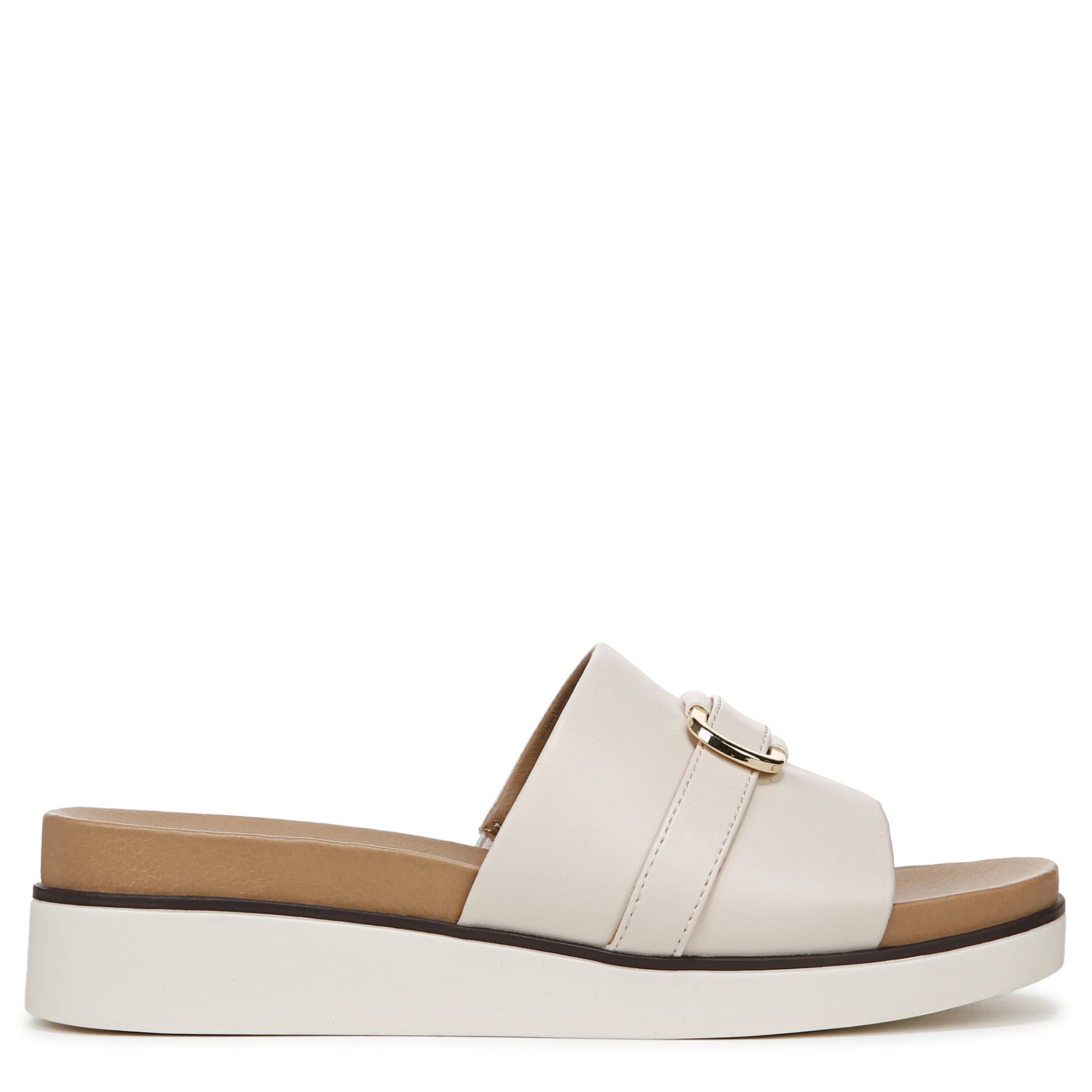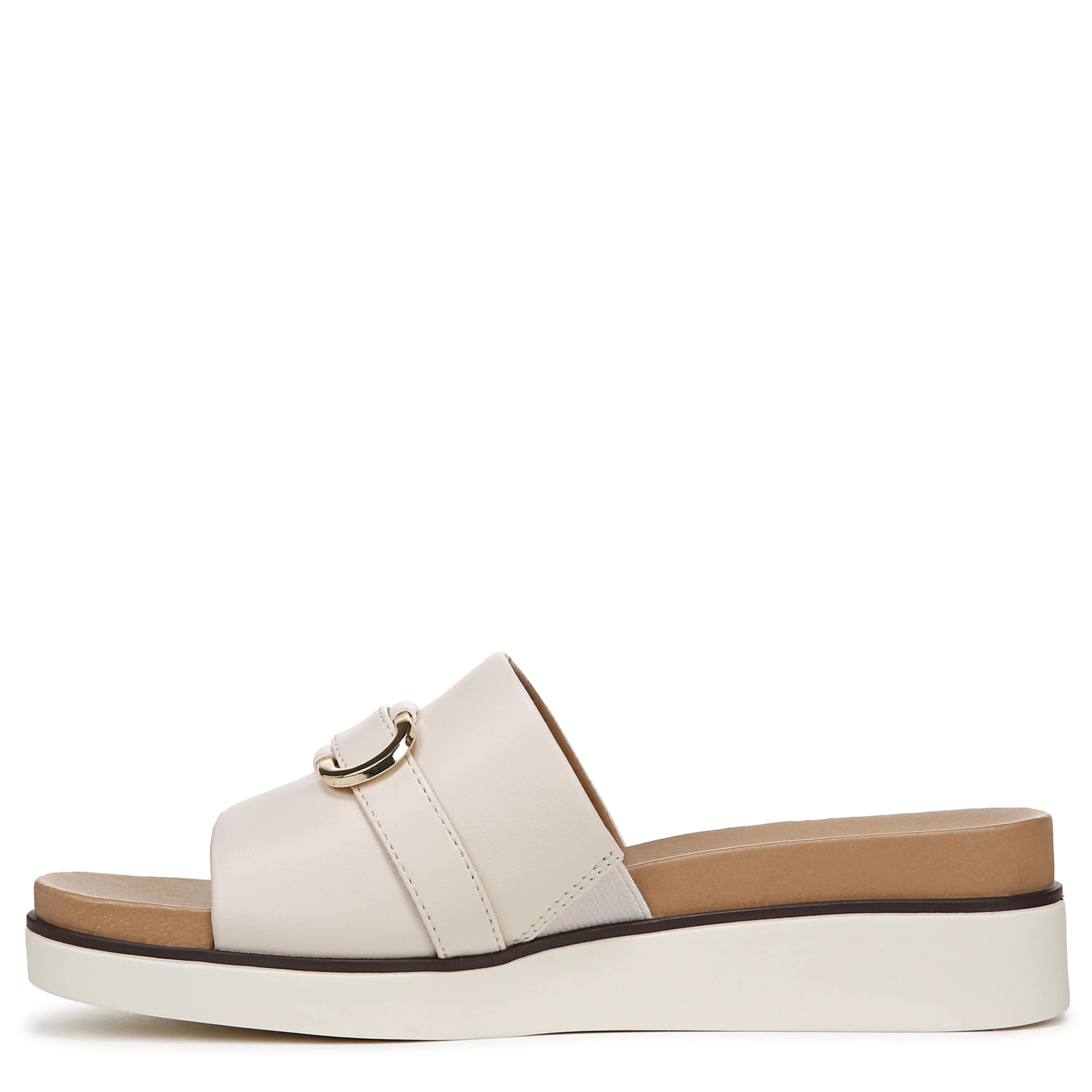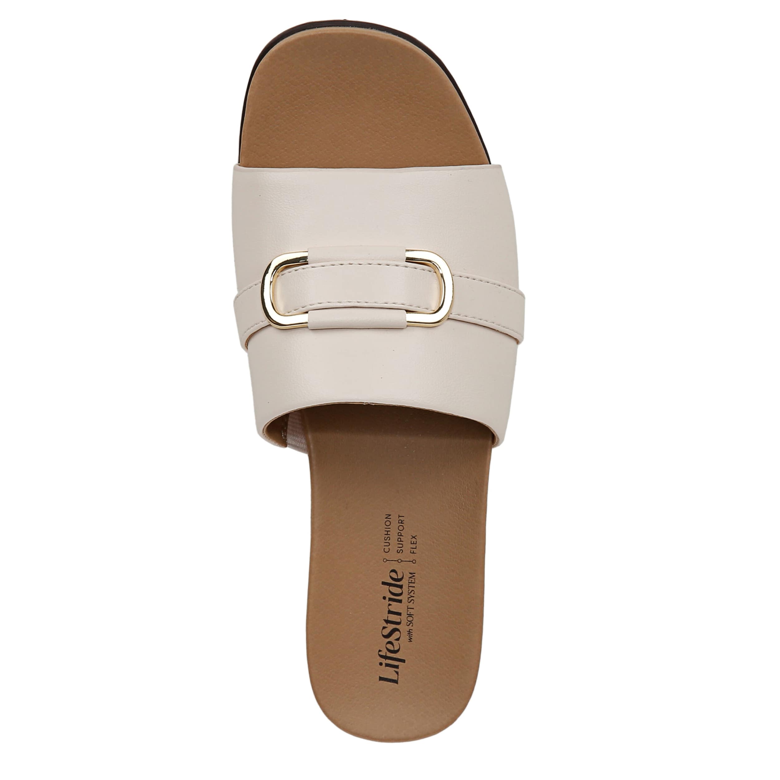 Never try too hard to look just right in the LifeStride Genevieve slide sandal. Featuring a faux leather upper with an open square toe and gold-tone hardware, this lightweight sandal is casually well put together. The Soft System® comfort technology offers trusted cushioning, while the platform heel adds just enough lift.