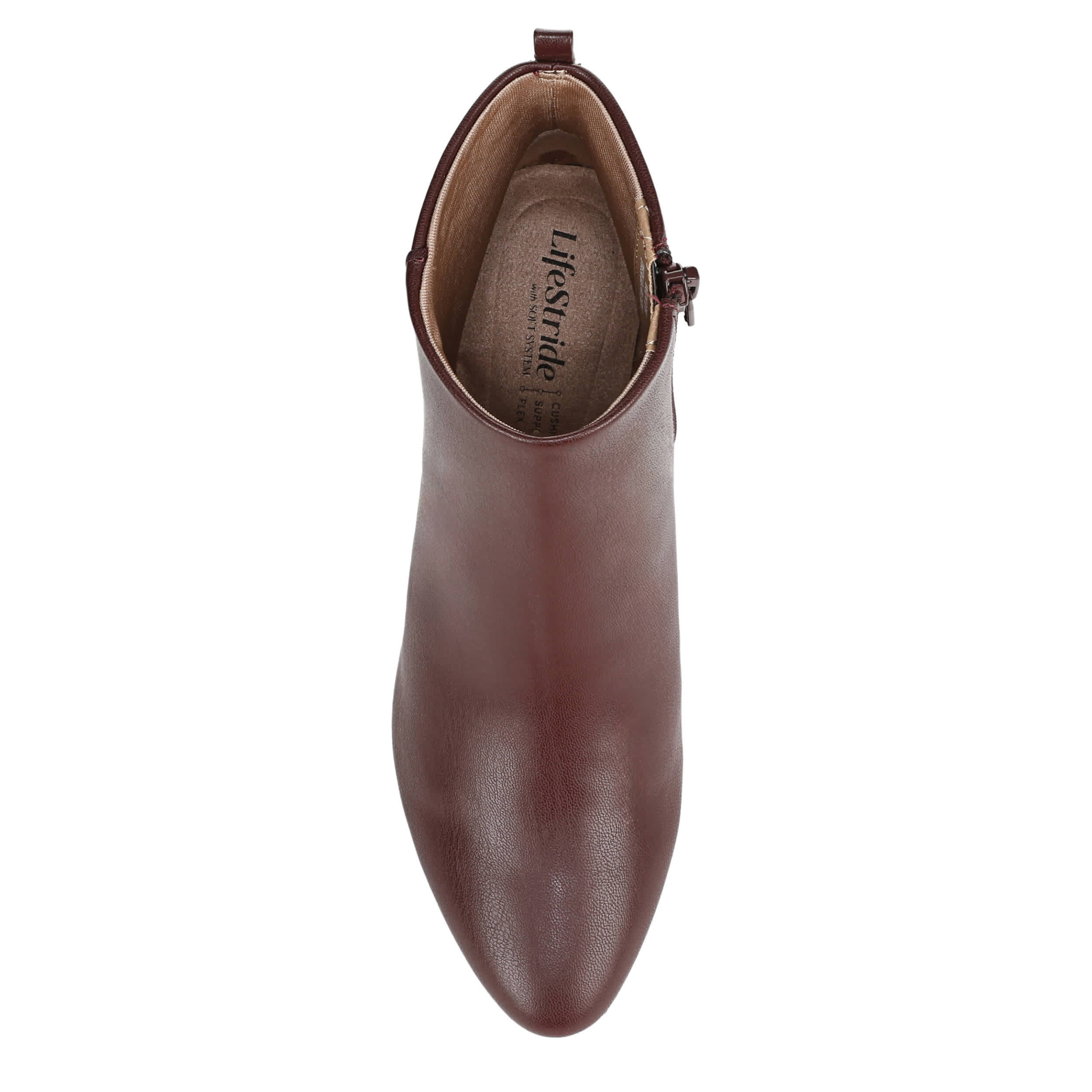 Dress up with ease in the Glow bootie from LifeStride. Featuring a faux leather upper with an easy zip close and heel pull tab for easy entry, this ankle boot offers a chic touch to any outfit. The Soft System® Comfort provides excellent cushioning, while the heel gives the perfect lift.