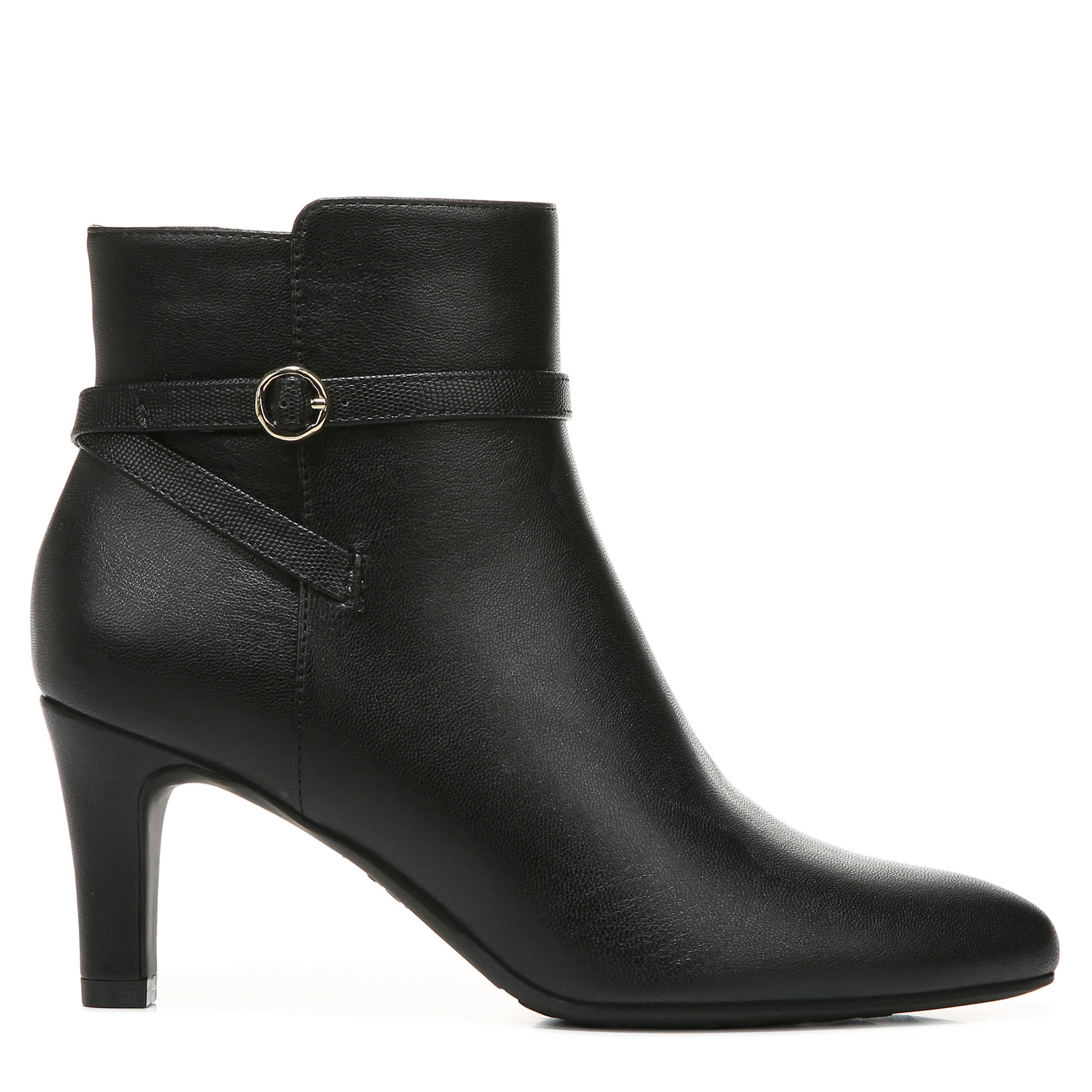 She'll look sleek and stylish in the Guild women's dress bootie from LifeStride. With a faux leather upper featuring a metallic buckle accent and a faux lizard strap for added style, this chic bootie perfectly complements your favorite fall fashions. A Soft System® comfort package provides all-day support and cushioning, while the synthetic traction outsole offers additional stability.
