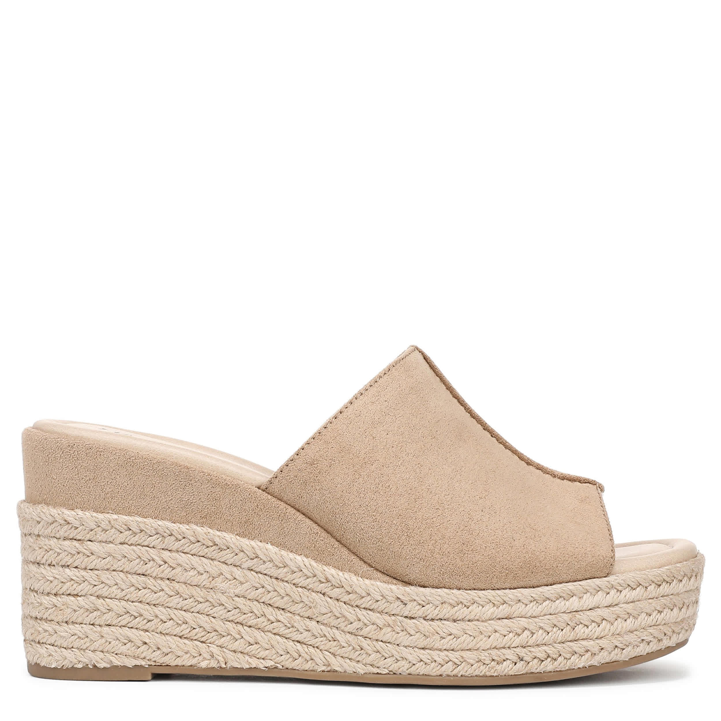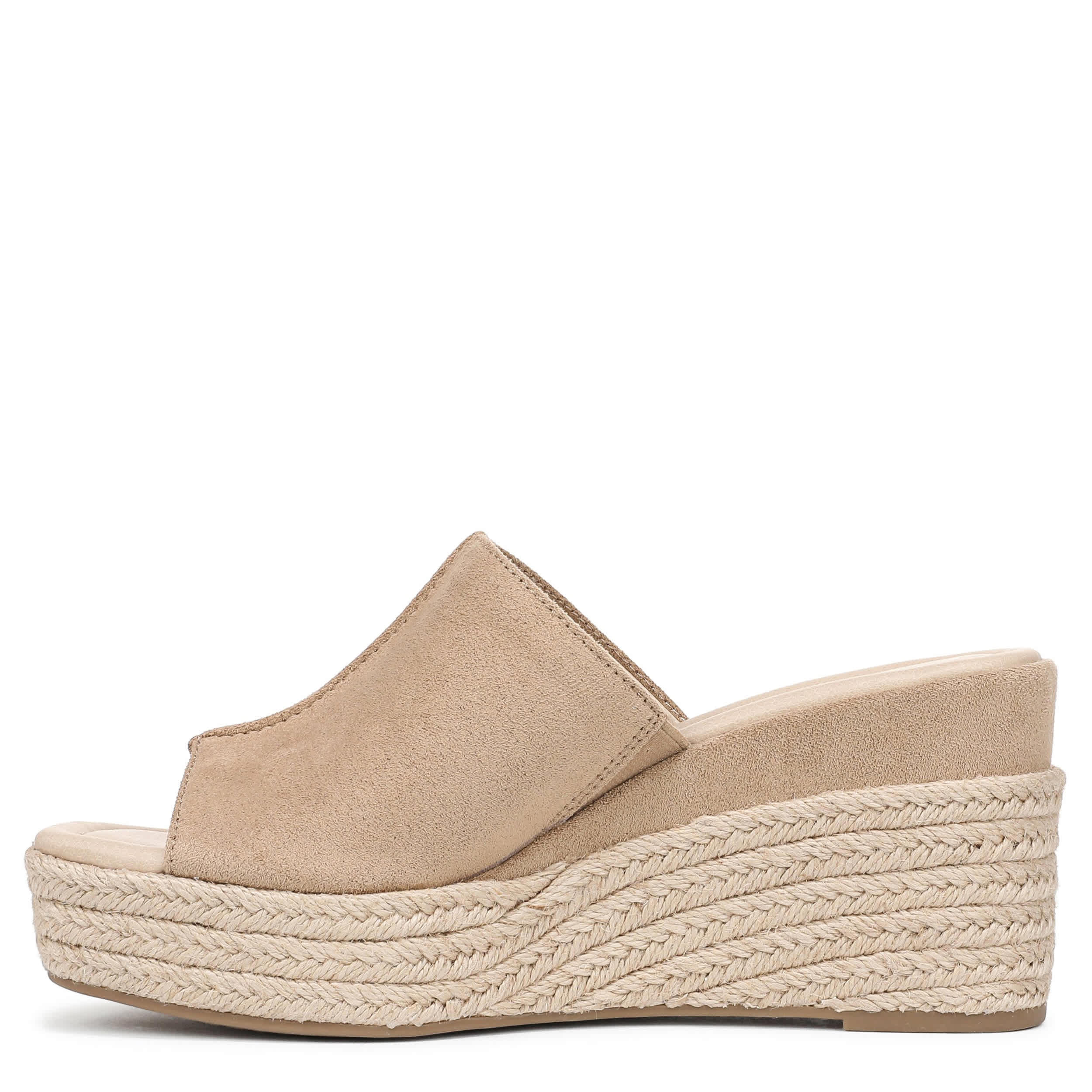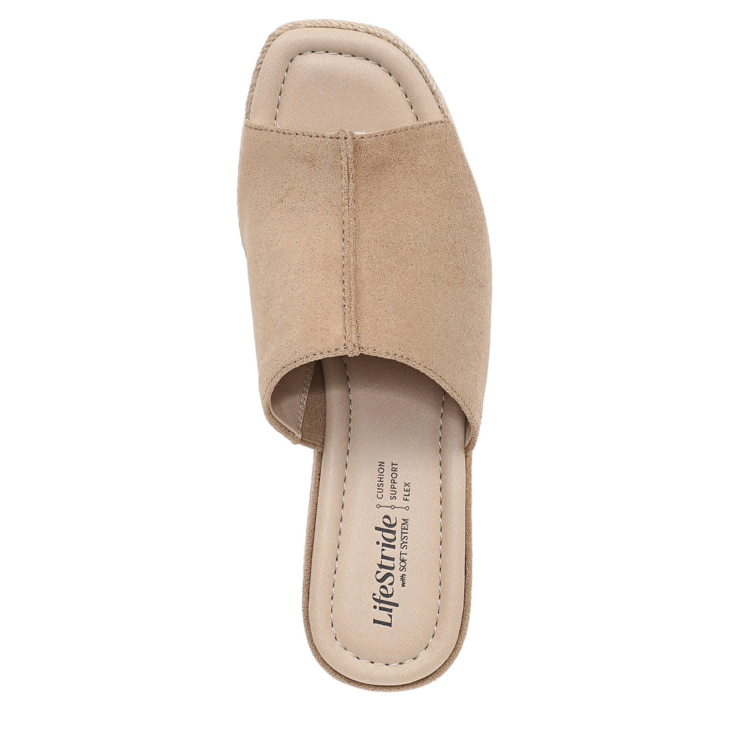 Vacay everyday in the Haute wedge sandal from LifeStride. With a microsuede upper featuring an elastic insert for a comfy, secure fit, this shoe easily goes from brunch to a casual outing. The Soft System® comfort technology offers amazing cushioning & flexibility, while the elevated heel gives lofty, but stable lift.