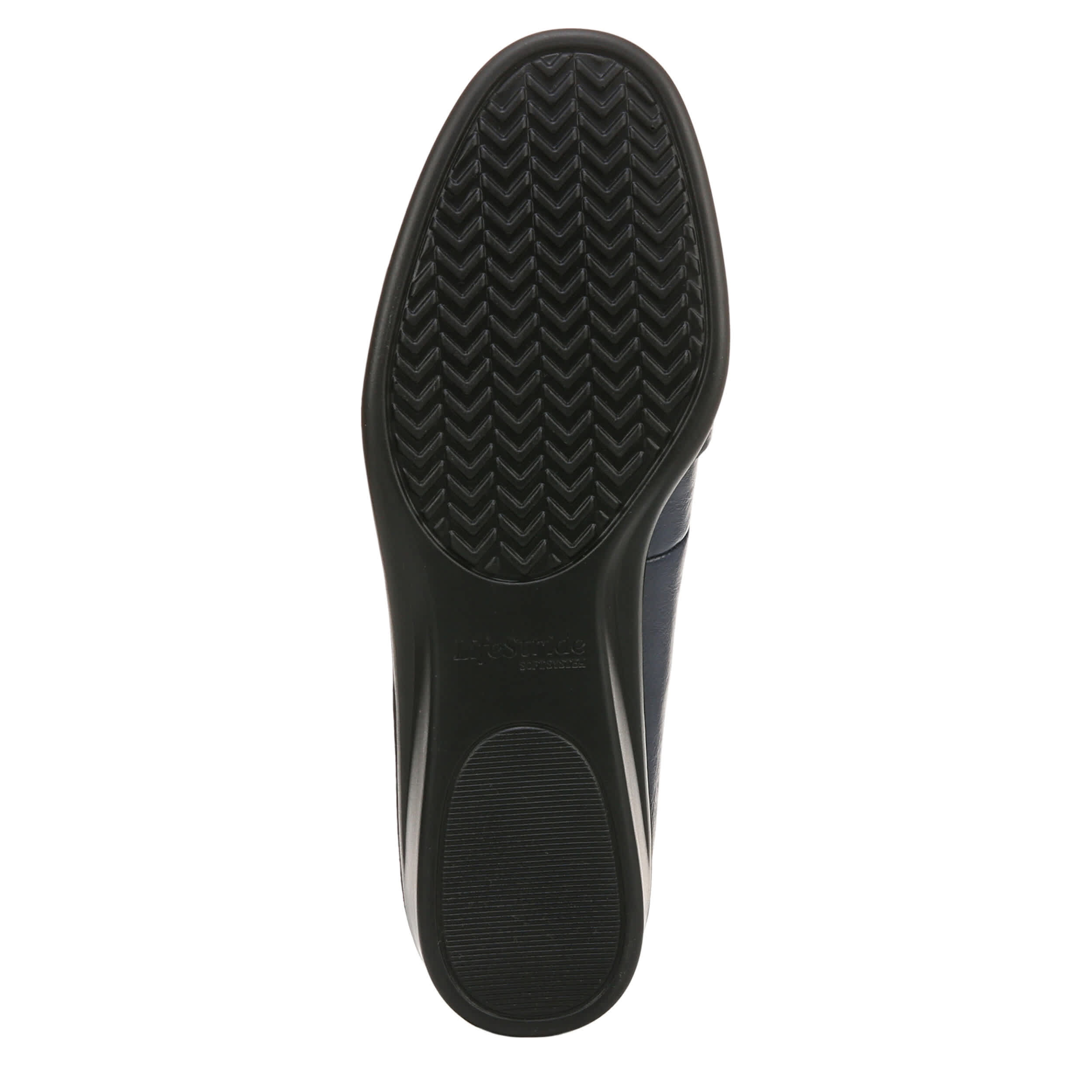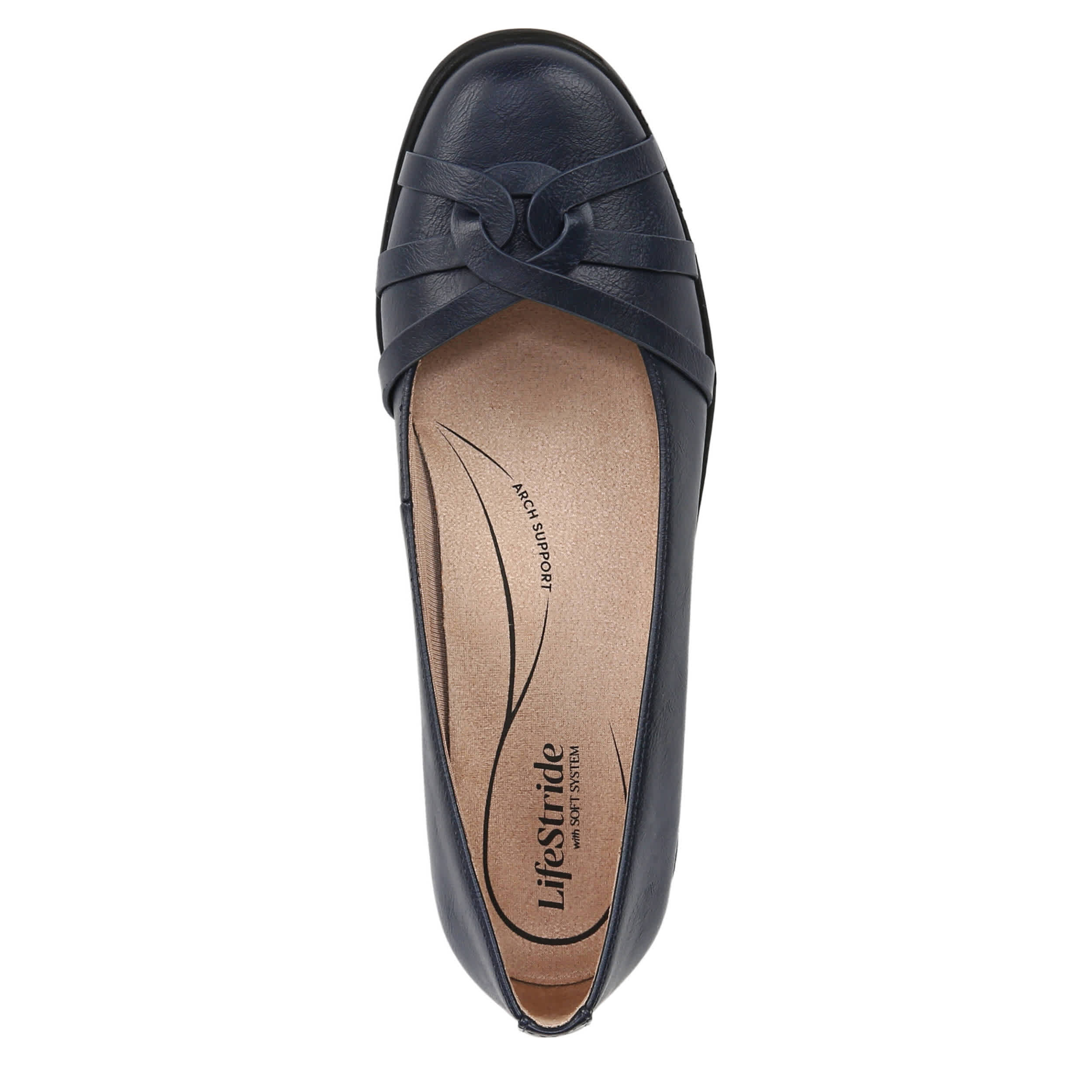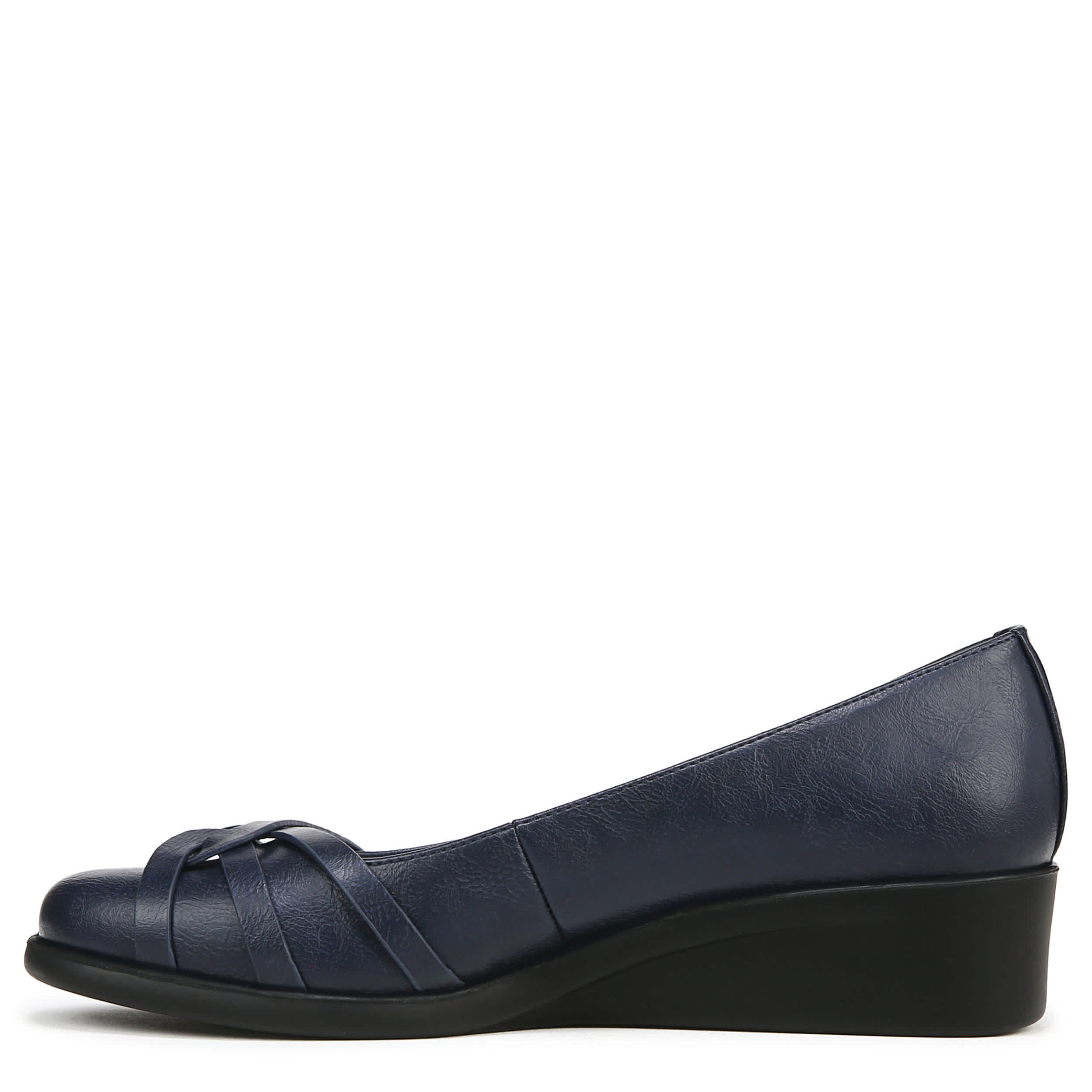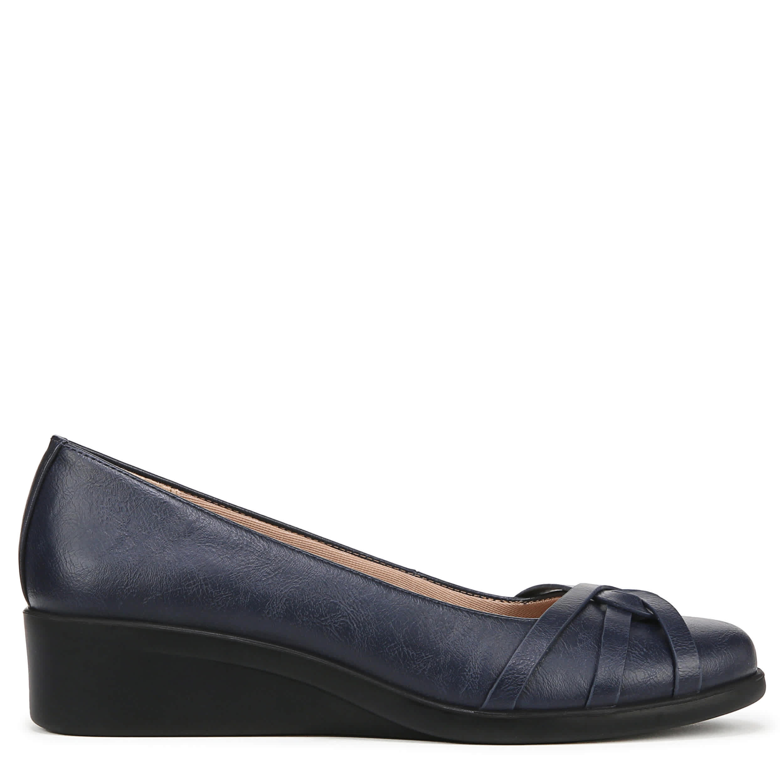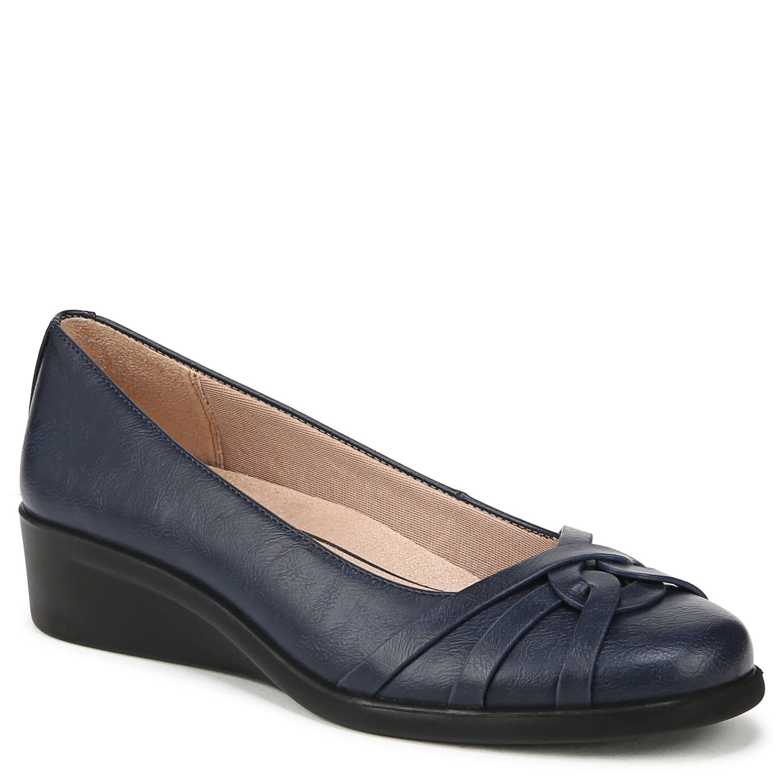 Dress to impress with the LifeStride Jorie wedge. Featuring a faux leather upper with an interwoven strap accent, this shoe is a go-to for the office. The contoured, cushioned insole works with the traction outsole to offer great arch support and stability, while the wedge heel gives just the right amount of lift.