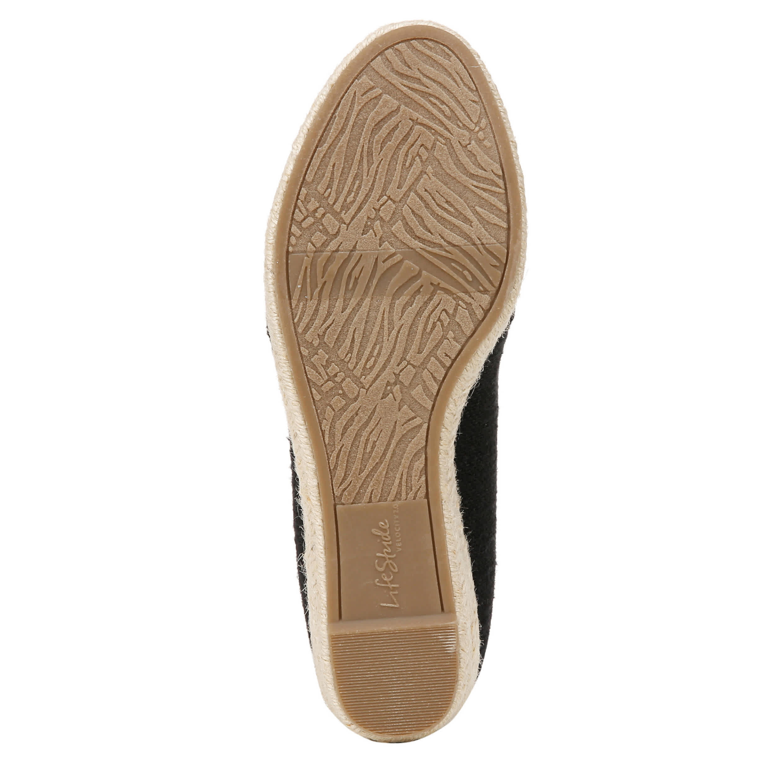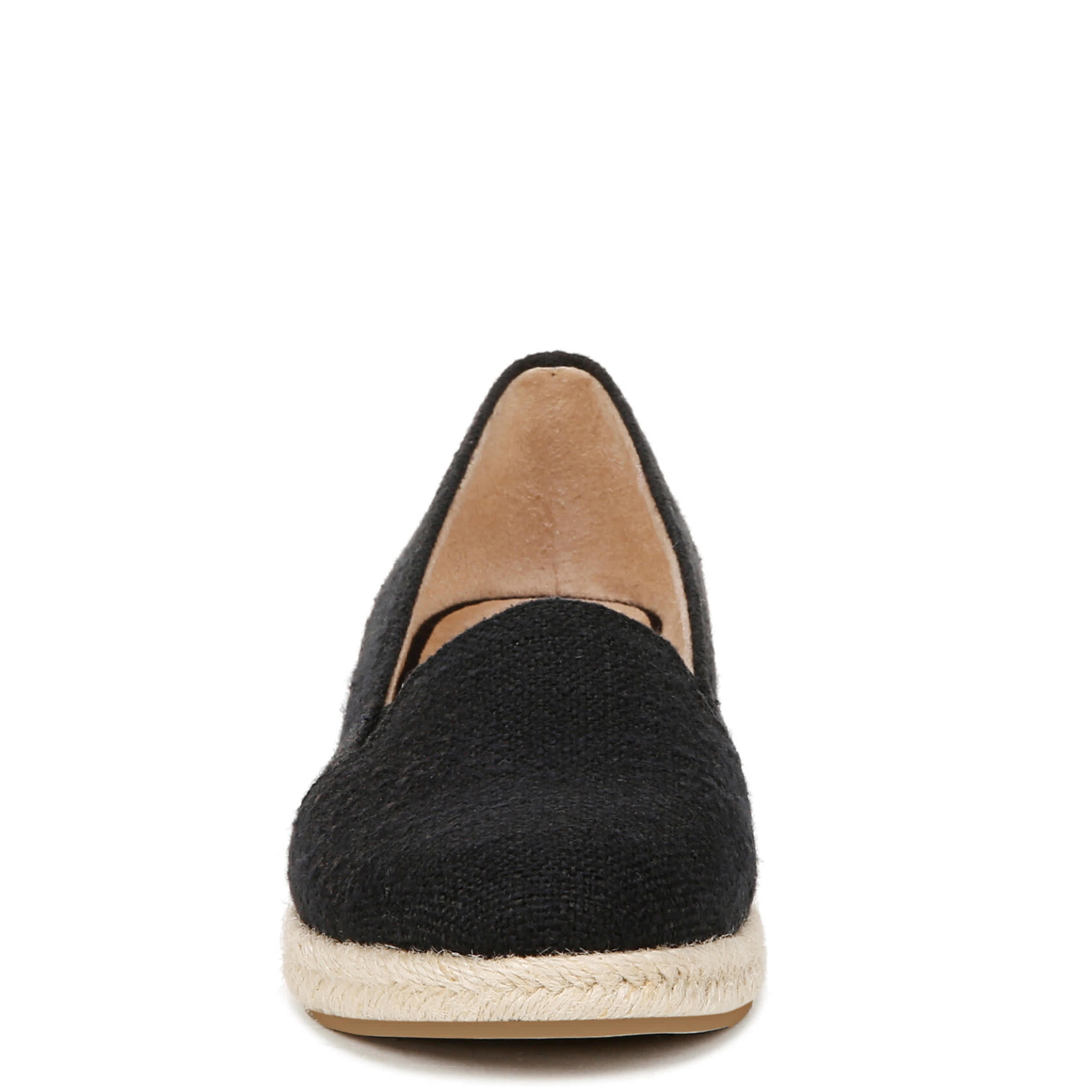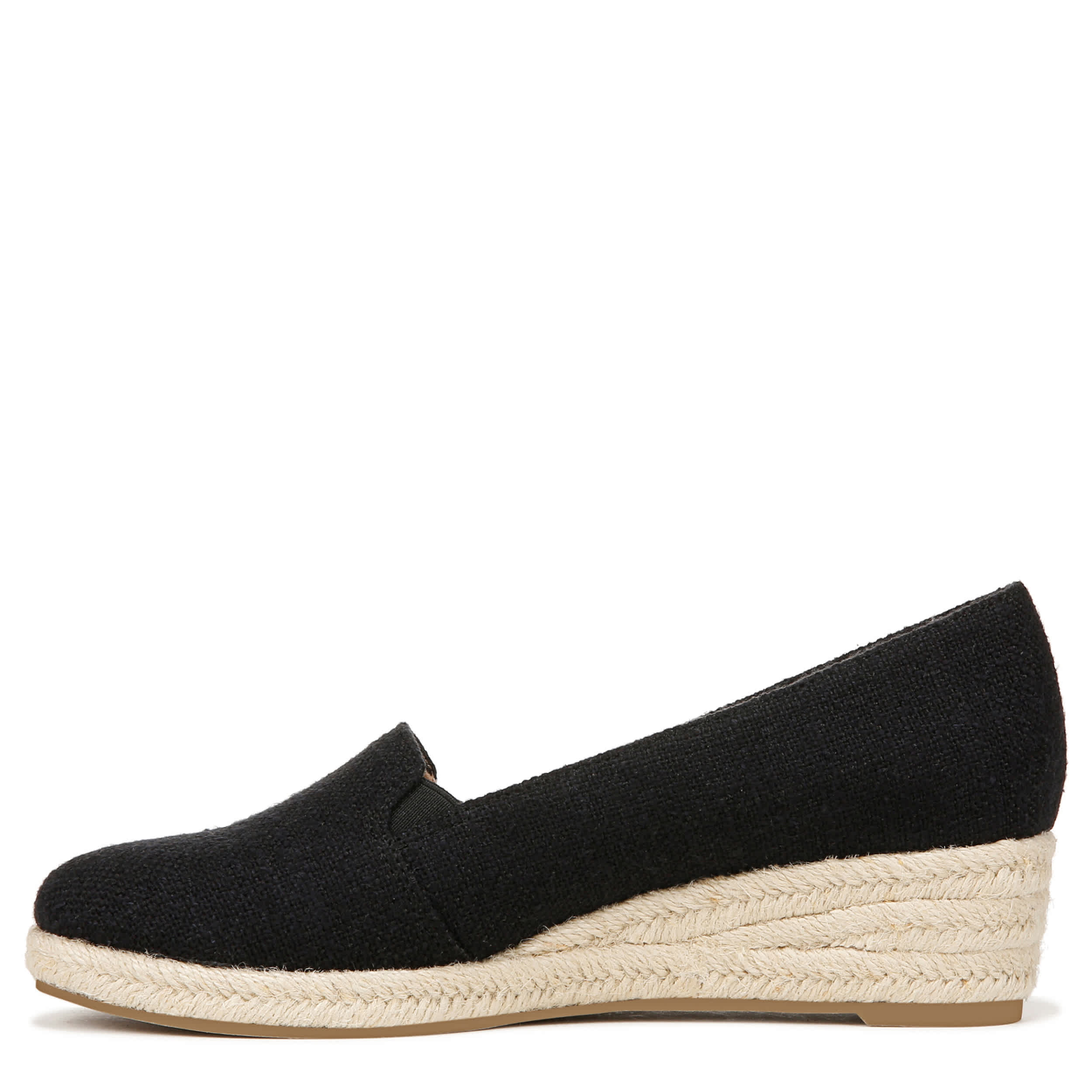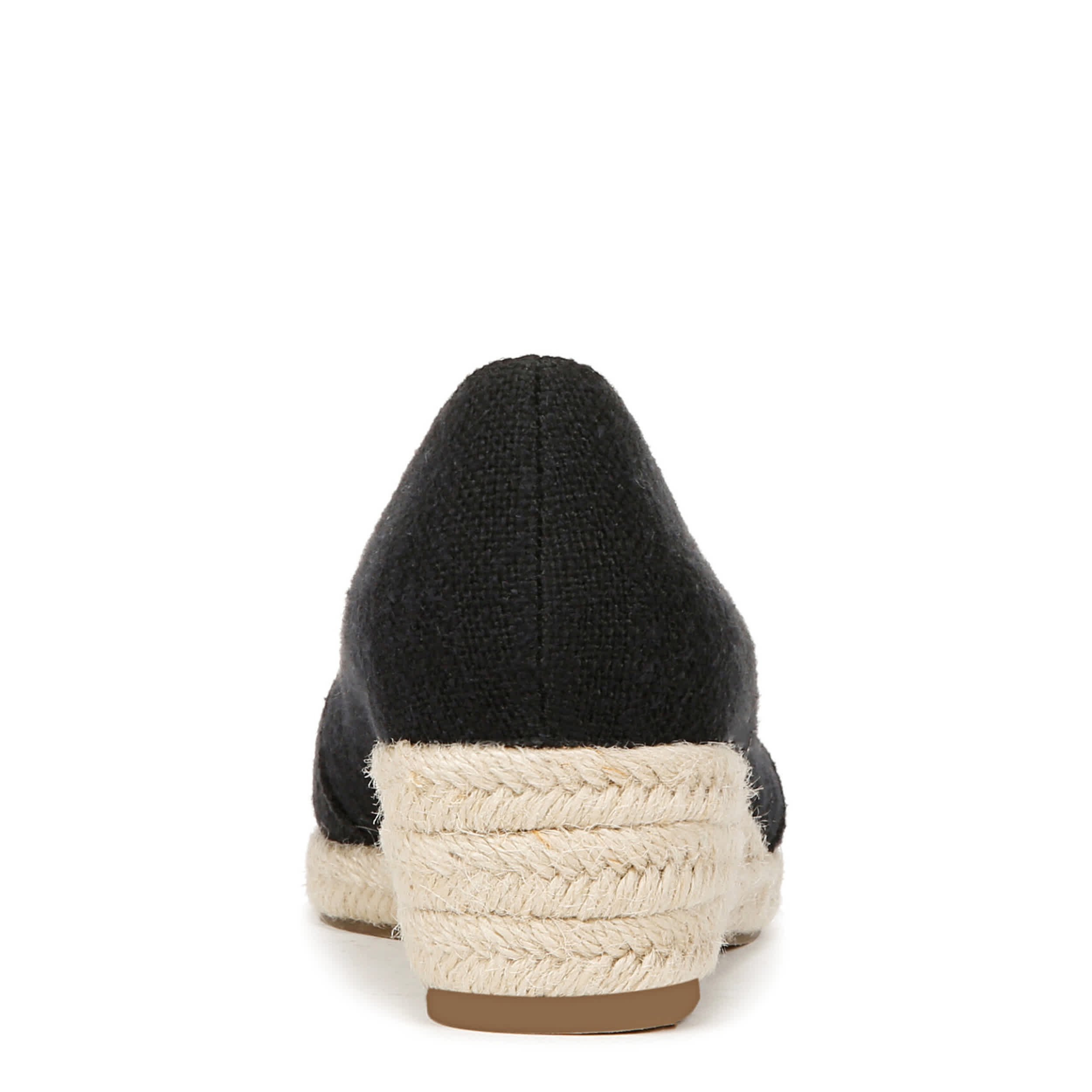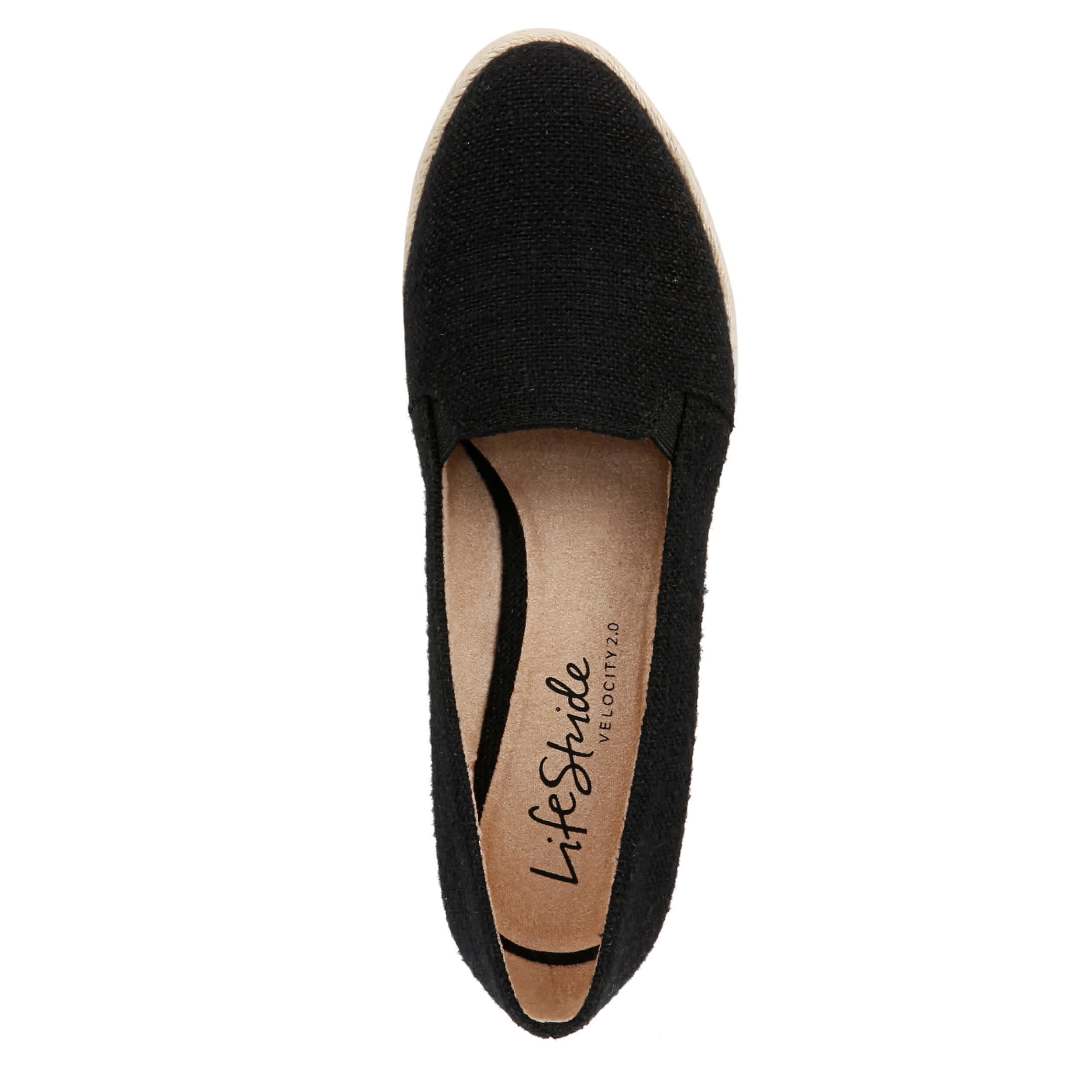 Play with cute style in the Kamilla women's wedge slip-on from LifeStride. Featuring a fabric upper with a sleek almond toe, this shoe has built-in stretch, perfect for everyday wear. The Soft System® comfort package & Velocity 2.0® insole cushions with shock absorption while the woven espadrille heel adds just enough lift.