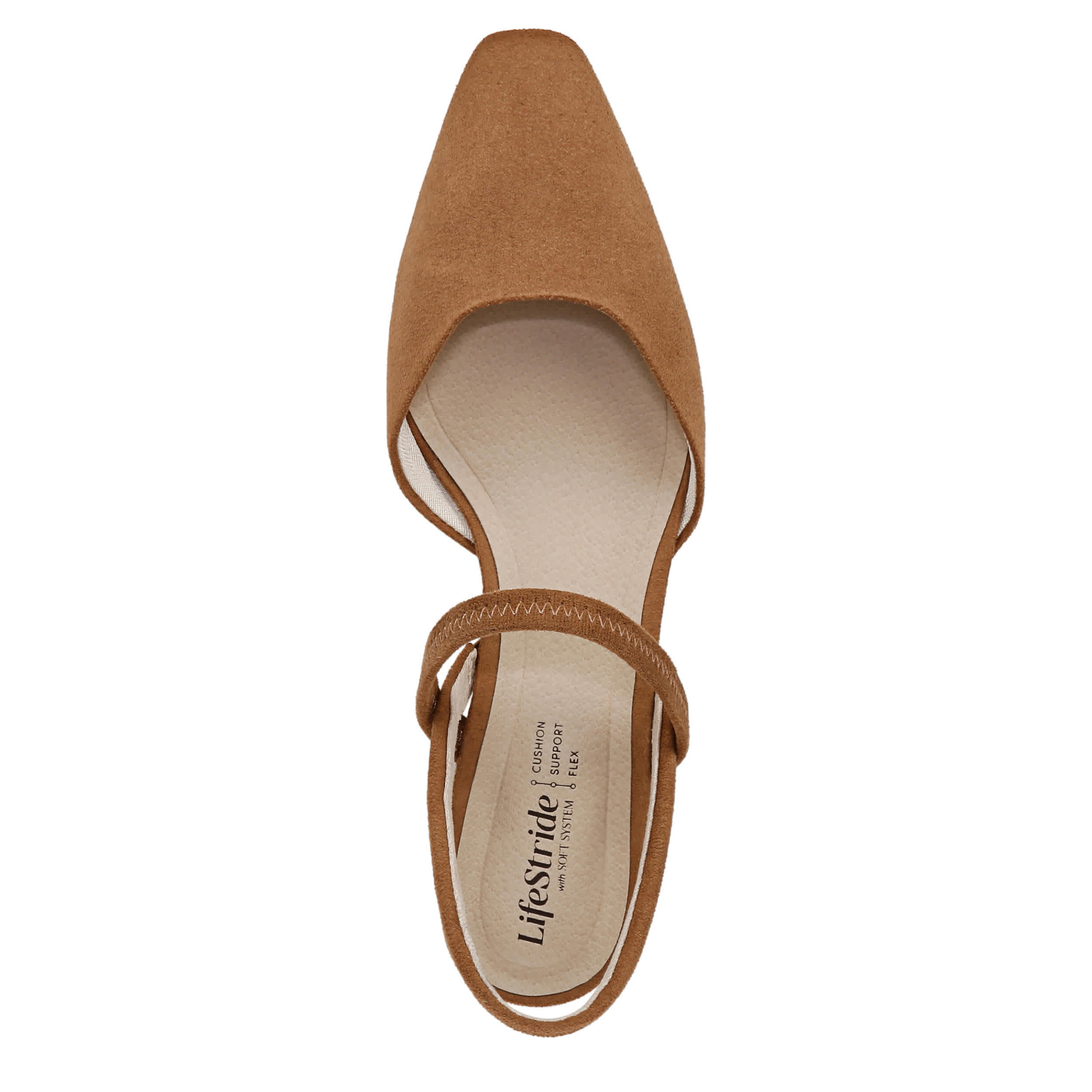 Easily slip on professionalism with the LifeStride Lainey pump. Featuring a fabric upper with a pointy toe, this slip-on has stretch gore straps for a comfy & secure fit. The Soft System® comfort footbed and traction outsole ensure all-day support, while the block heel gives a trendy lift to your look.