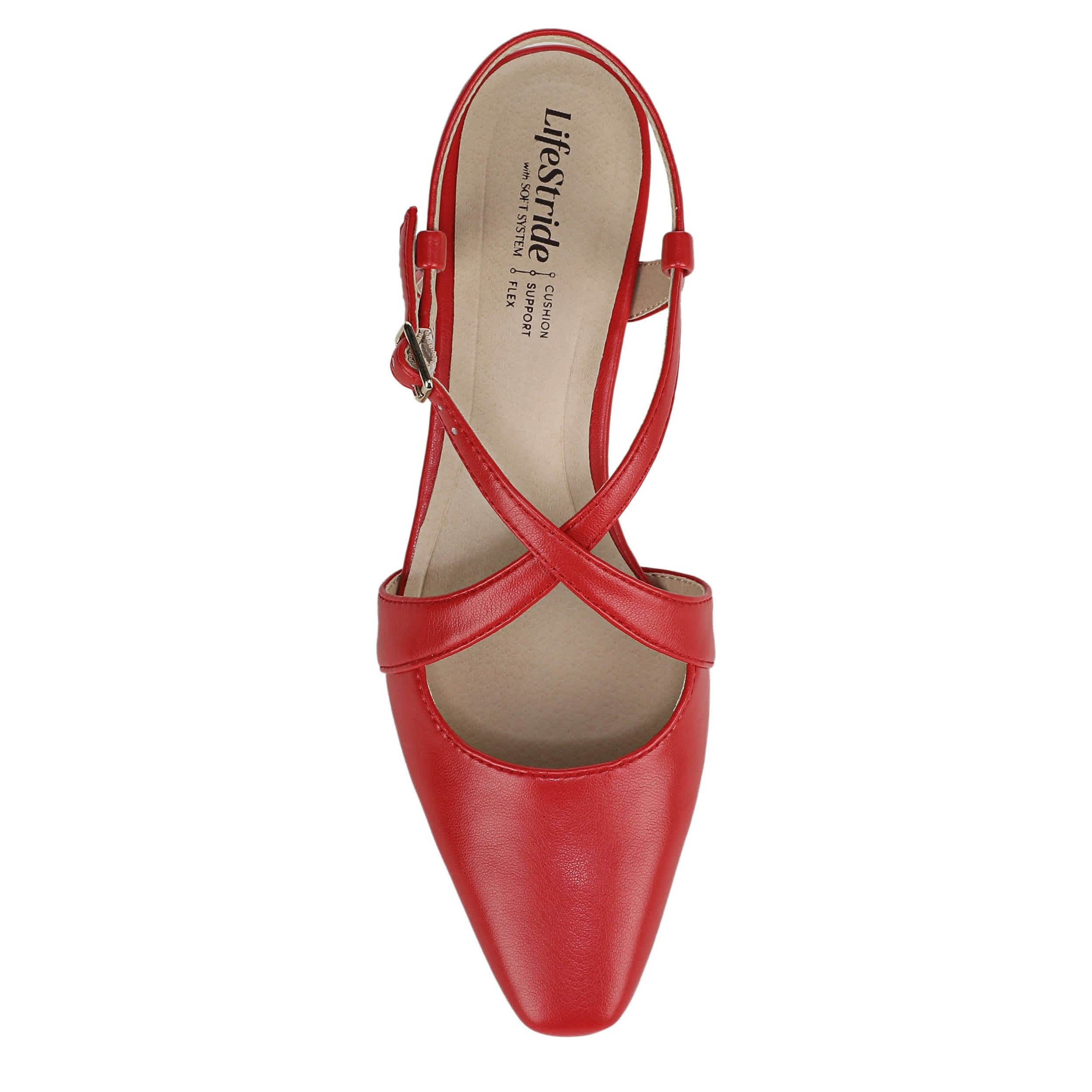 Day-to-night polish with the Lavina pump from LifeStride. Featuring a modern cross strap design and blade heel, your sophisticated look elevates your office attire and fits after-hours. The oft System® cushioning, and traction sole provide stable comfort with every step.