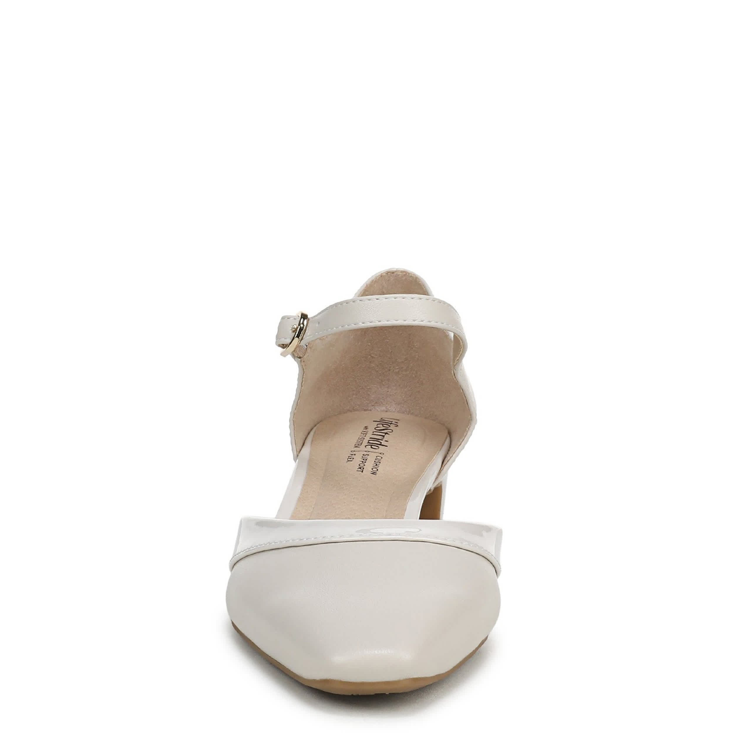 Make an effort without showing that part in the Leighton women's pump from LifeStride. With a faux leather & patent leather upper featuring an almond toe, this shoe keeps a stylish bump with the subtle two-tone design. The Soft System® comfort package cushions with all-day support that works nicely with the kitten heel.
