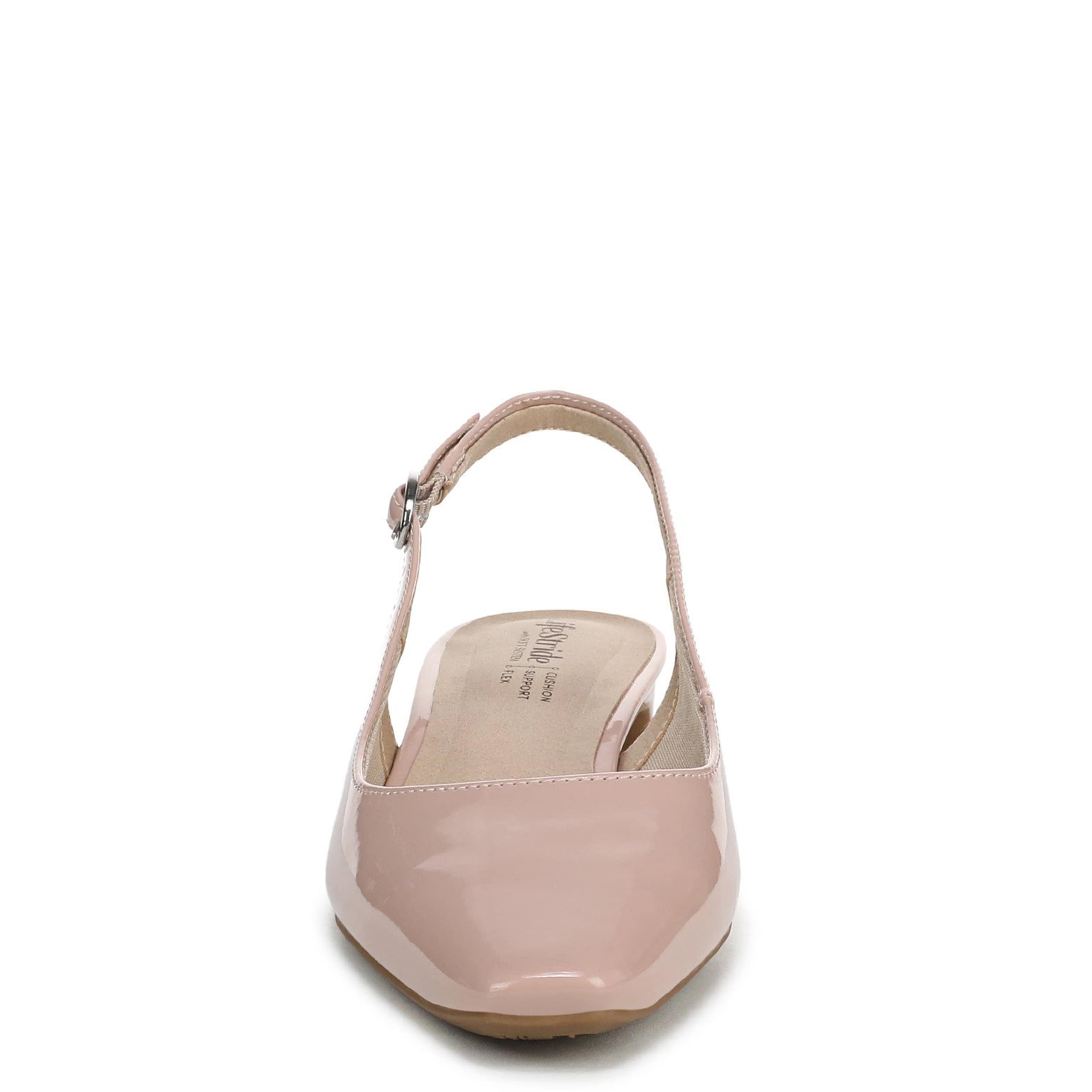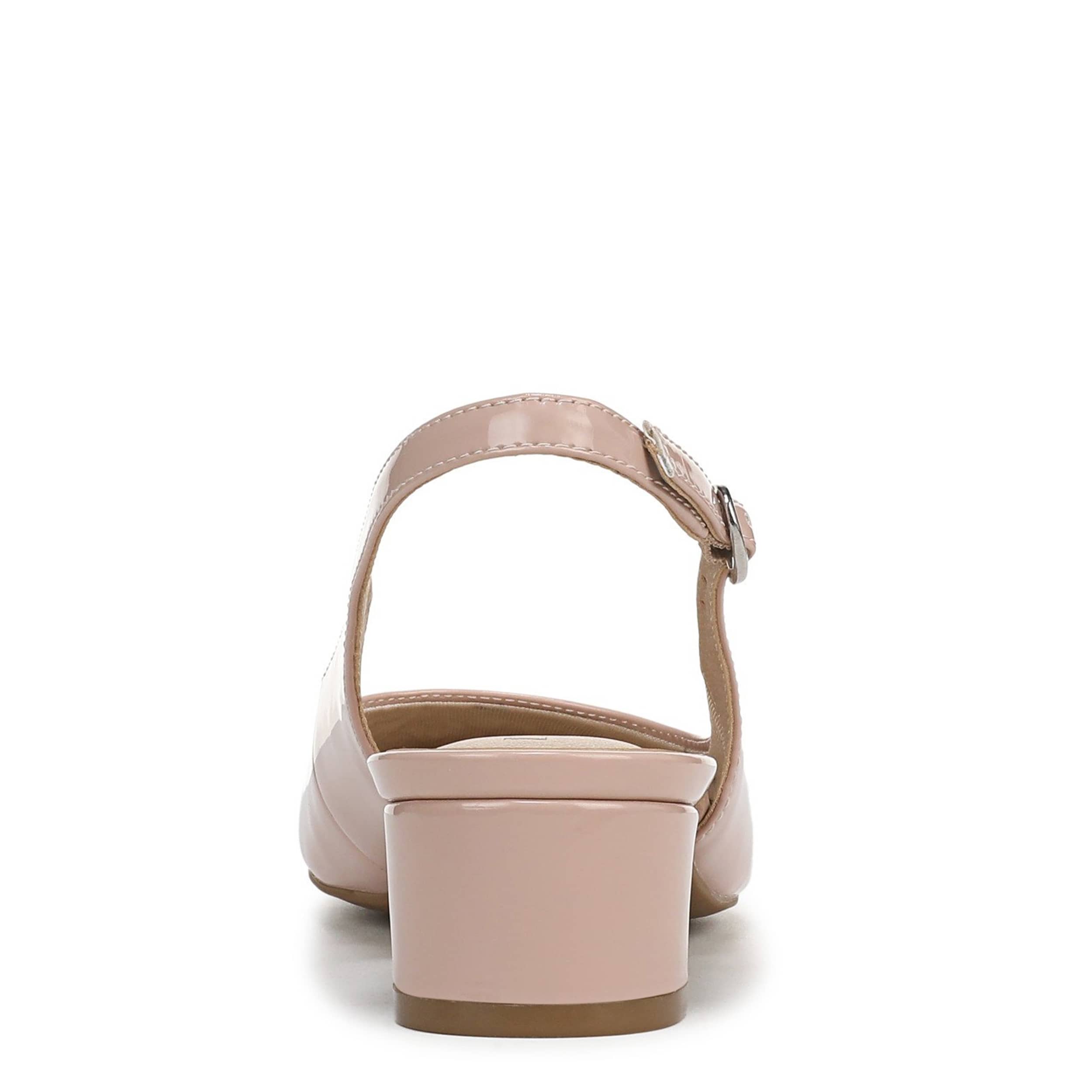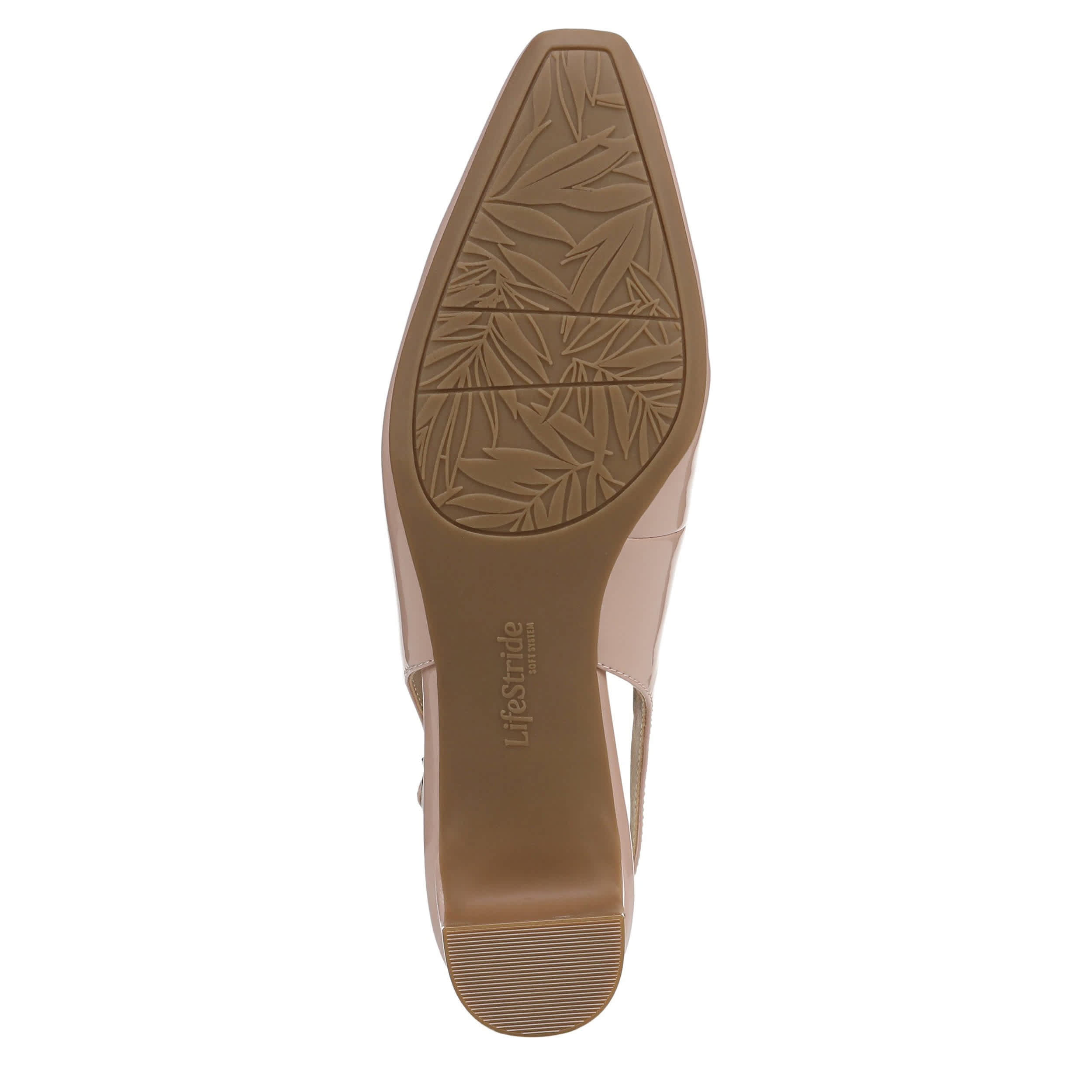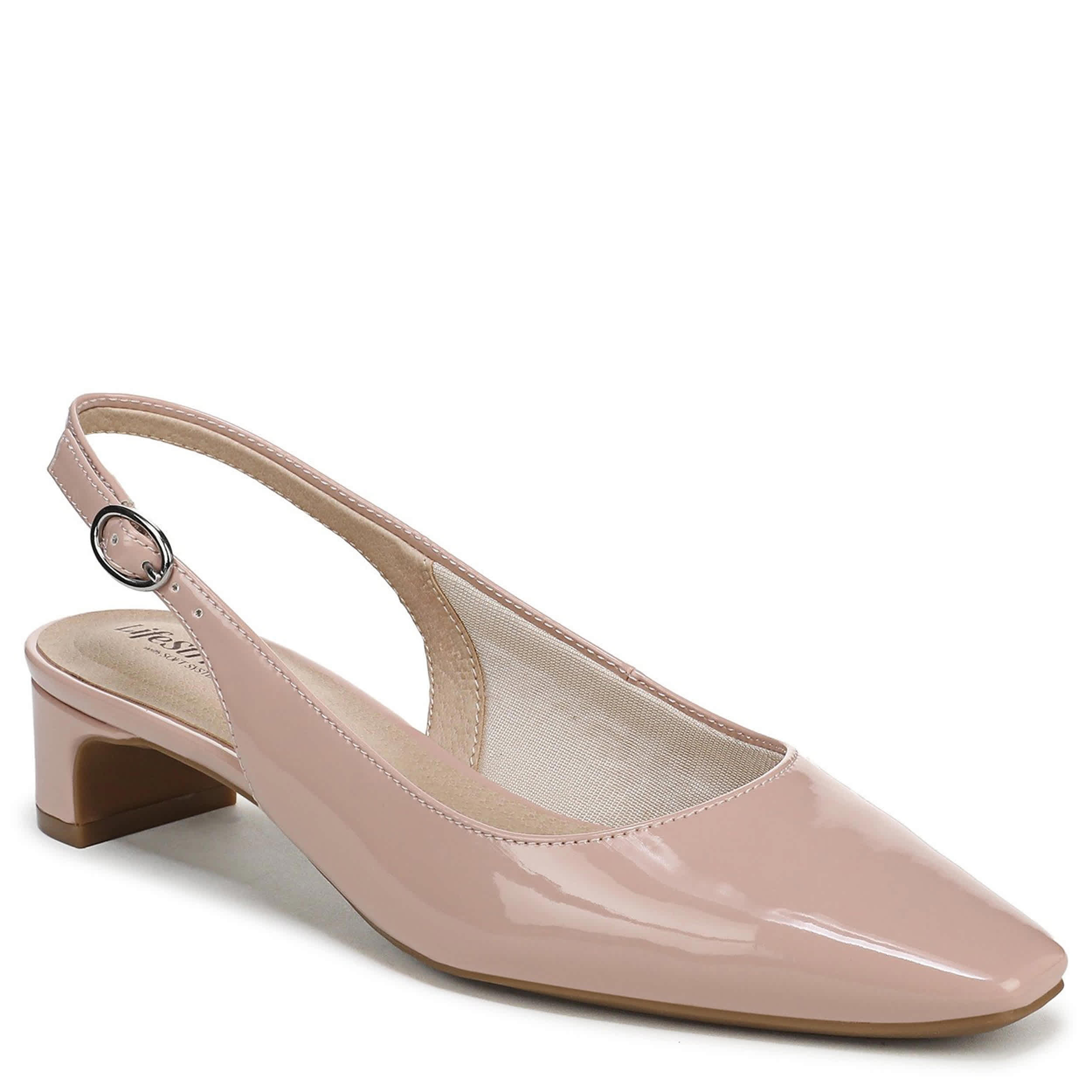 Accent your formal look with the LifeStride Lorena pump. With a patent leather upper featuring an adjustable slingback strap, this square toe shoe is perfect for a professional outfit. The Soft System® foam footbed offers exceptional cushioning and flexibility, while the block heel gives a subtle lift.