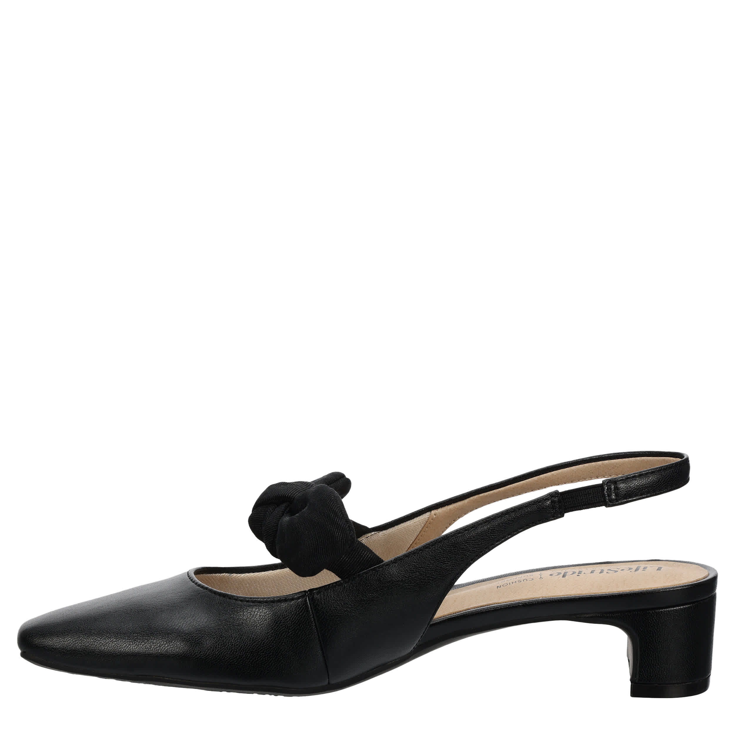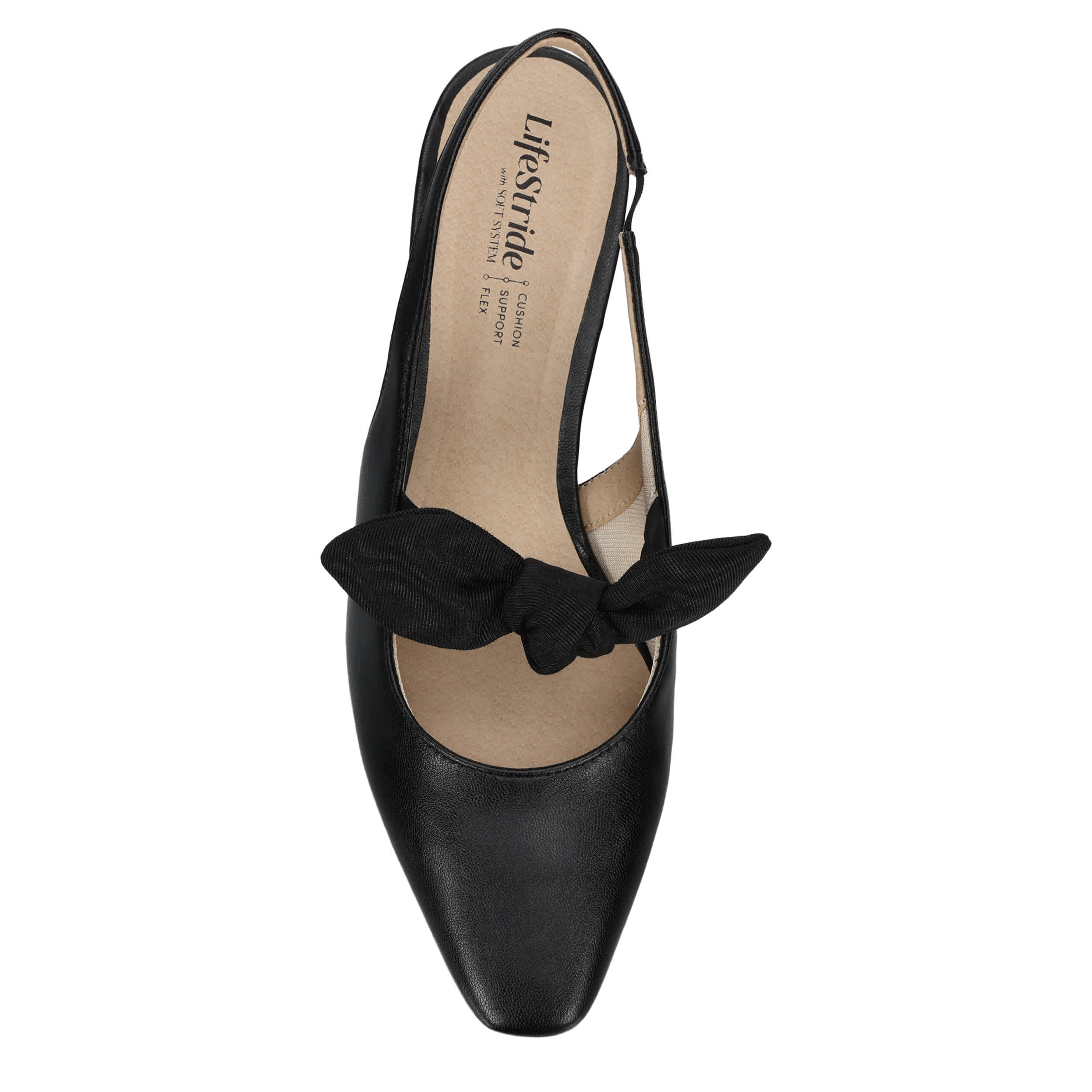Comfort and style confidence in the LifeStride Lucia women's pump. Featuring a microsuede or faux leather upper with a knotted bow detail, this modern slingback is ready for the office or date night. The Soft System® comfort technology cushions every step, while the kitten heel adds chic lift.