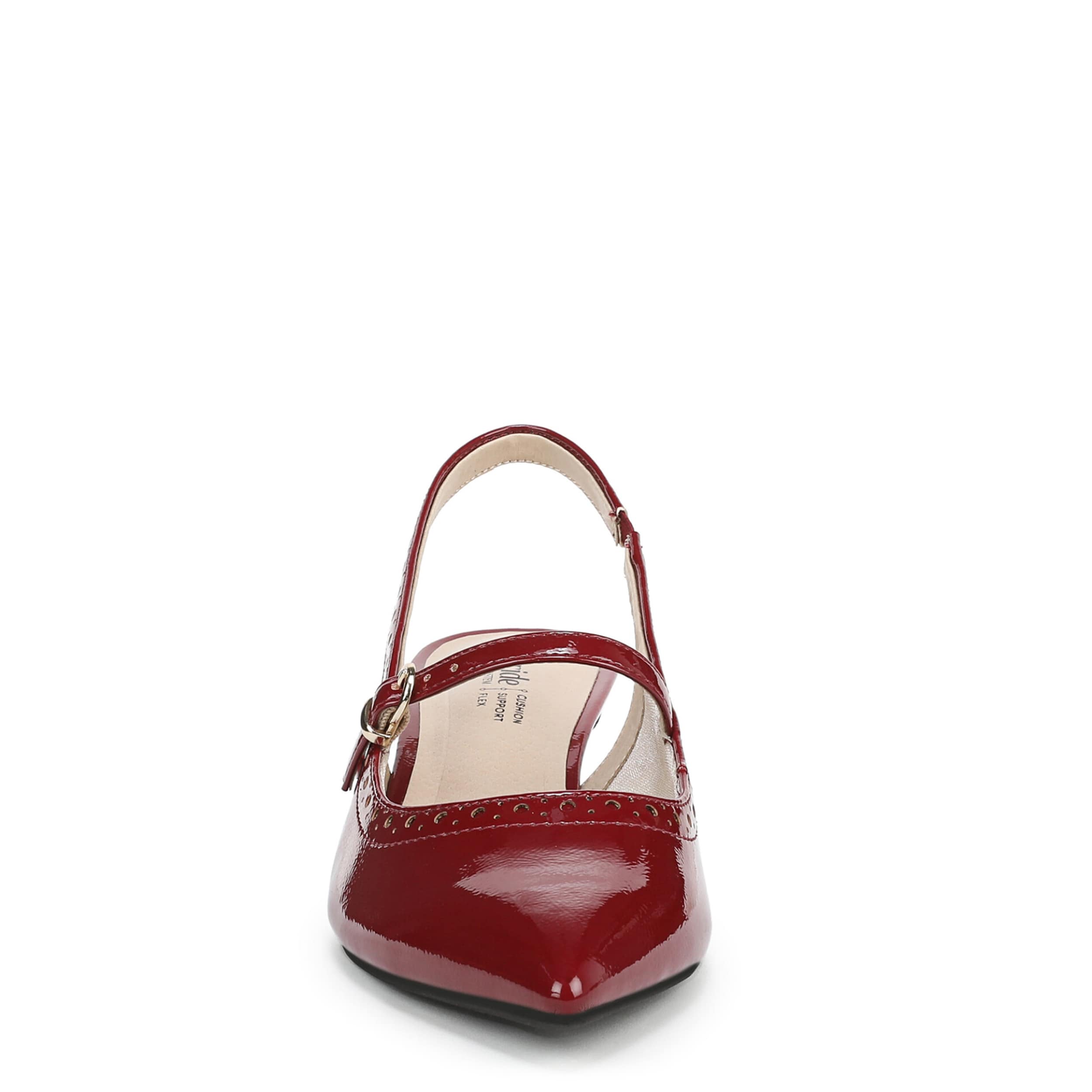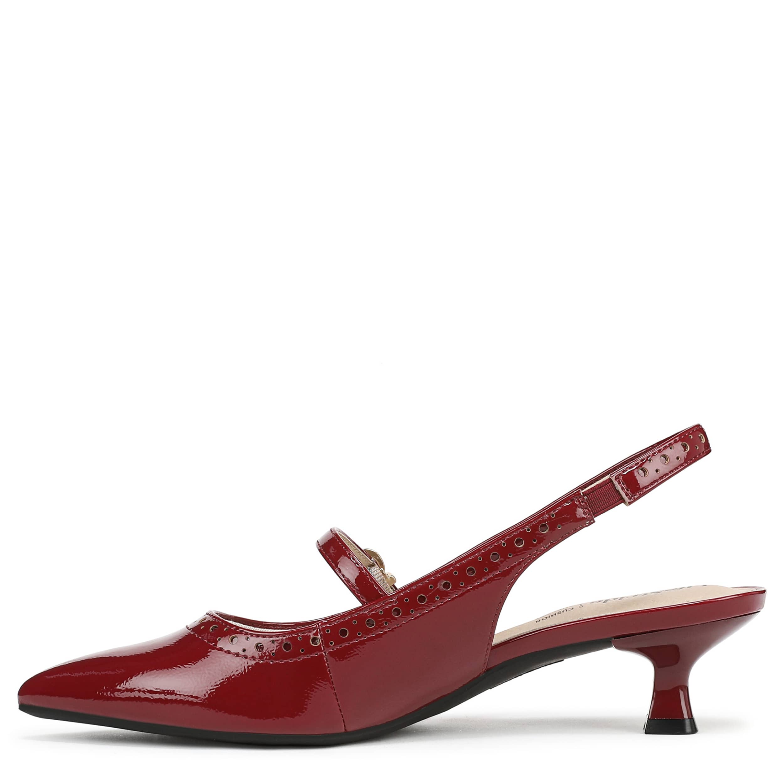 Polish up your look this summer with the LifeStride Marilyn pump. Featuring a glossy patent leather upper with circular perforated details, this pointed toe slingback exudes charm and elegance. The lightly padded insole comforts your foot, while the heel offers a subtle lift.