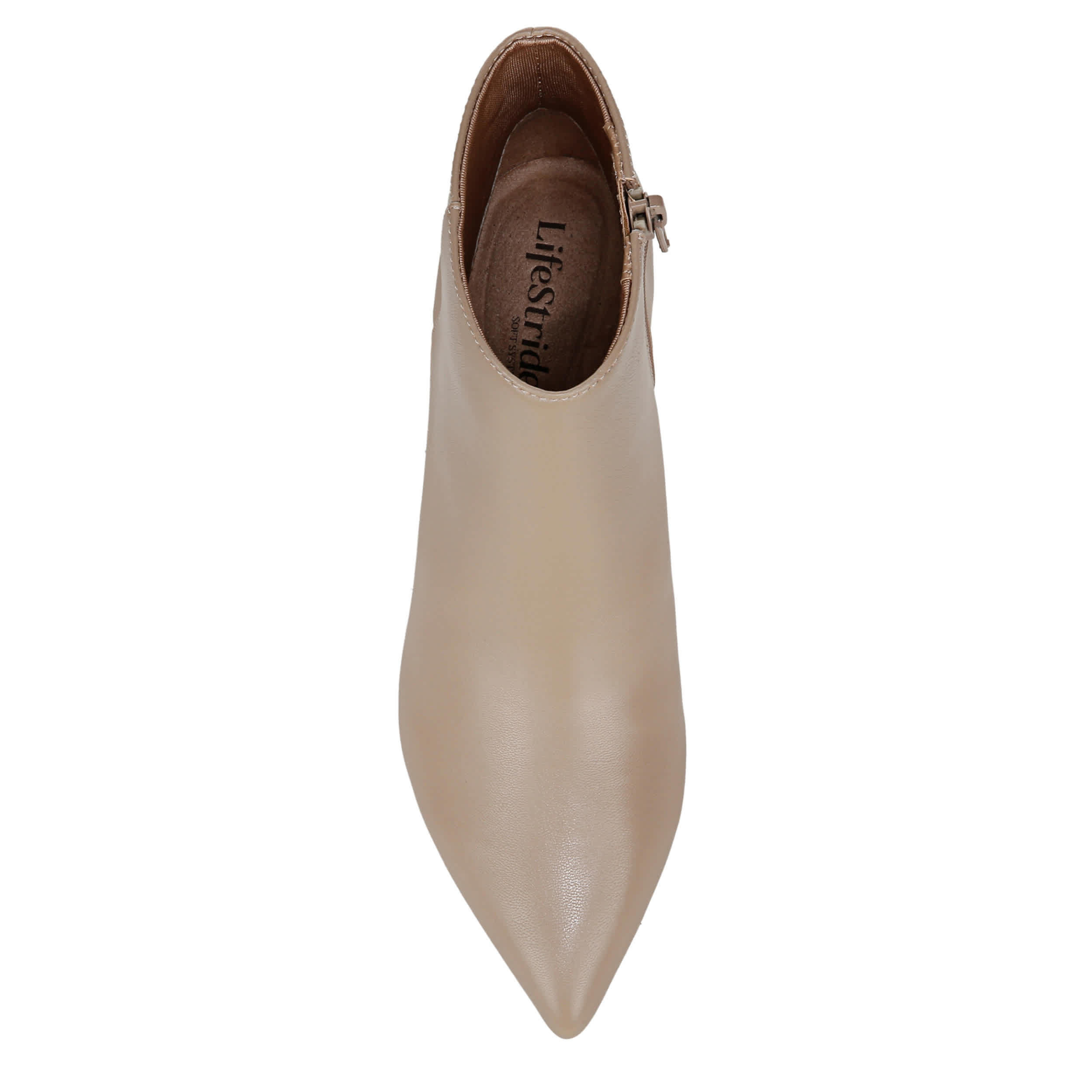 Keep it low and stylish in the Maya dress bootie from LifeStride. With a faux leather upper featuring an asymmetrical topline for extra flair, this chic bootie perfectly complements your favorite fall fashions. The Soft System® comfort package provides all-day support, while the flared heel offers just enough lift.