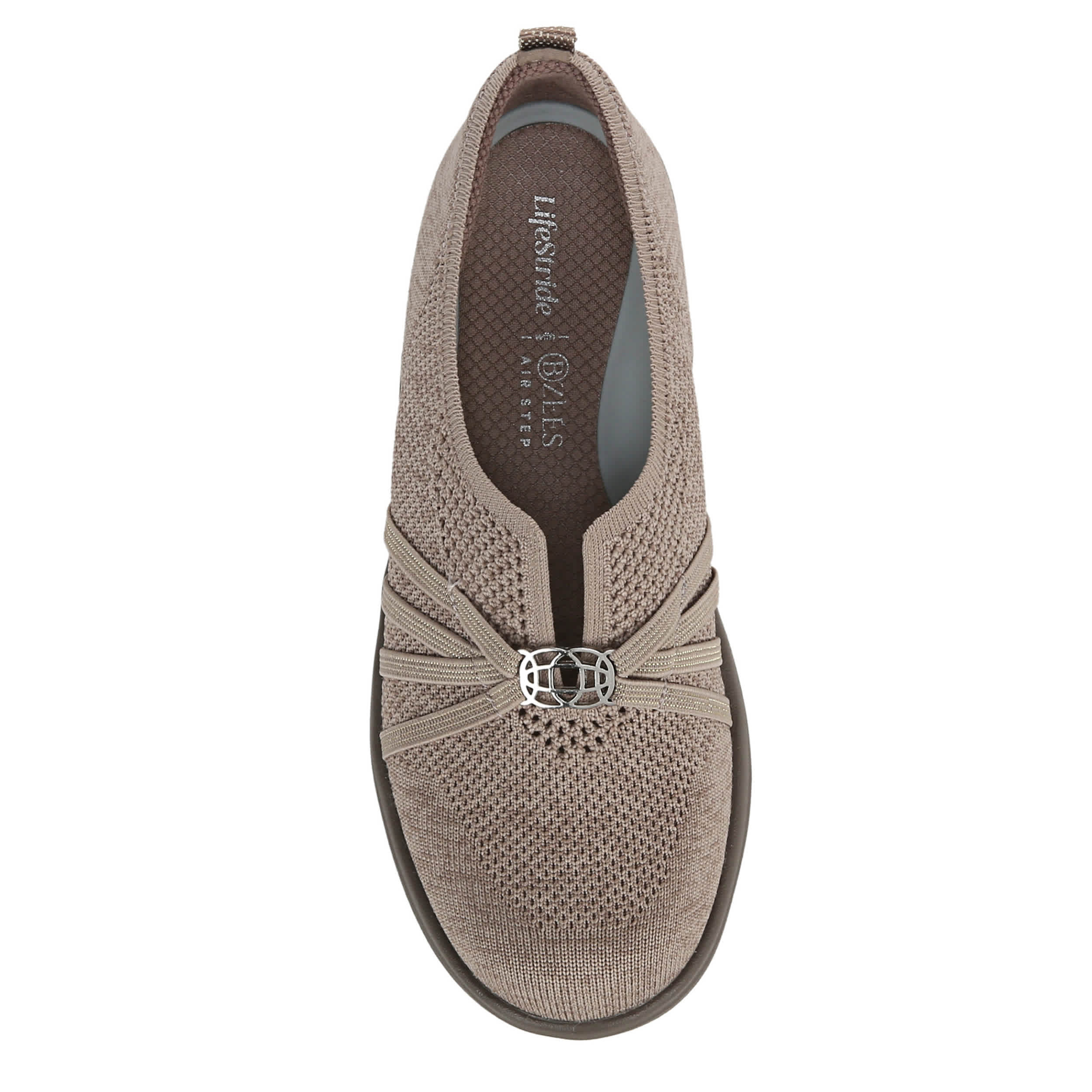 Step out in comfort with the LifeStride Niche Knit slip-on sneaker. Constructed with a stretch engineered knit upper, this shoe has strapped accents with a metallic detail. The FreeFoamâ„¢ Comfort insole amply cushions with SoCush arch support and Comfort Cone Gel, while the EVA outsole gives stability.