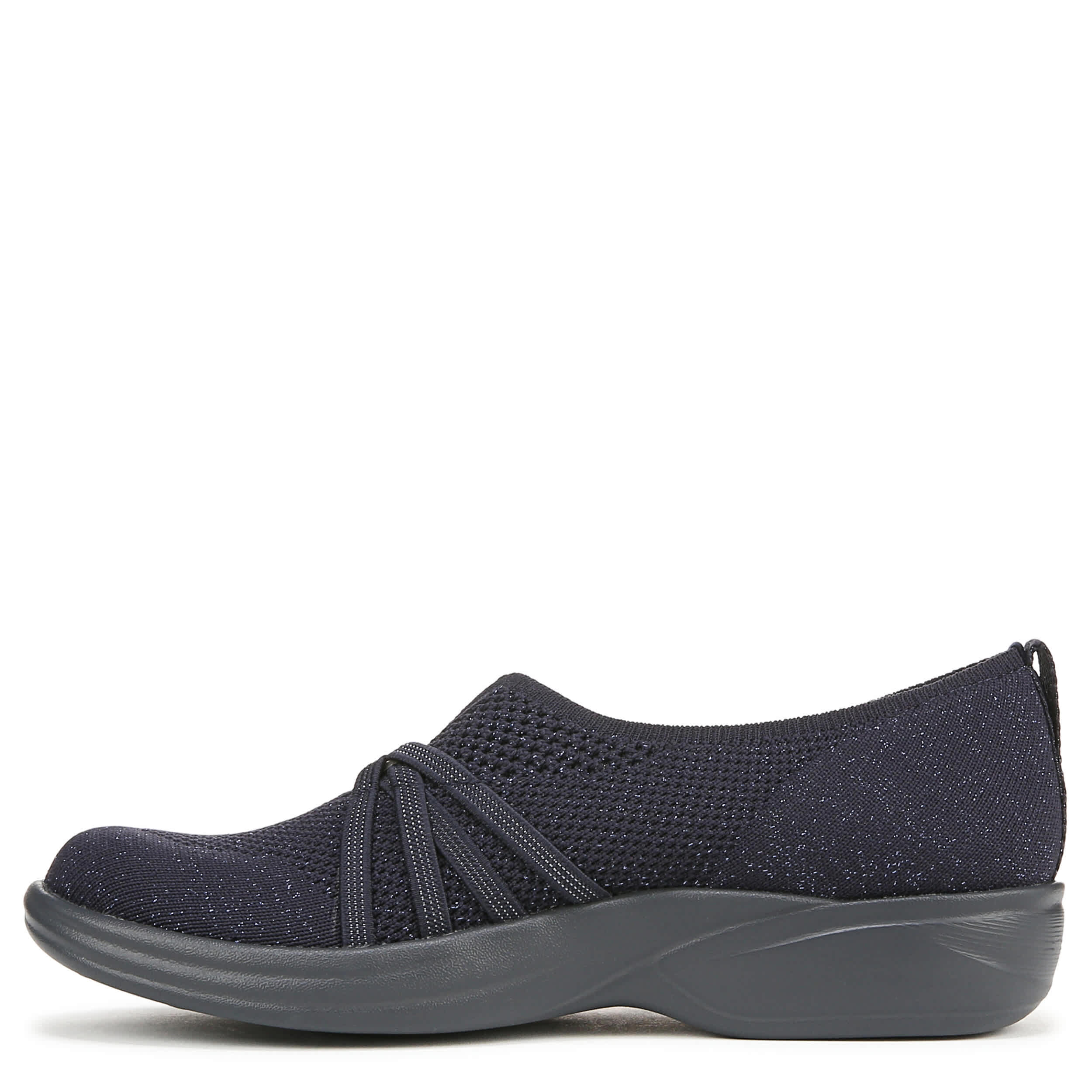 Step out in comfort with the LifeStride Niche Knit slip-on sneaker. Constructed with a stretch engineered knit upper, this shoe has strapped accents with a metallic detail. The FreeFoamâ„¢ Comfort insole amply cushions with SoCush arch support and Comfort Cone Gel, while the EVA outsole gives stability.