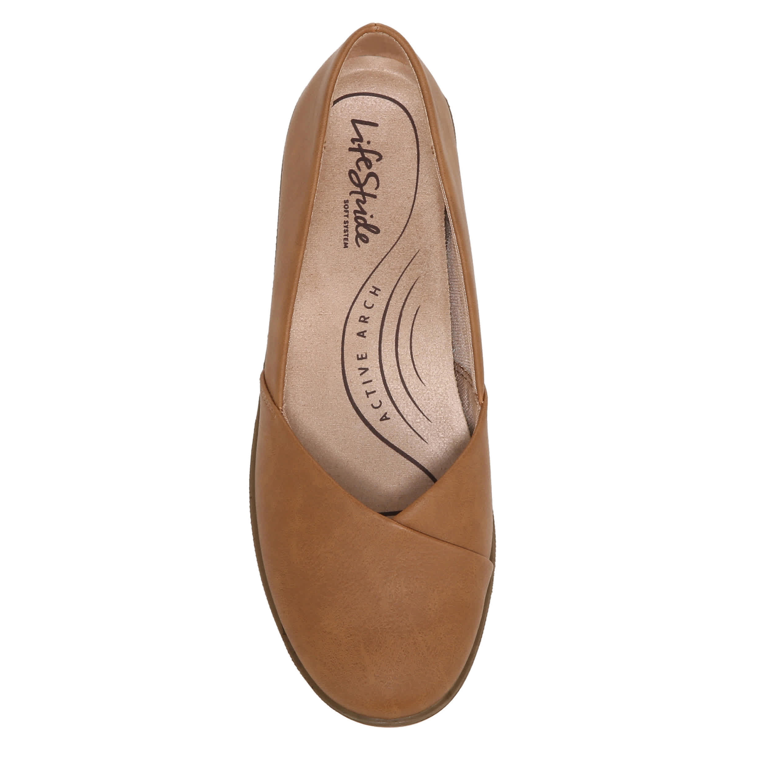 Effortlessly stylish, the Notorious women's flat from LifeStride is a must-have this season. With a faux leather upper featuring a padded heel, this flat works into your schedule like a perfect match. The Soft System® comfort package & Active Arch® insole cradle your foot, while the outsole provides stability.