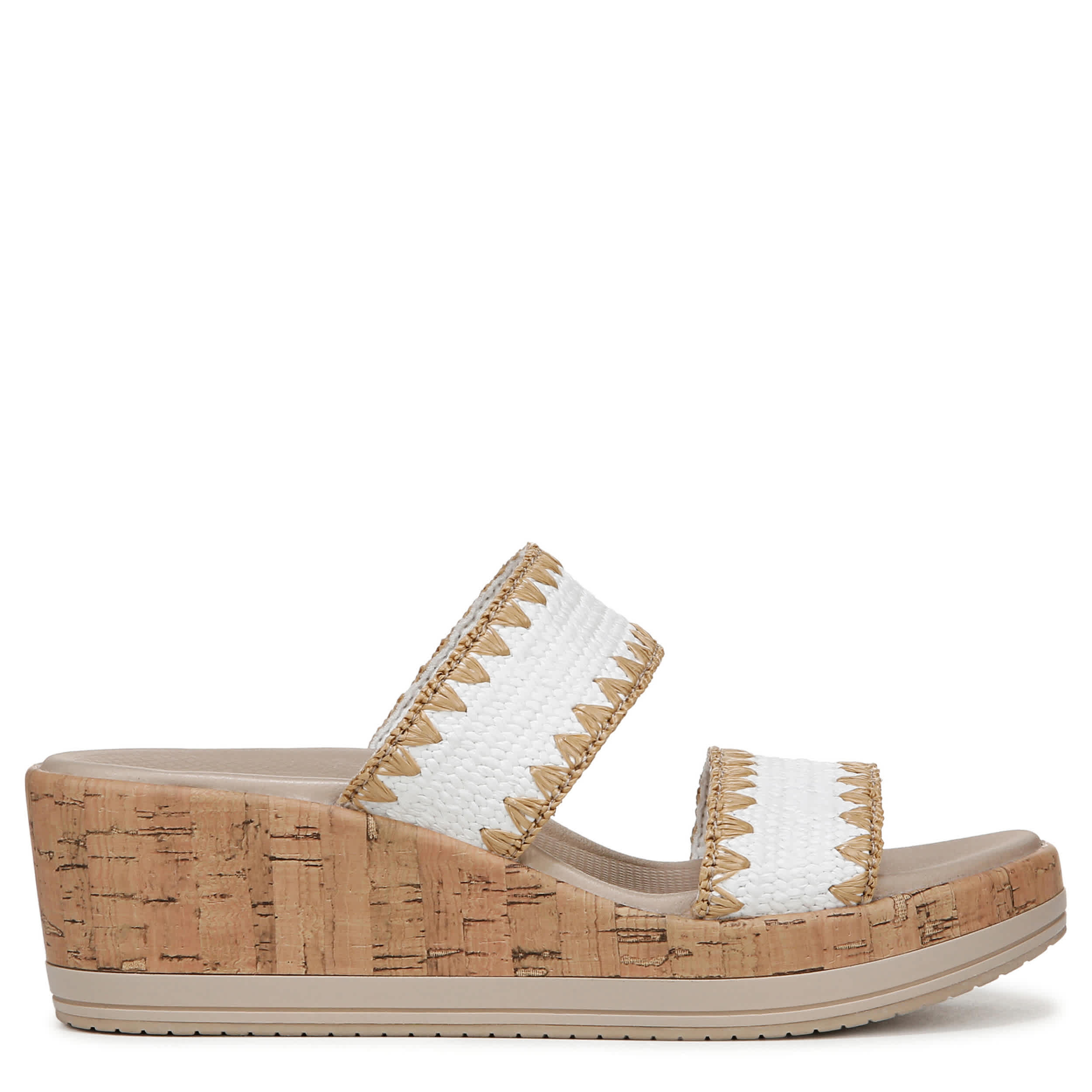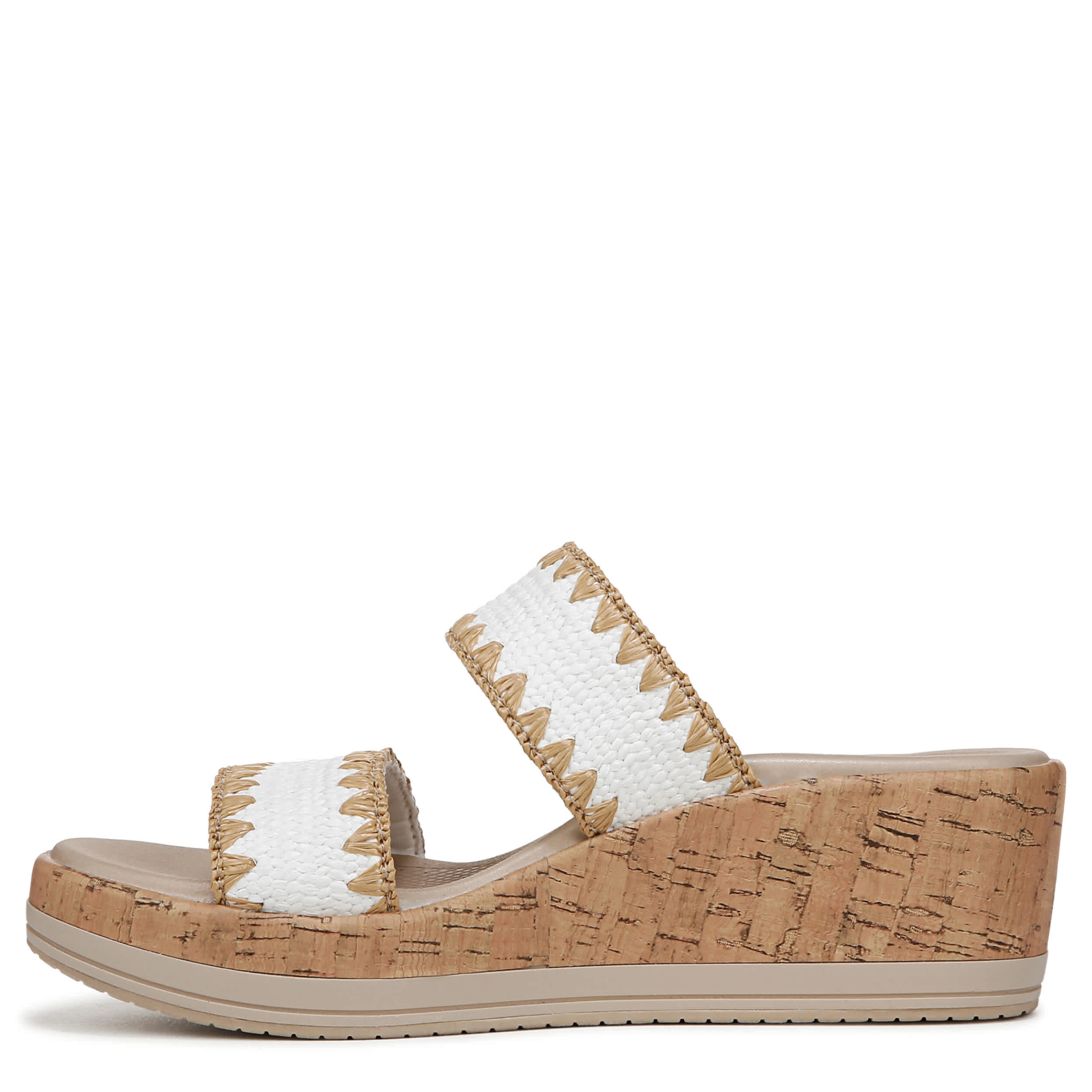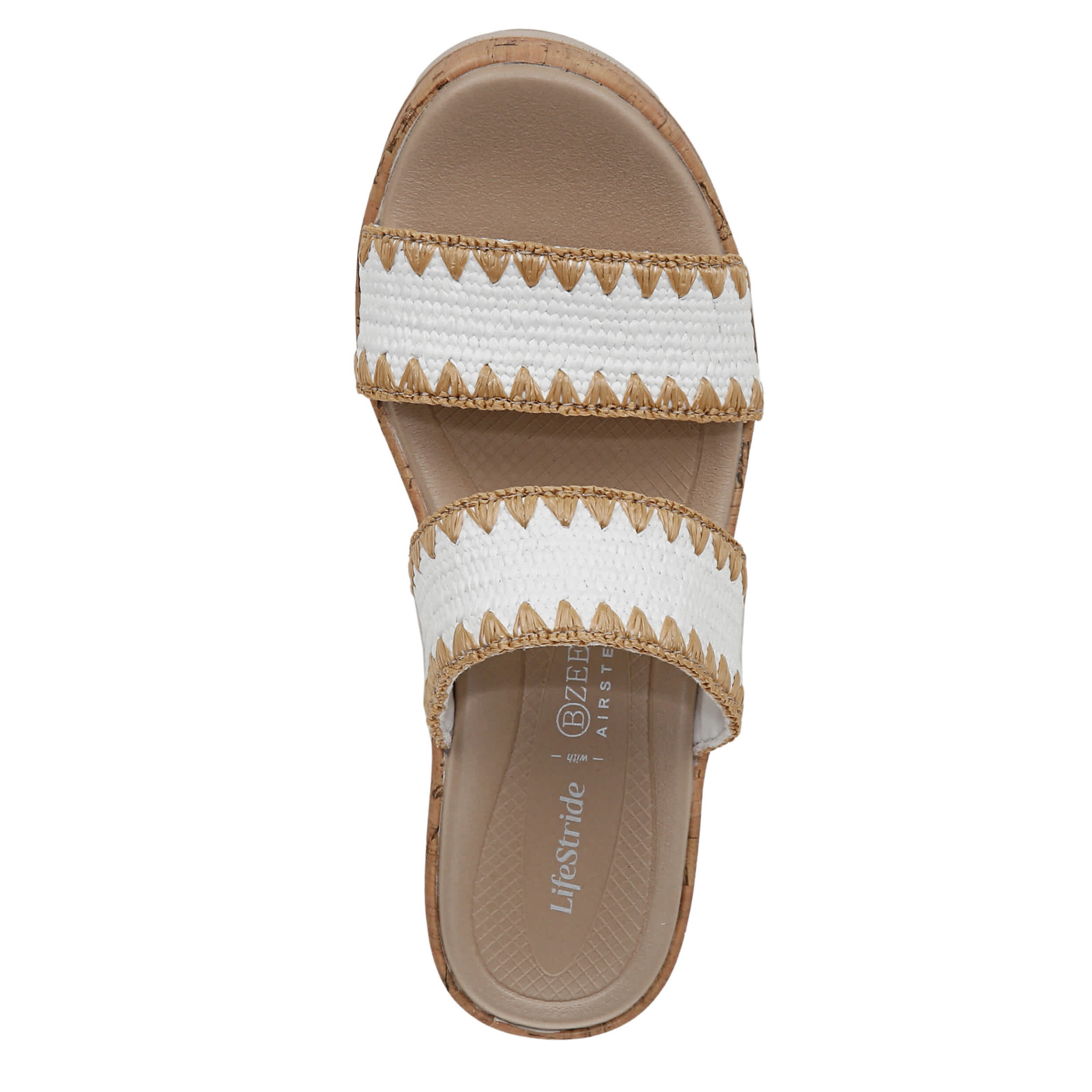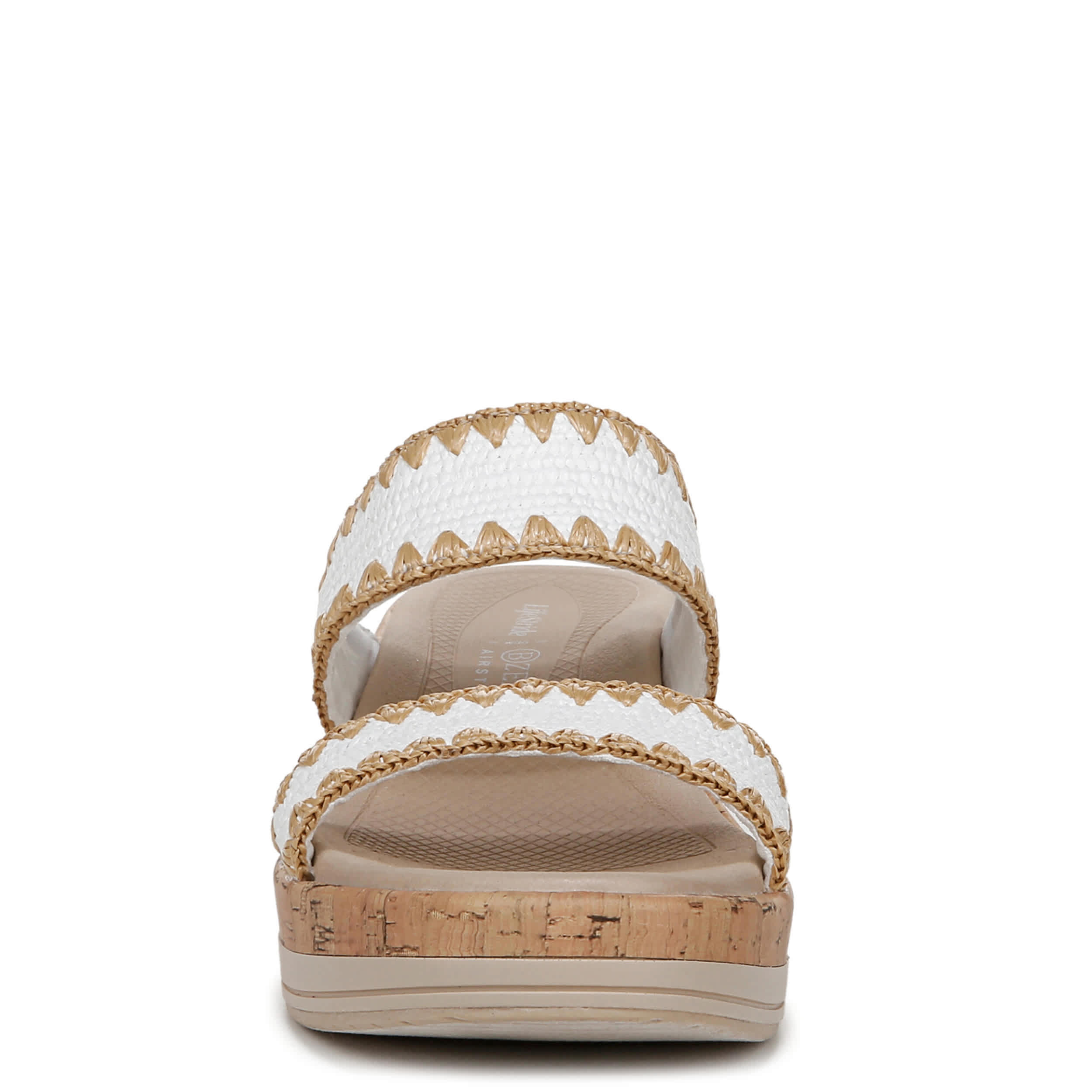 Instant trip to paradise in the LifeStride Resort wedge sandal. Featuring a breezy stretch knit upper with a two-band design, this peep toe slip-on has your back with cozy style. The air-infused outsole and cork-like wedge heel add cushioned lift.