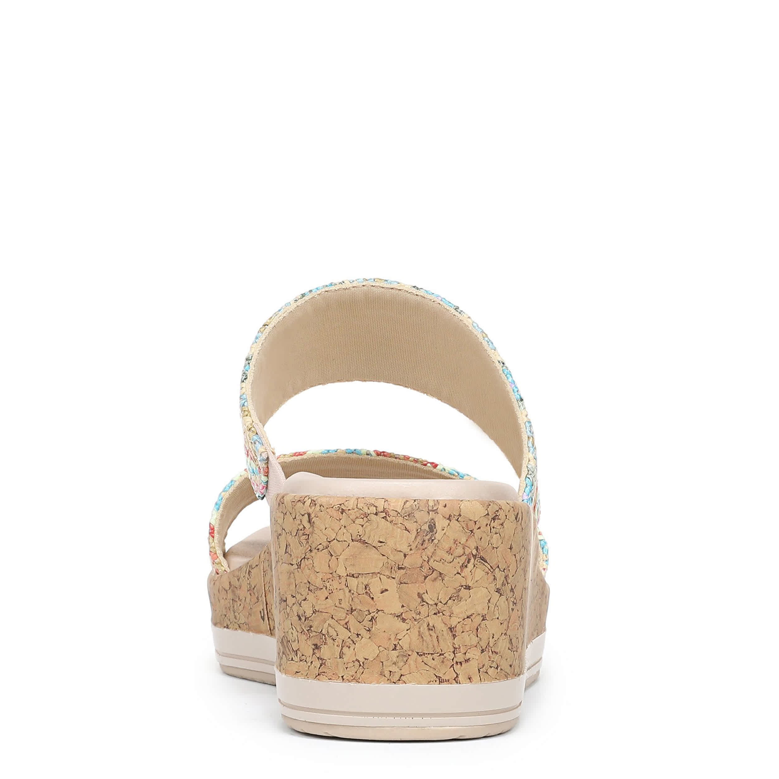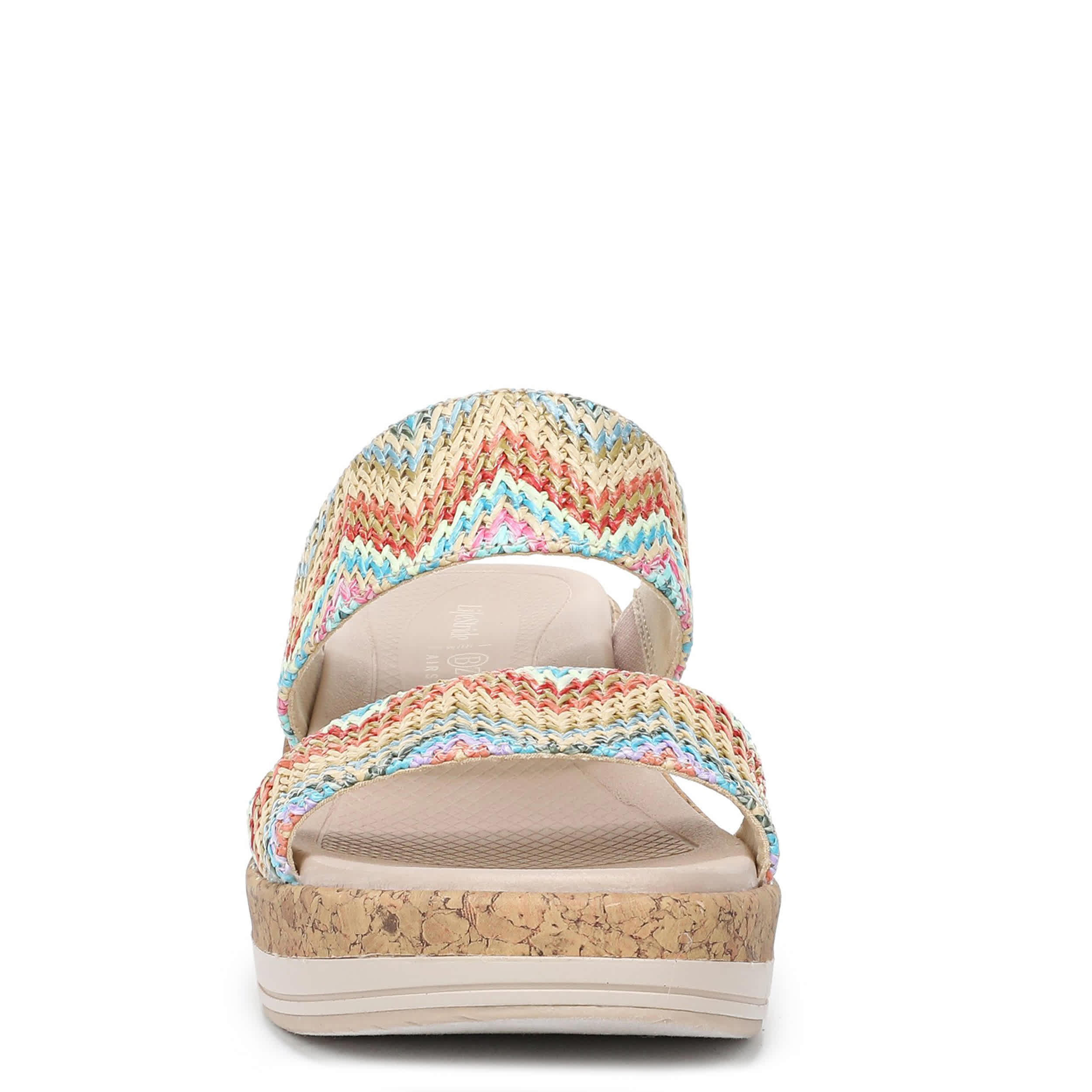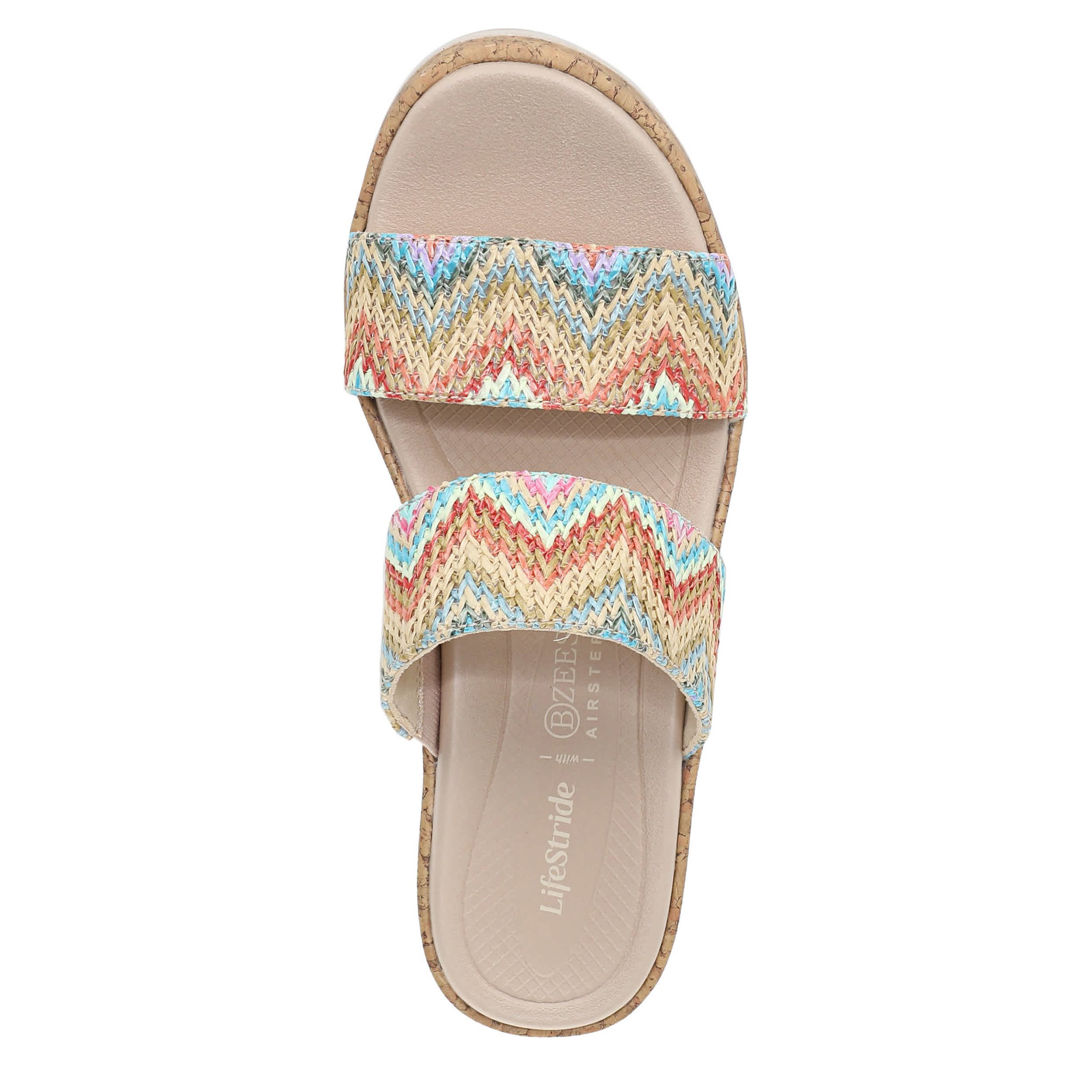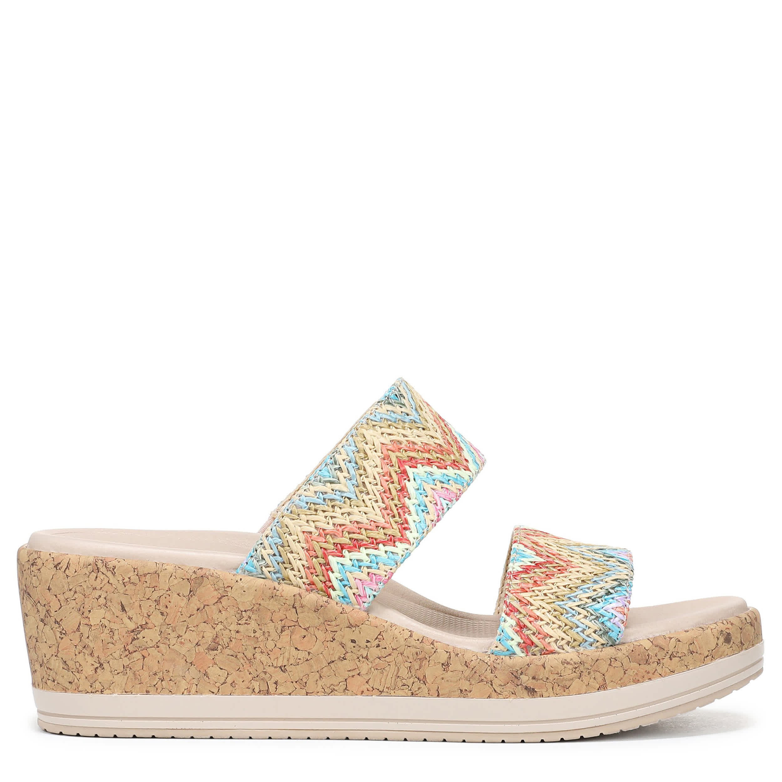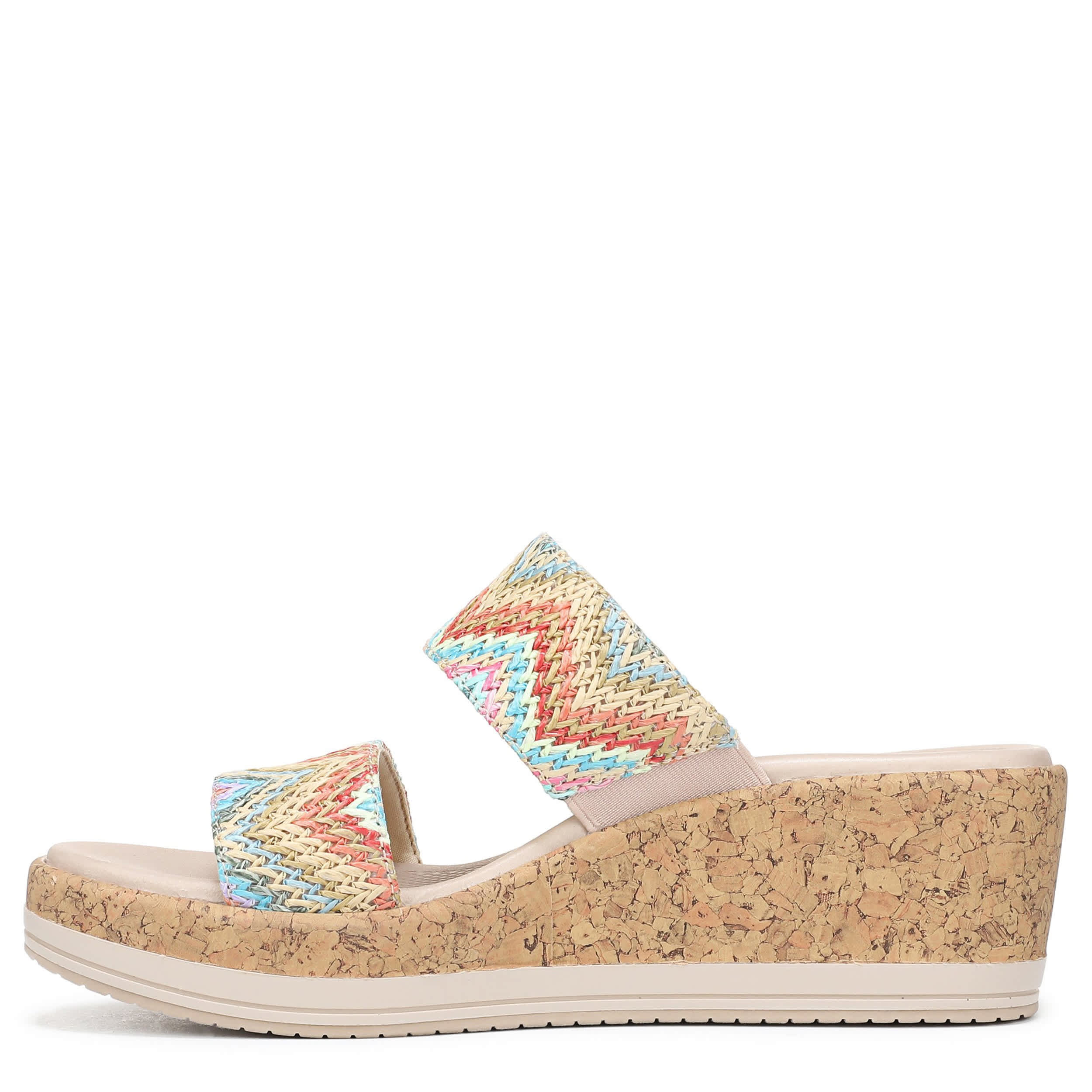 Instant trip to paradise in the LifeStride Resort wedge sandal. Featuring a breezy stretch knit upper with a two-band design, this peep toe slip-on has your back with cozy style. The air-infused outsole and cork-like wedge heel add cushioned lift.