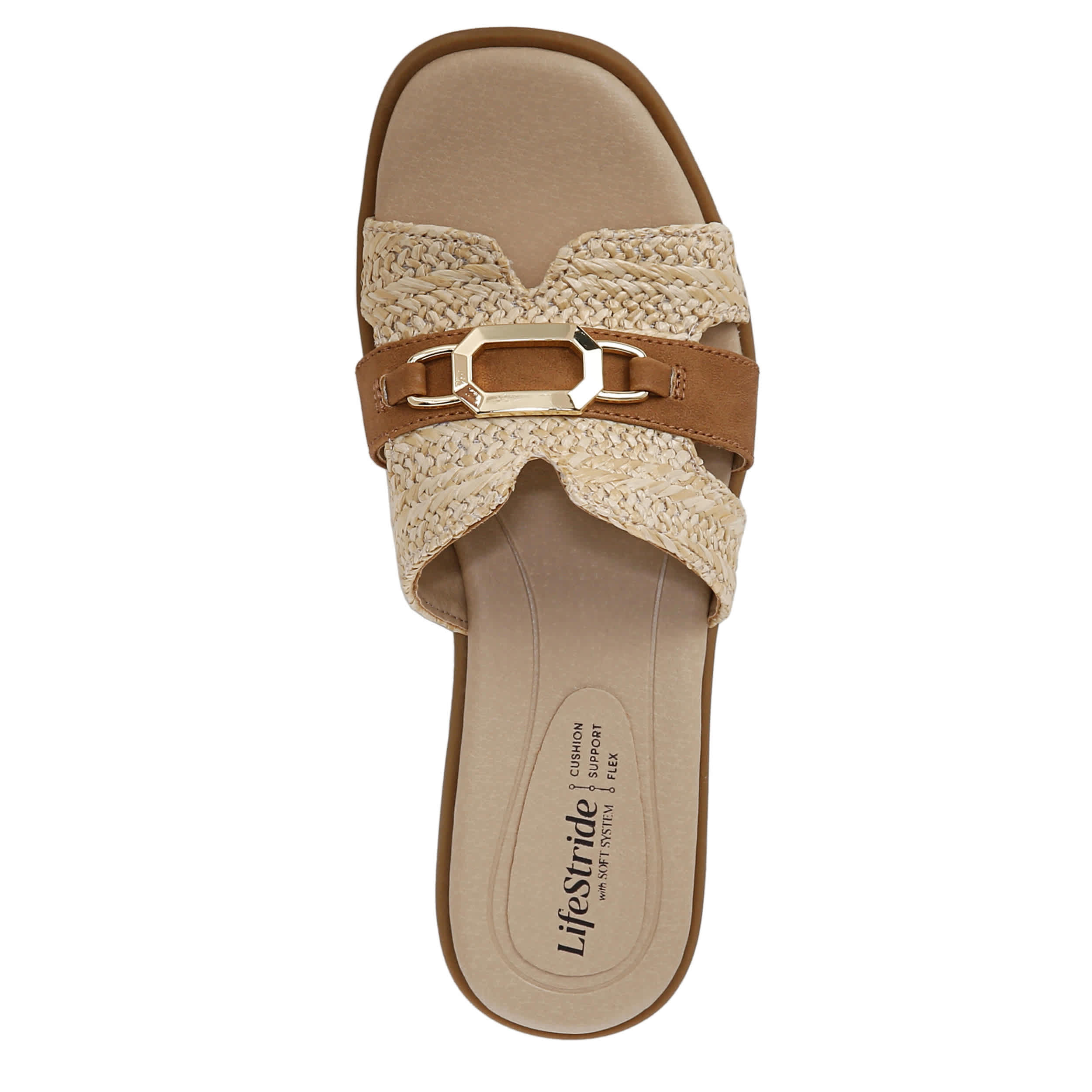 Look and feel regal in the LifeStride Royalty Bit sandal. Featuring a chic upper with a square toe and ornamental detail, this shoe has endless styling potential. Soft System® comfort technology provides unmatched cushion, while the low heel adds subtle lift.