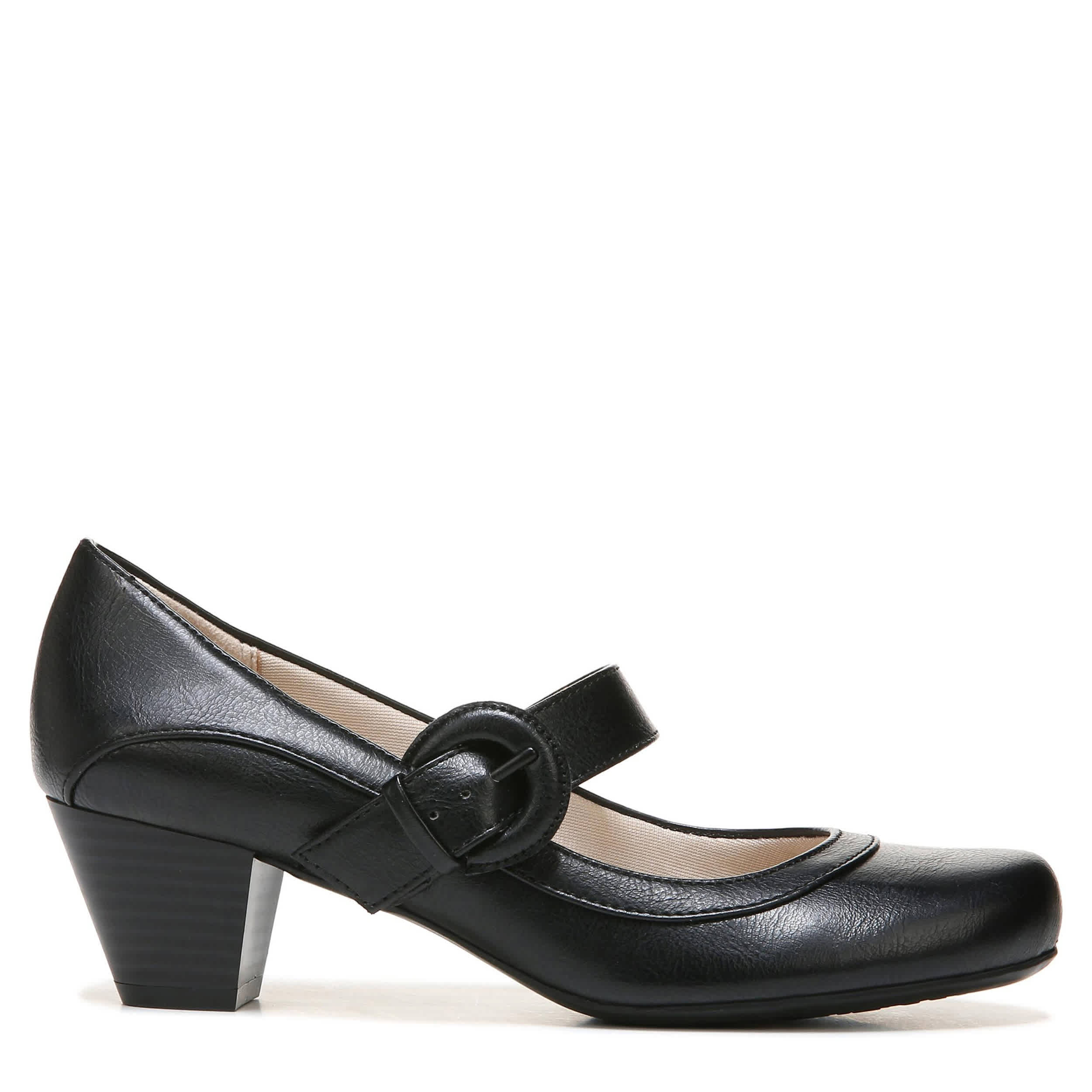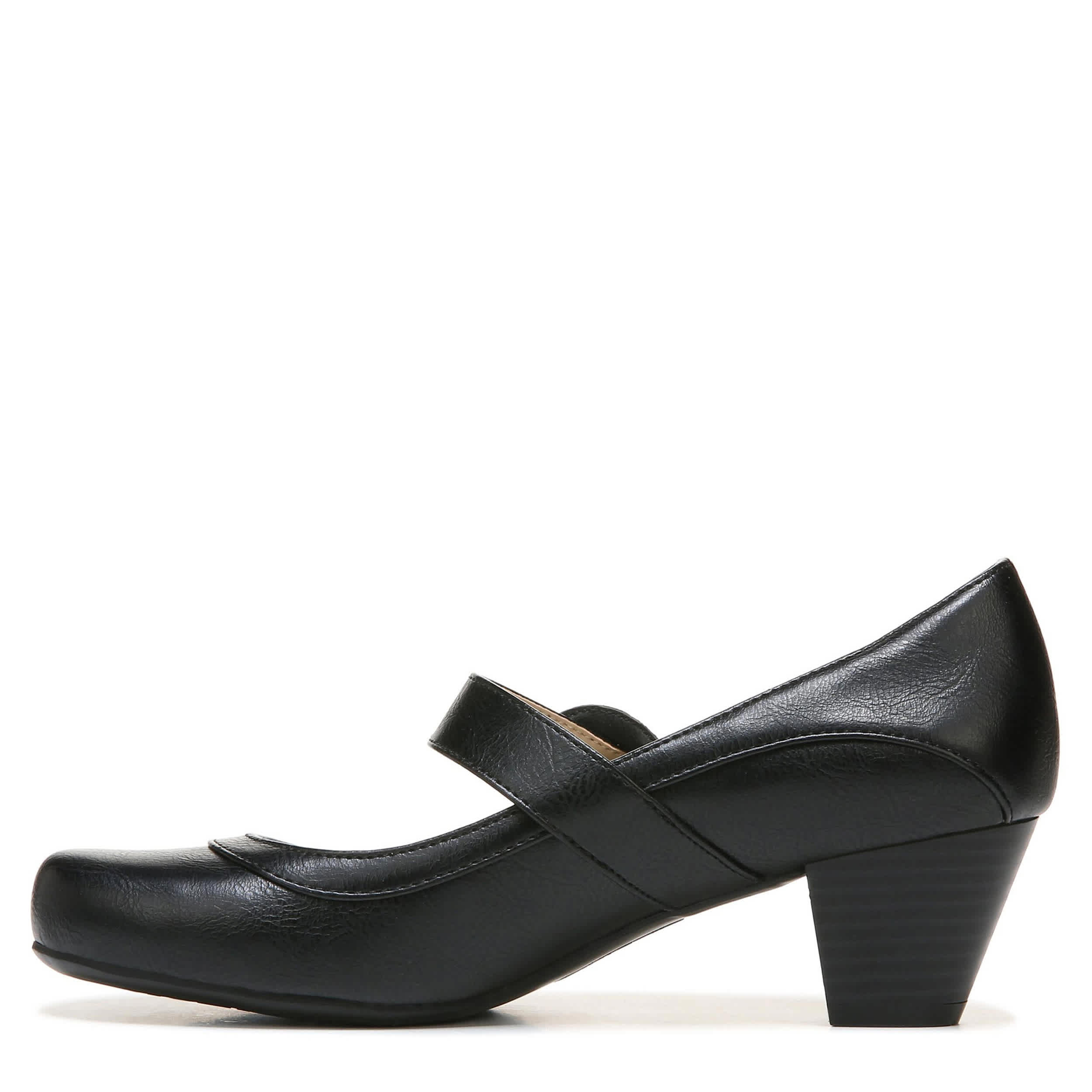 Cute and comfortable, the Rozz pump by Lifestride is everything you've wanted in a dressy shoe and more! The synthetic upper has a rounded toe with a monochrome adjustable buckle strap for a secure and comfortable fit. The Soft System® cushioning will support your foot for all-day wear while the 1 7/8" heel boosts your silhouette.
