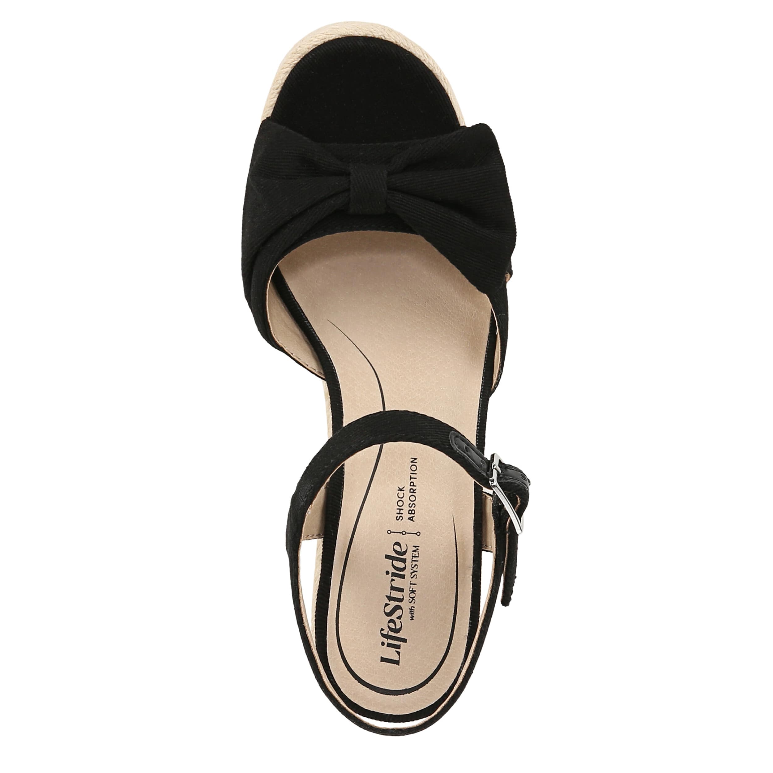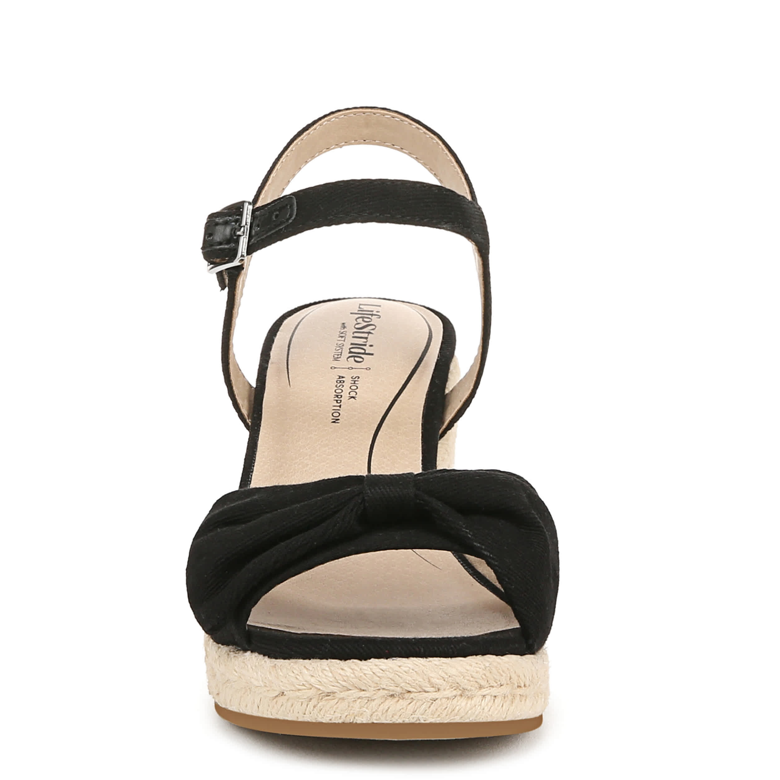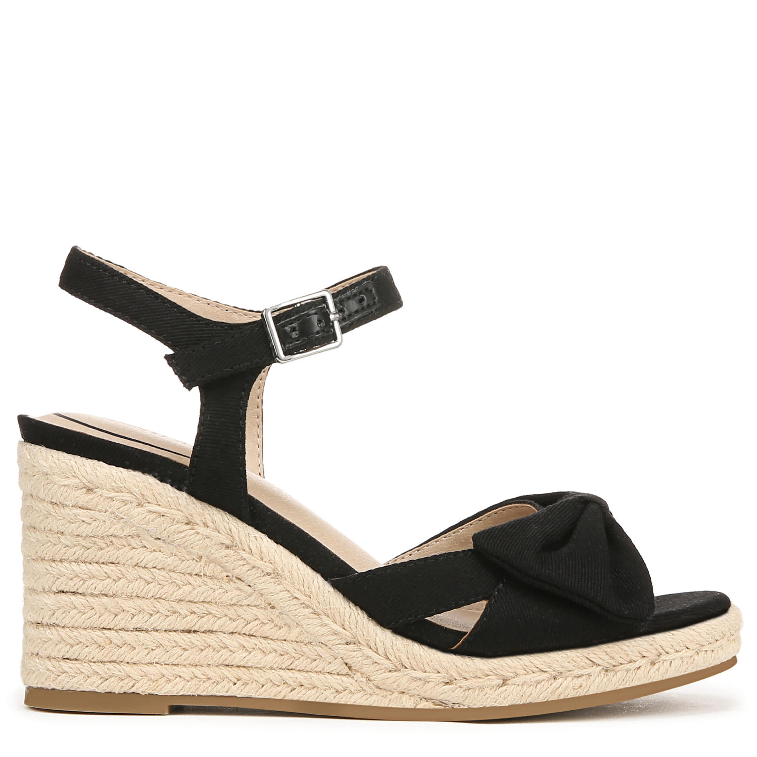Stand out in the Tahlia wedge sandal from LifeStride. With a fabric upper featuring a bow detail, this shoe accents any casual outfit with a special feminine touch. The Soft System® footbed offers great cushioning, while the espadrille wedge gives the perfect lift.