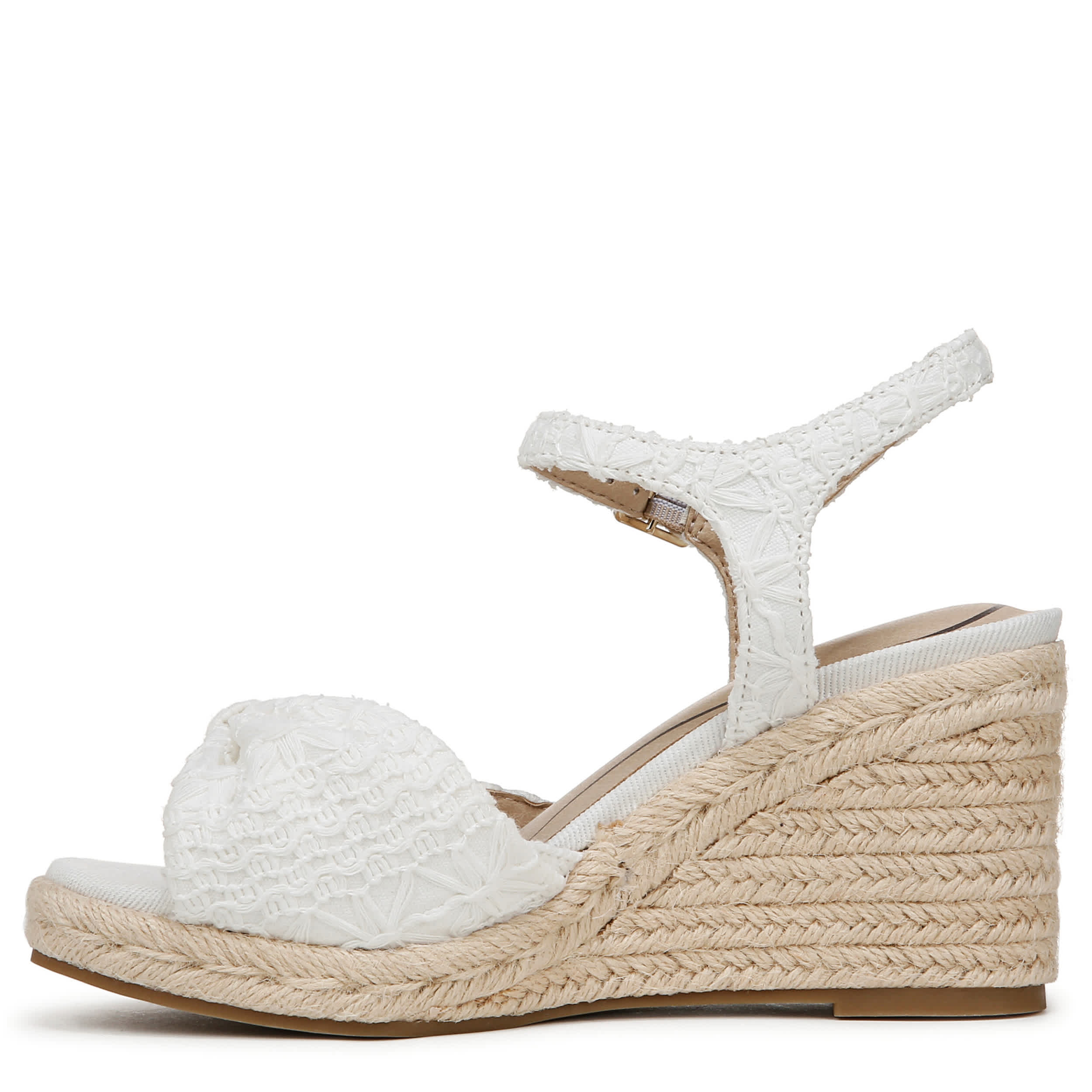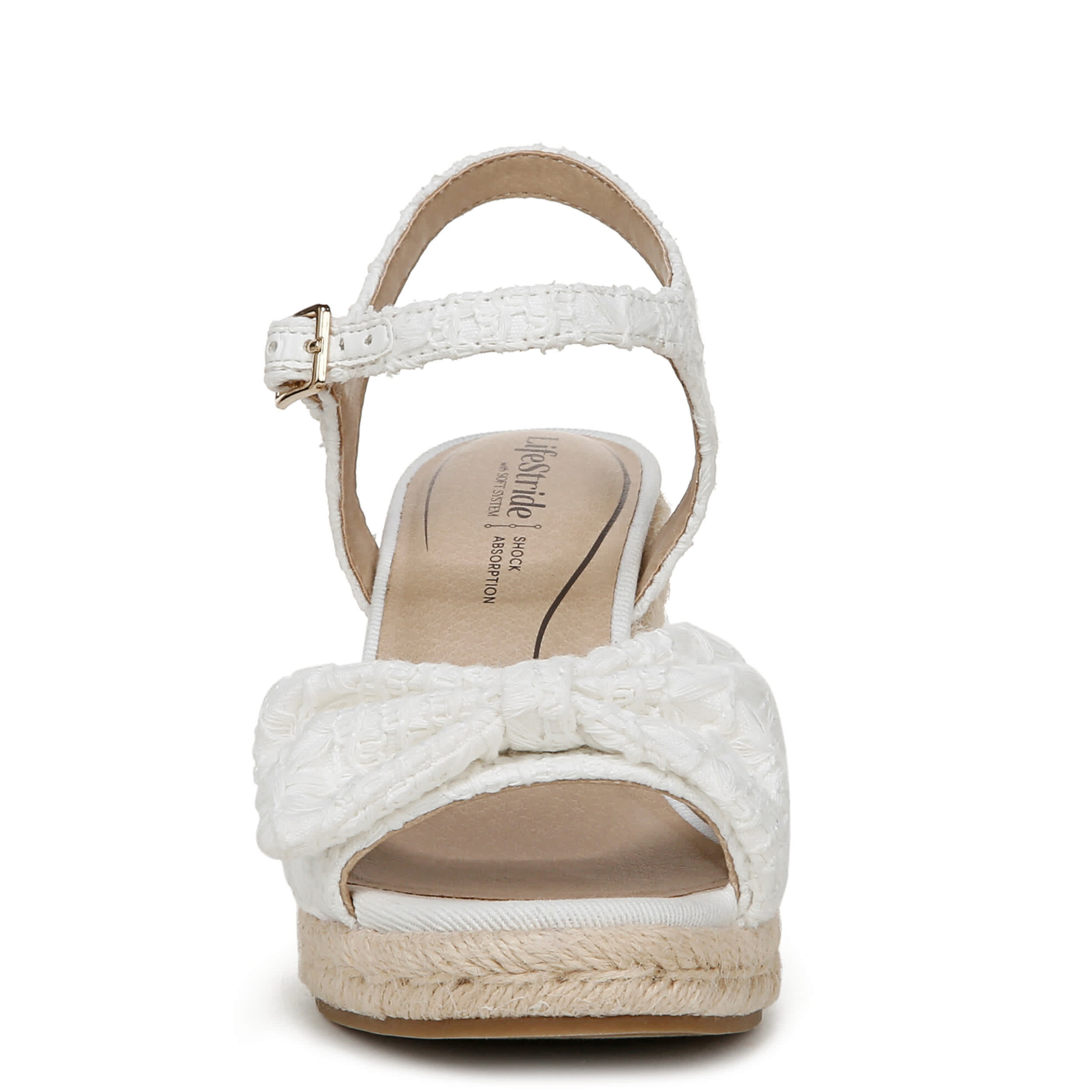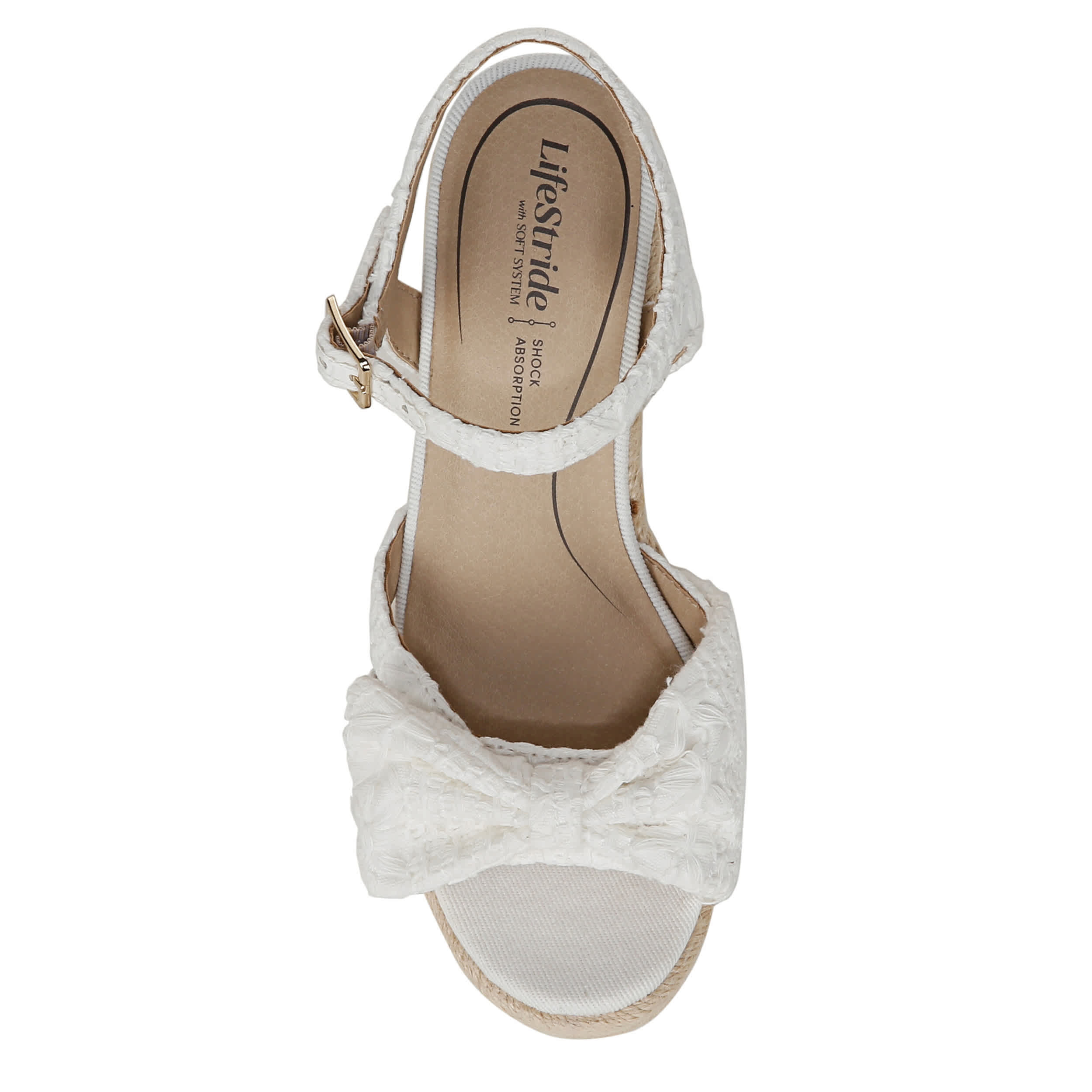 Stand out in the Tahlia wedge sandal from LifeStride. With a fabric upper featuring a lacy overlay and feminine bow, this shoe is cute and flirty. The Soft System® comfort technology offers amazing cushioning & flexibility, while the wedge heel gives the more than enough lift.