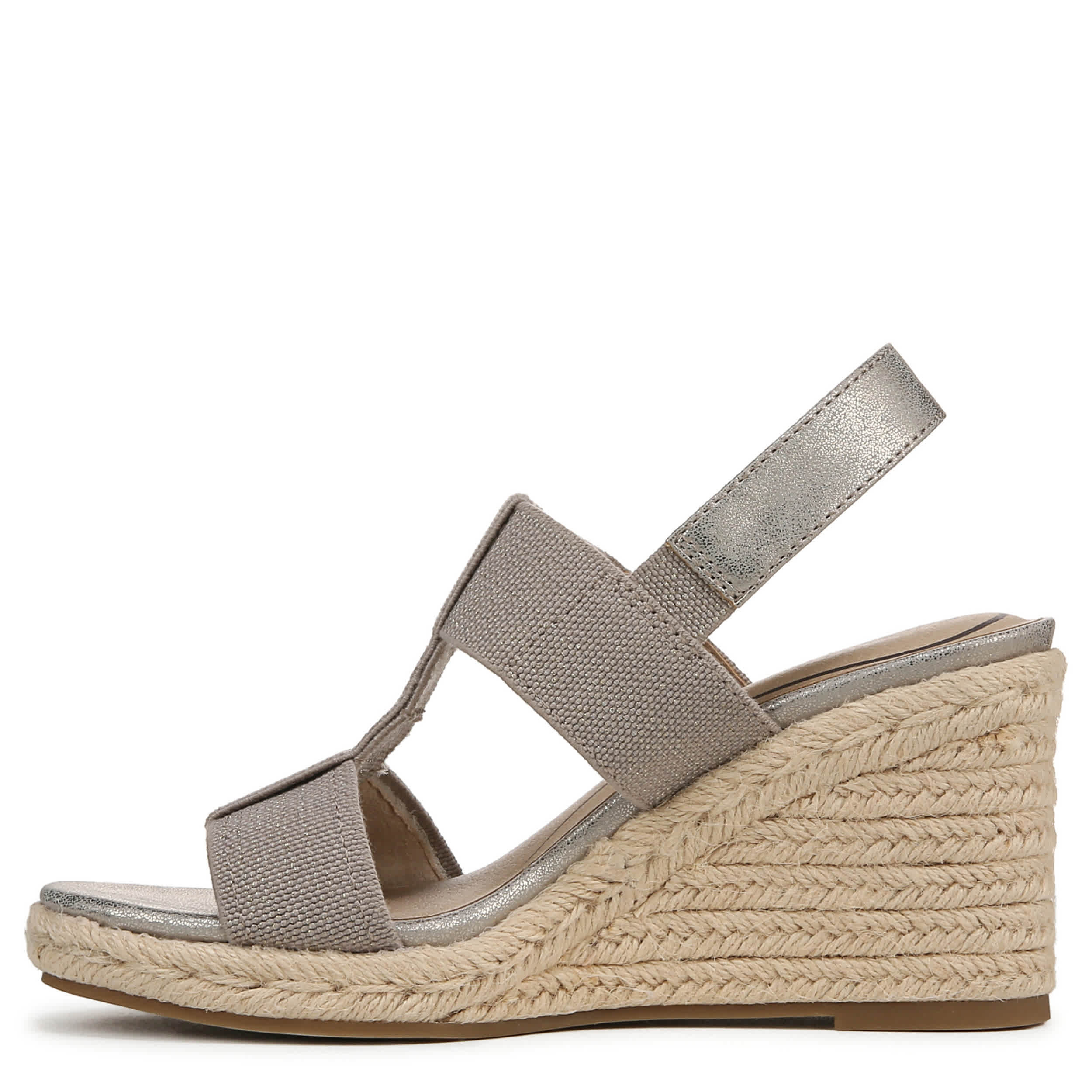 Modern style get the LifeStride treatment in the Tallulah wedge sandal. With a faux leather upper featuring stretch gore straps for extra flexibility, this open toed shoe feels effortless. The Soft System® comfort technology has unmatched cushioning, while the pressure distribution absorbs shock so you can enjoy that high heel.