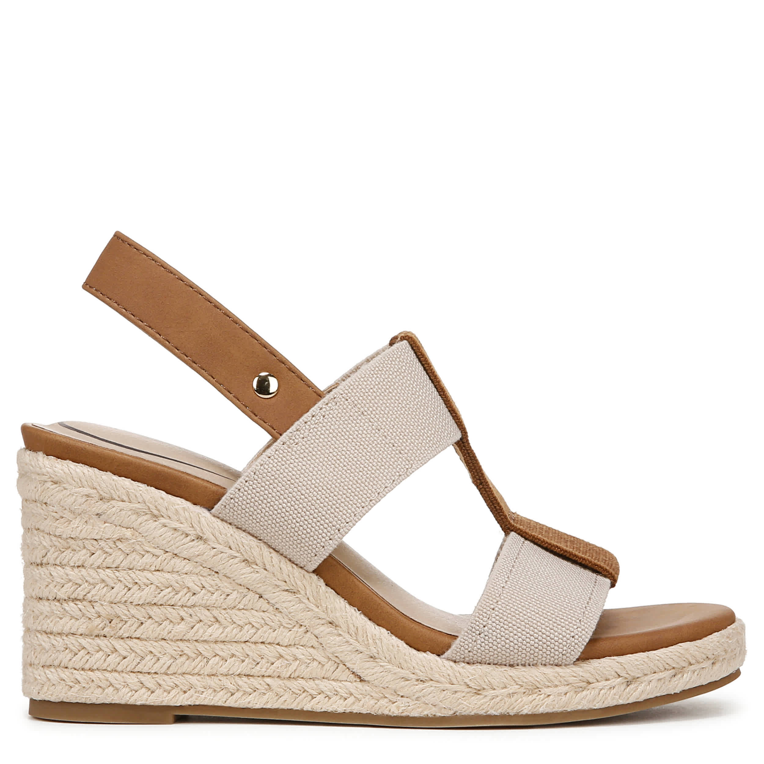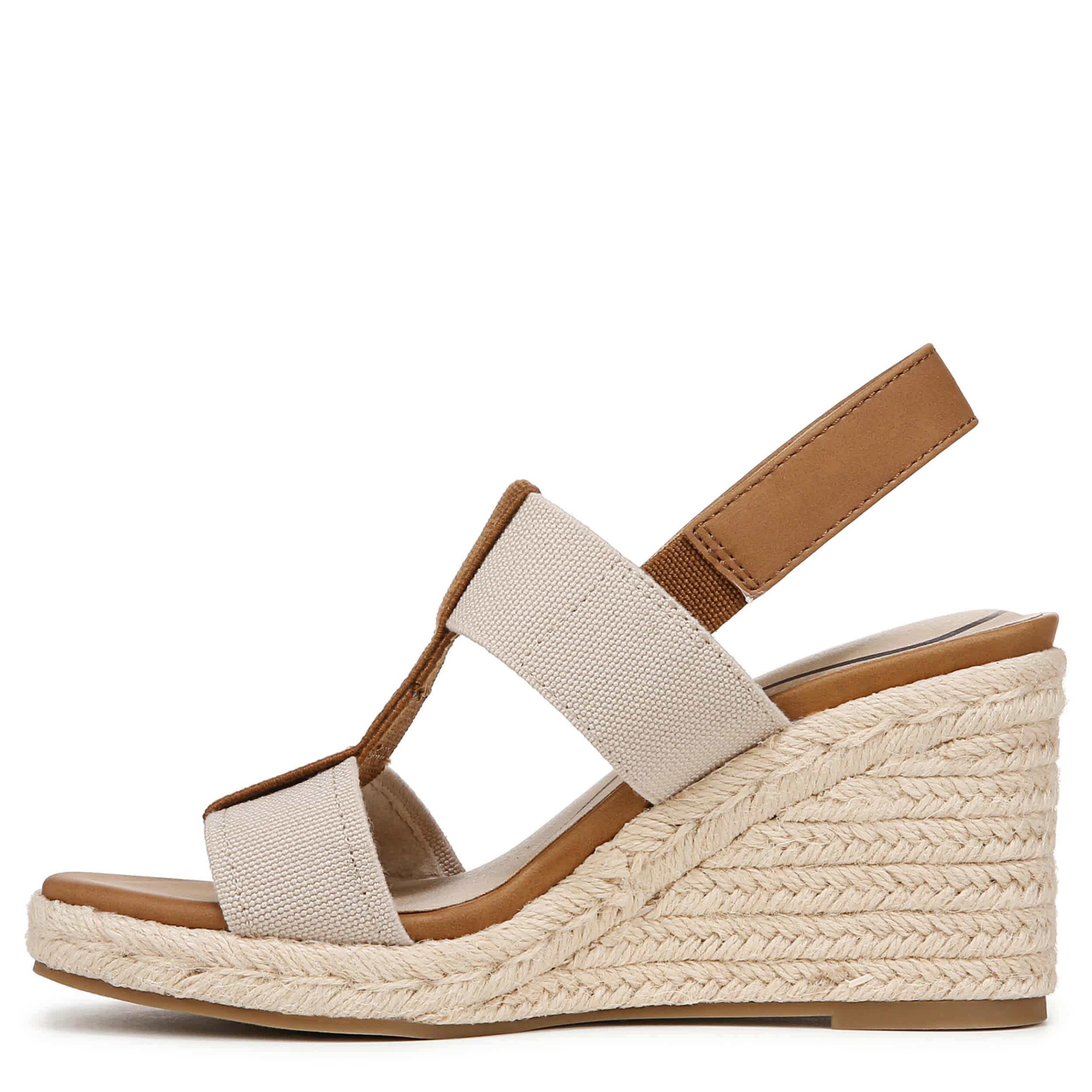 Modern style get the LifeStride treatment in the Tallulah wedge sandal. With a faux leather upper featuring stretch gore straps for extra flexibility, this open toed shoe feels effortless. The Soft System® comfort technology has unmatched cushioning, while the pressure distribution absorbs shock so you can enjoy that high heel.