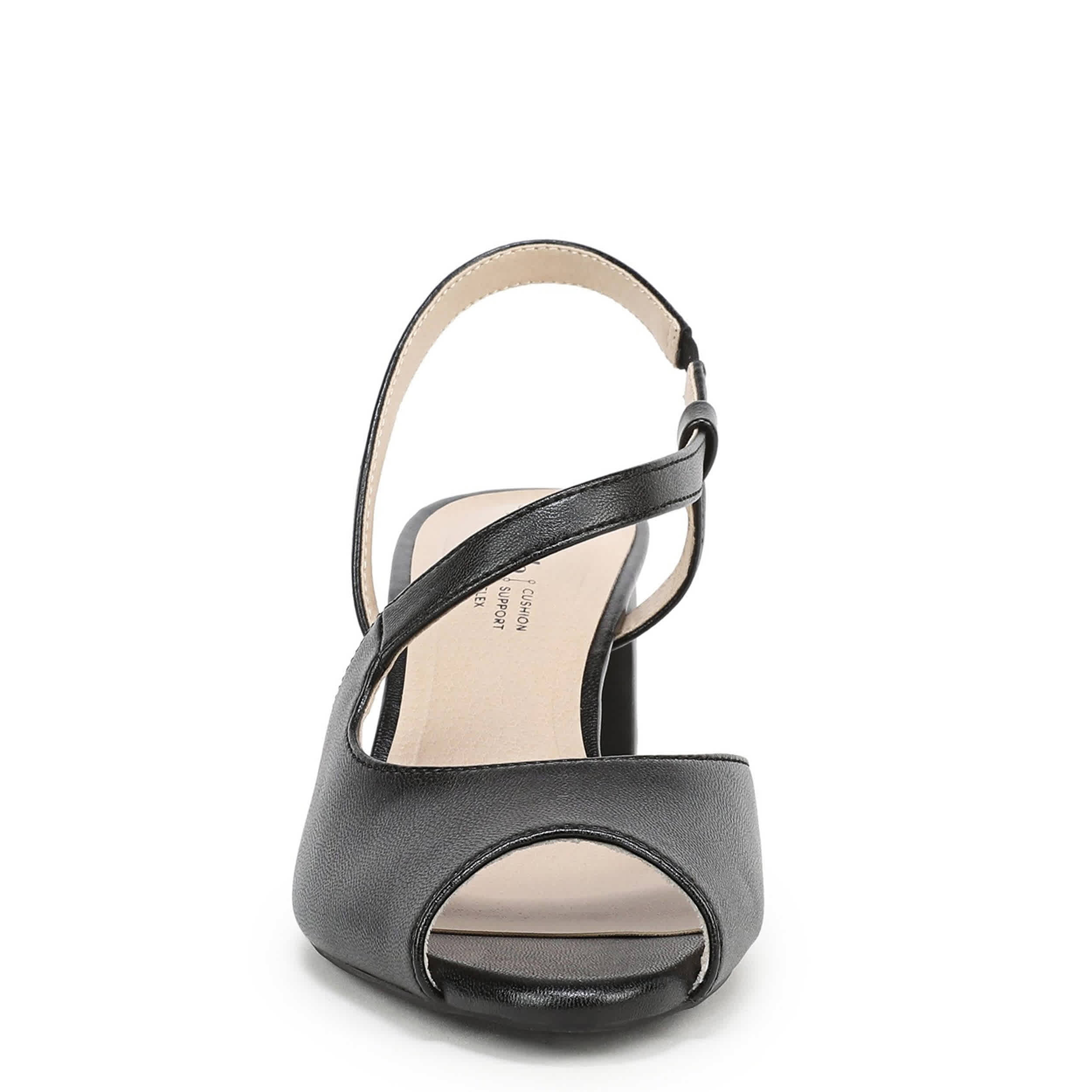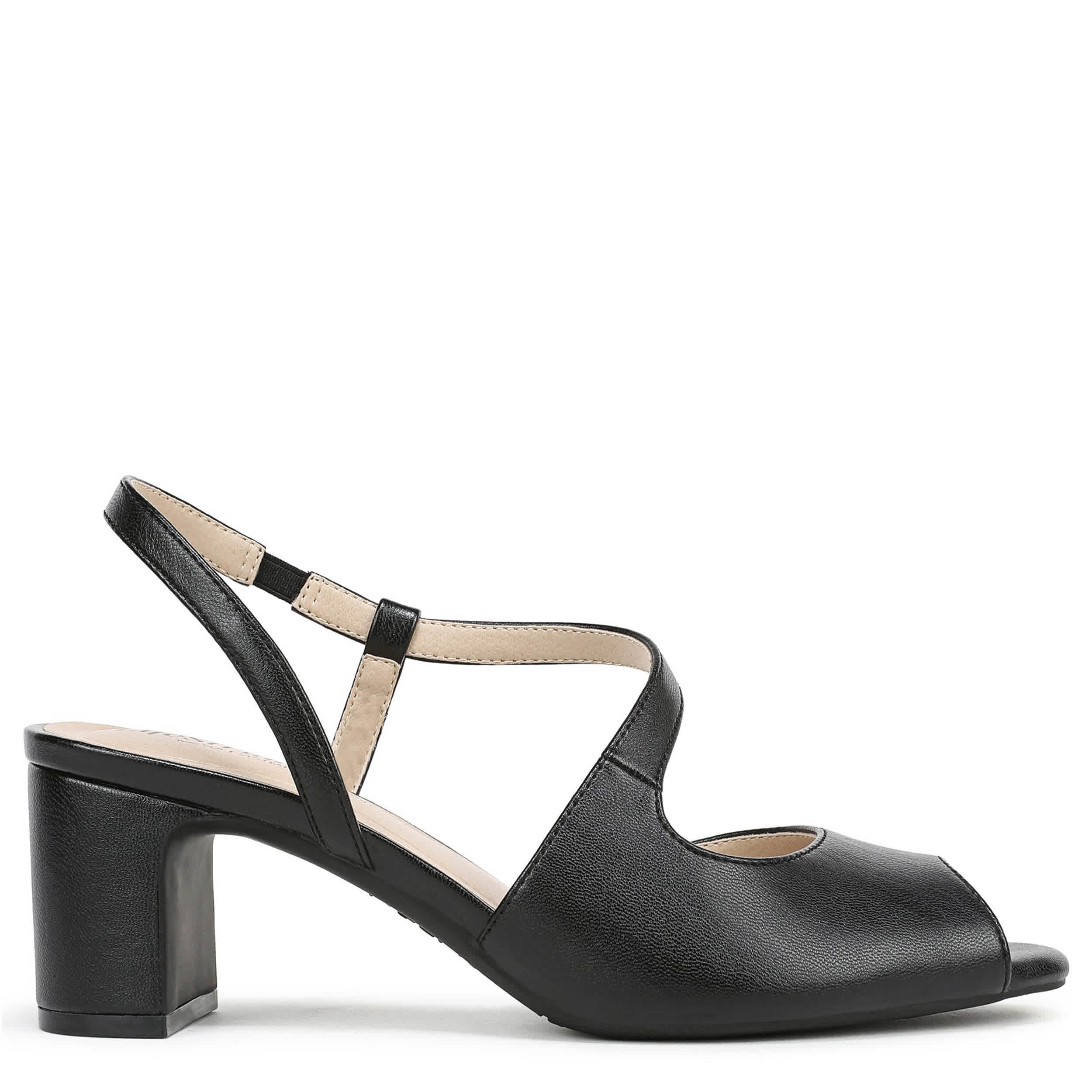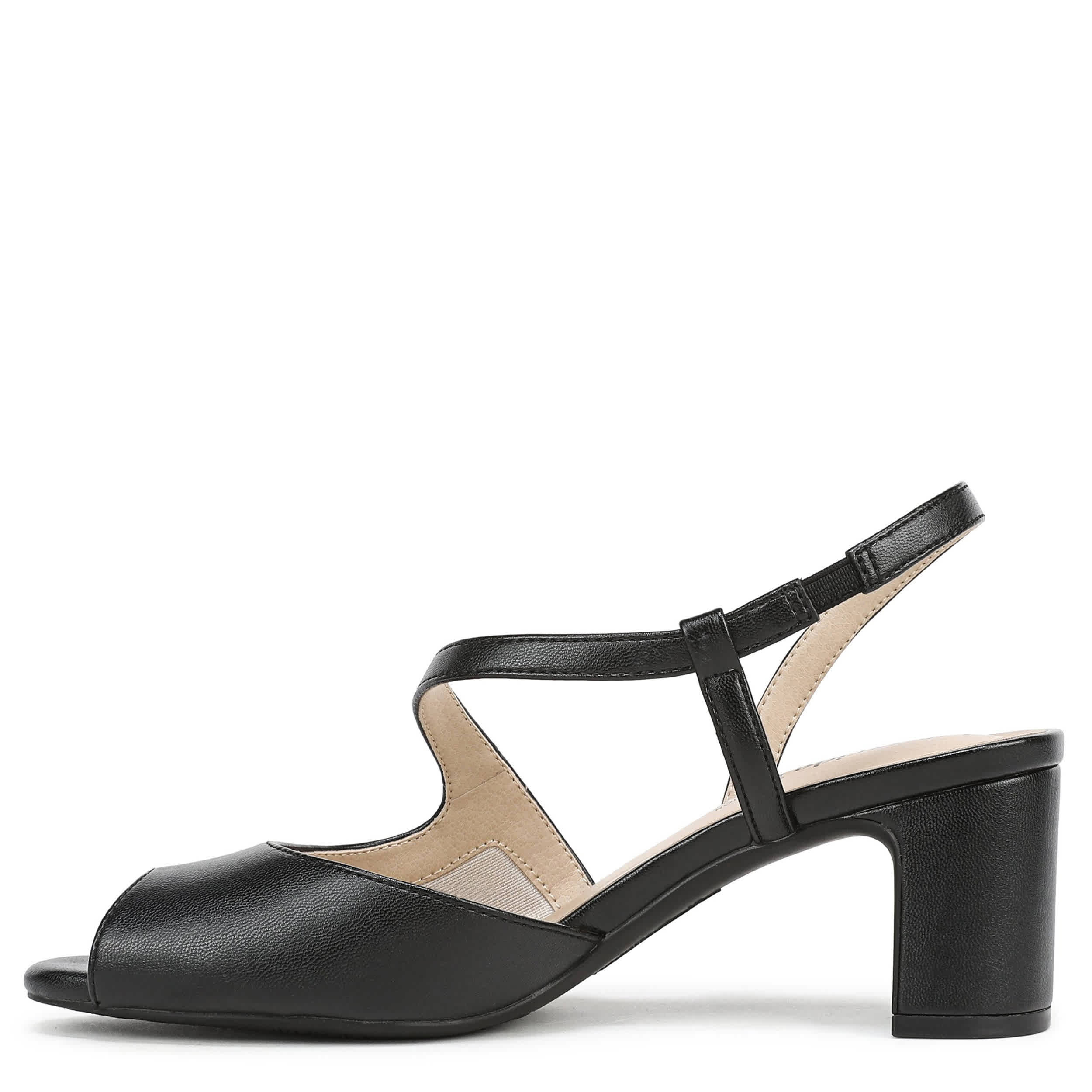 Modernize professionalism in the Theo women's sandal from LifeStride. With a microsuede or faux leather upper featuring a peep toe, this asymmetrical shoe is workplace- ready and perfect for spring. The Soft System® comfort package cushions with all-day support that works nicely with the block heel.