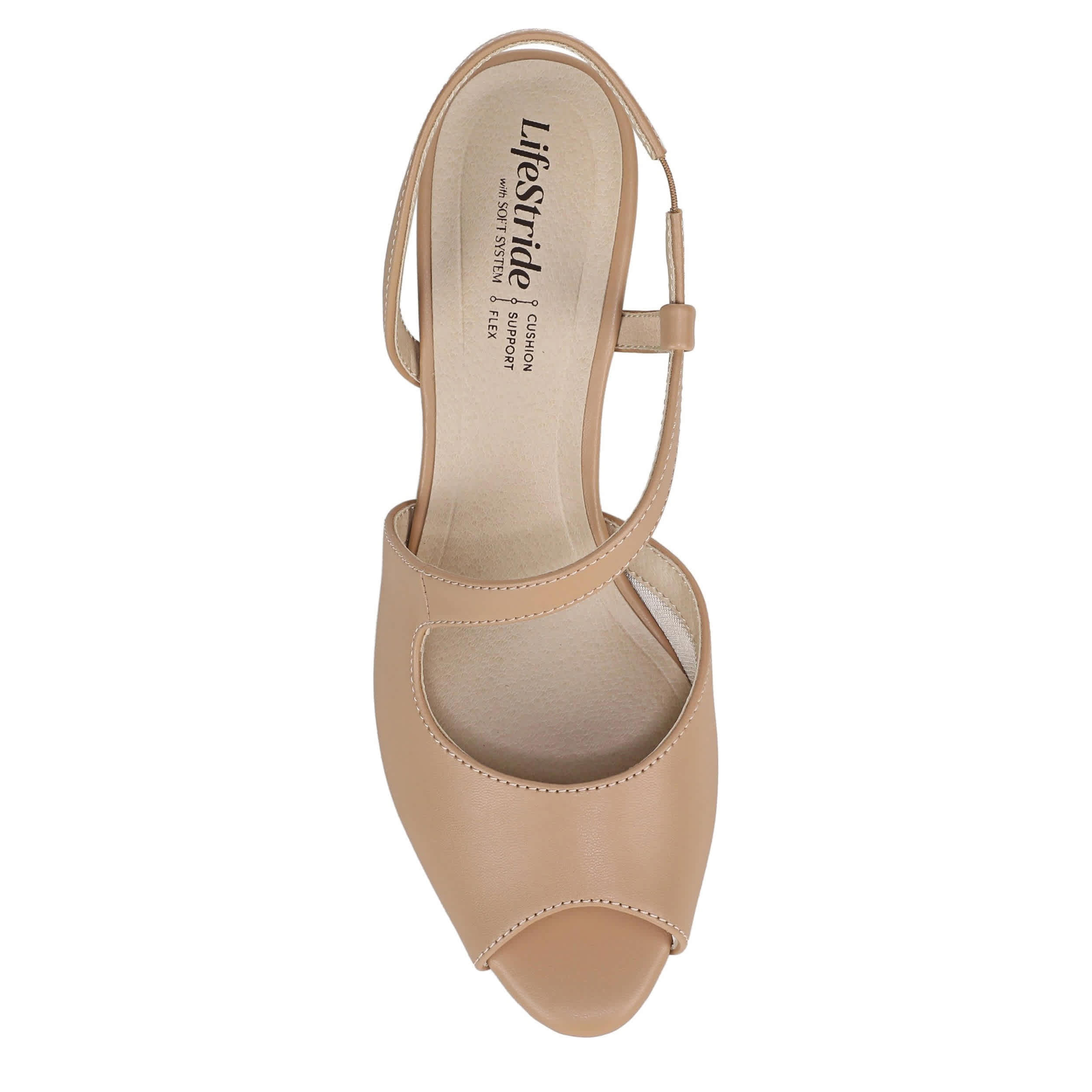 Modernize professionalism in the Theo women's sandal from LifeStride. With a microsuede or faux leather upper featuring a peep toe, this asymmetrical shoe is workplace- ready and perfect for spring. The Soft System® comfort package cushions with all-day support that works nicely with the block heel.