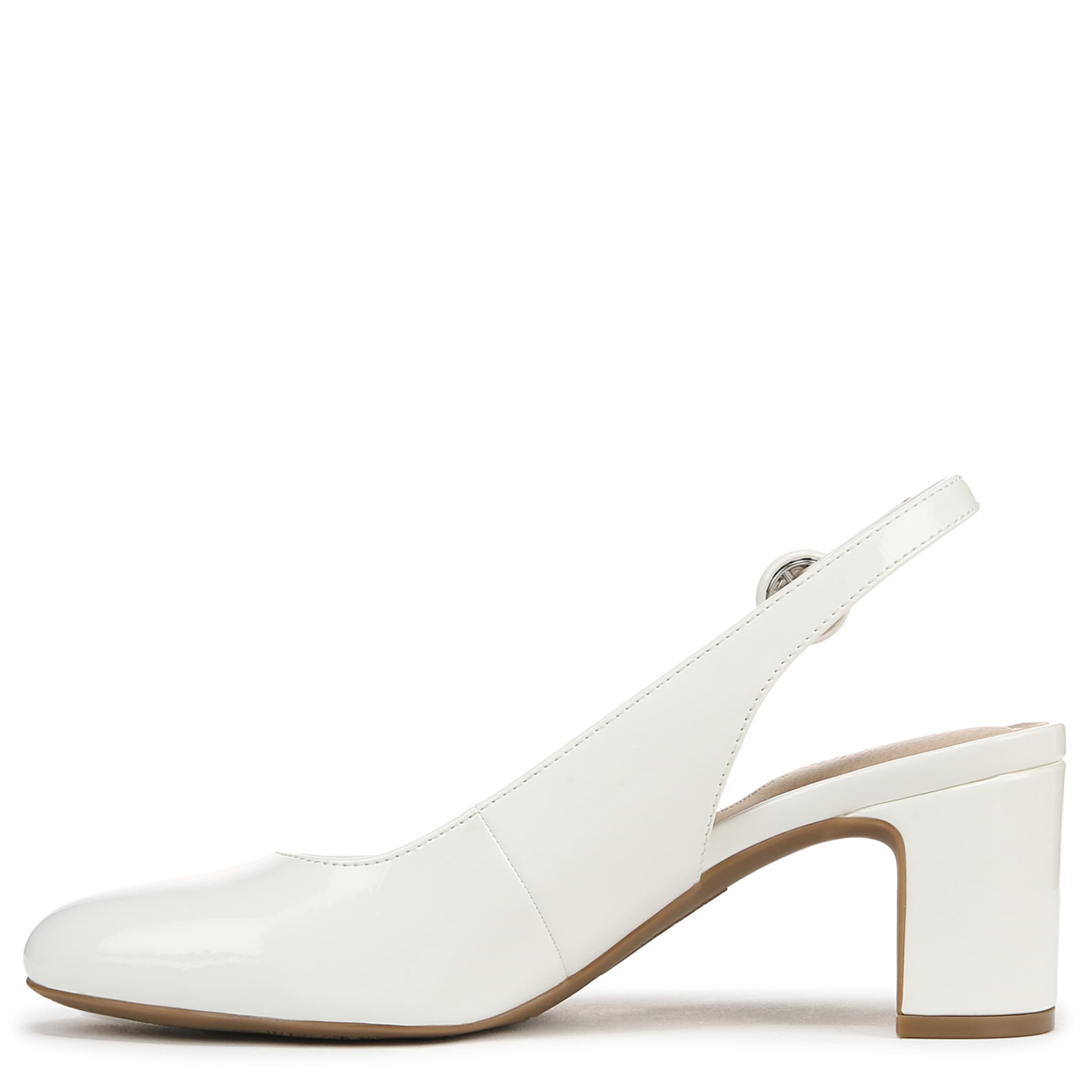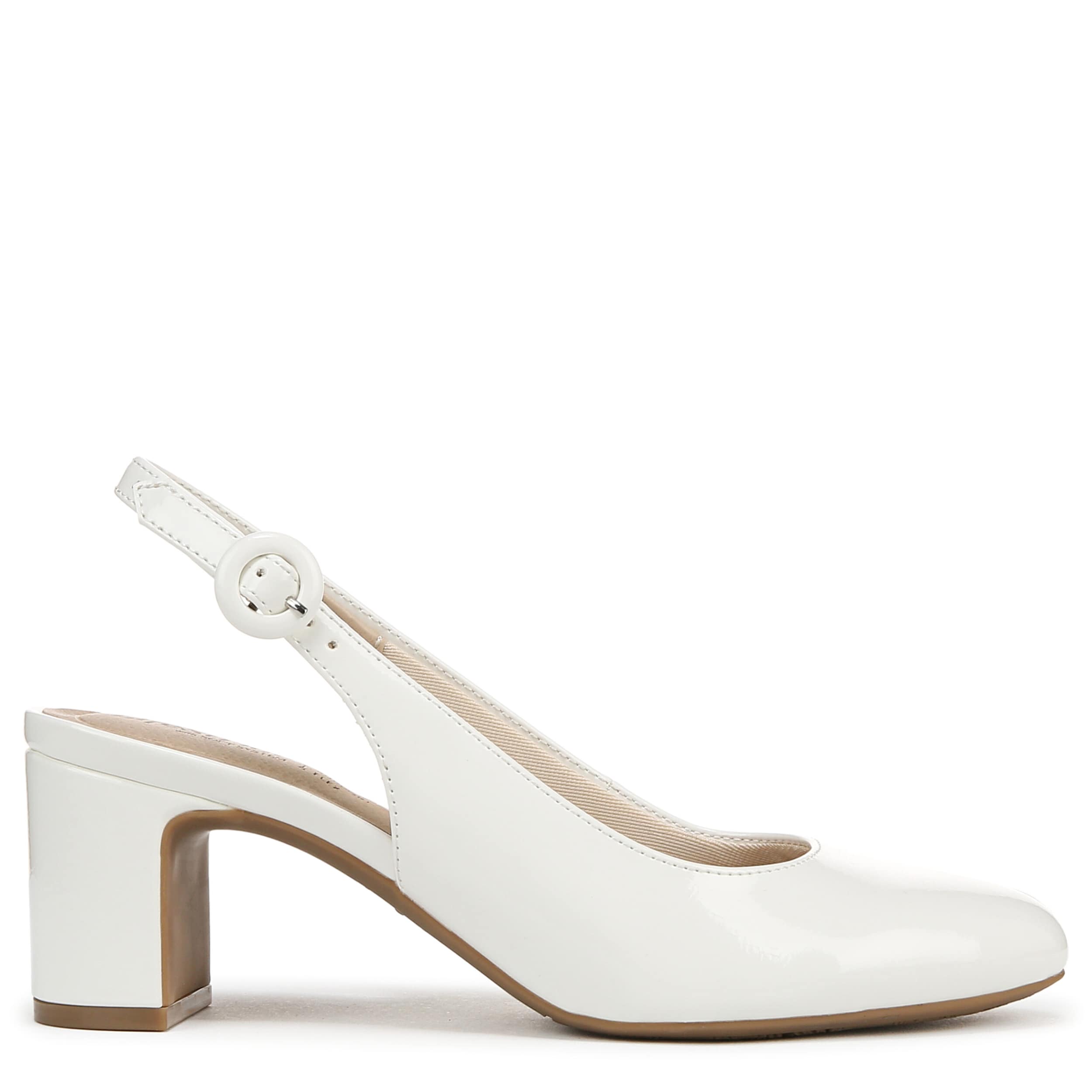 Stay on trend in the Tia pump from LifeStride. Featuring a glossy patent leather upper, this almond toe shoe is an office wardrobe staple. The foam footbed cushions and offers flexibility with Soft System® comfort technology, while the block heel gives the perfect lift for a professional outfit.