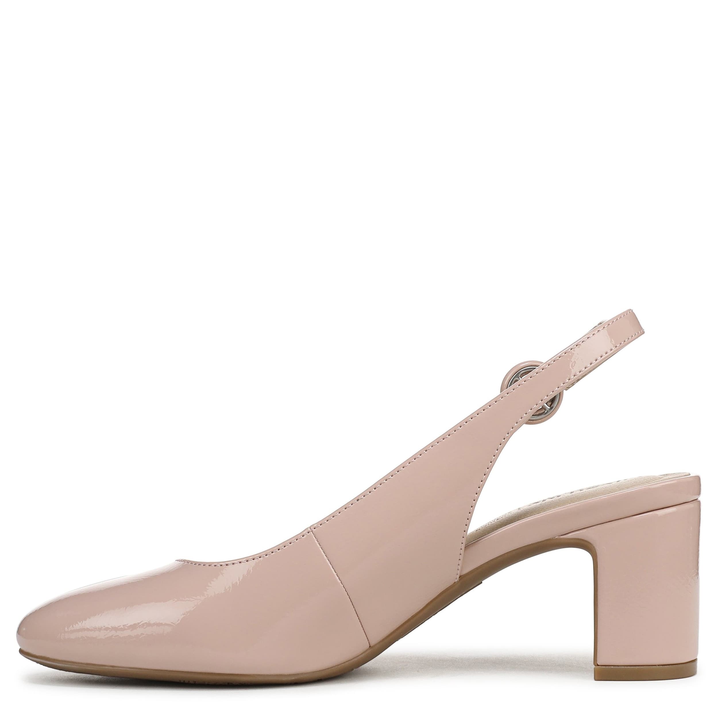 Stay on trend in the Tia pump from LifeStride. Featuring a glossy patent leather upper, this almond toe shoe is an office wardrobe staple. The foam footbed cushions and offers flexibility with Soft System® comfort technology, while the block heel gives the perfect lift for a professional outfit.