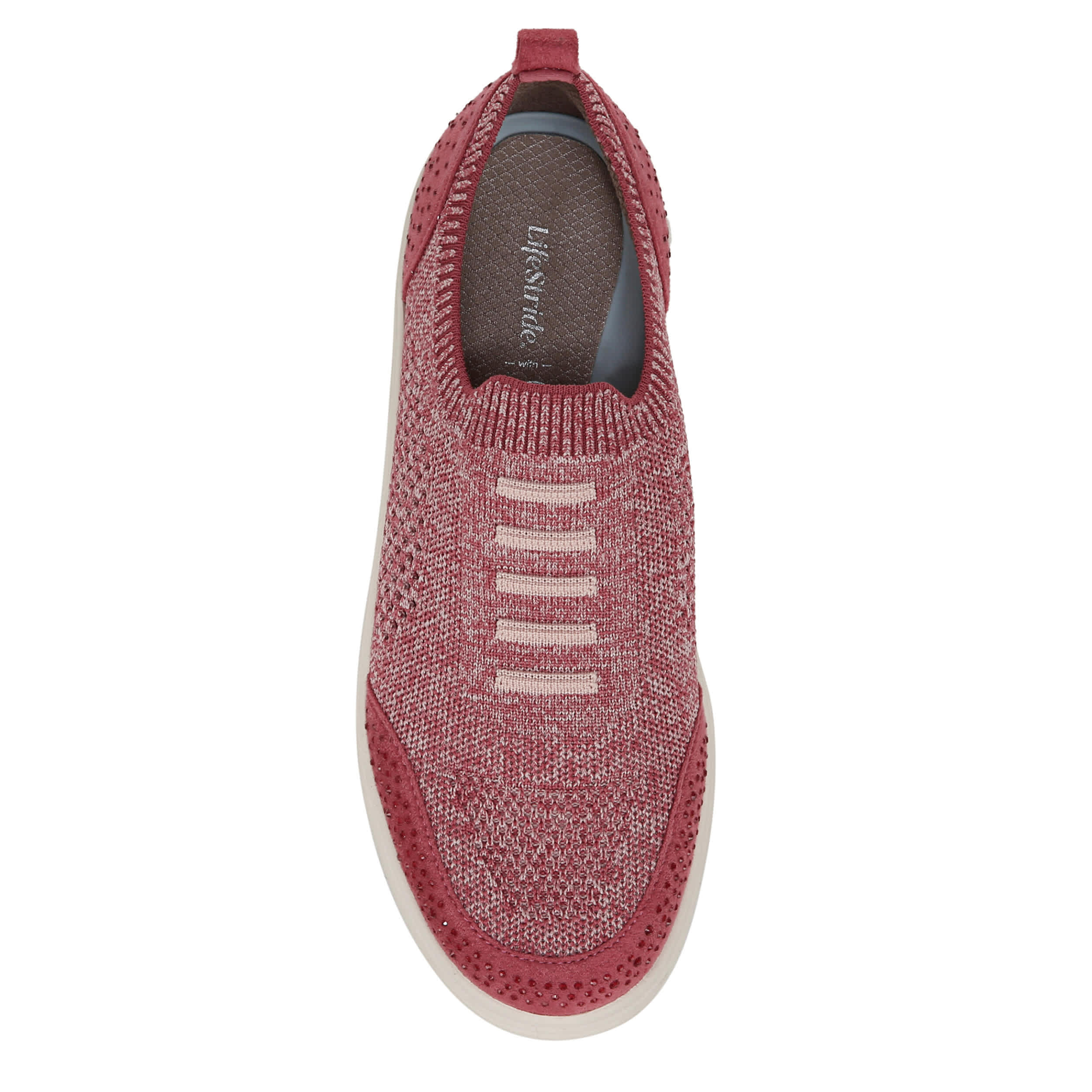 Wear an iconic sporty look with the LifeStride Timeless Bright slip-on sneaker. Made with a stretch engineered knit upper, this shoe has sparkly rhinestone embellishments for extra style. The FreeFoamâ„¢ Comfort insole works with Comfort Cone Gel and SoCush arch support to cushion your steps, while the synthetic outsole gives necessary traction.