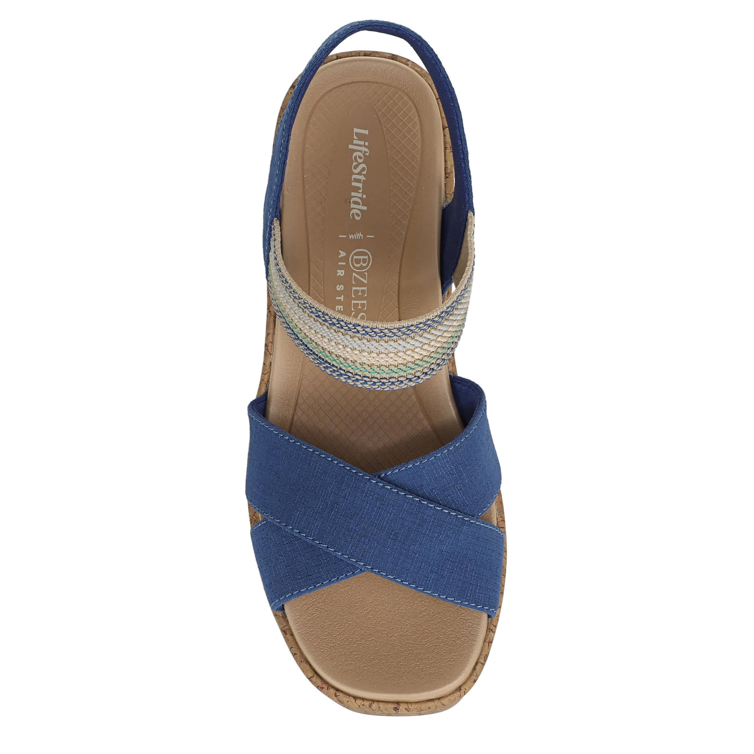 Slip into the Verify women's wedge sandal from LifeStride. Featuring a stretch fabric upper with crisscross straps and Anti-Odor Control technology for freshness, this cork-textured sandal is ultra lightweight and machine washable. The FreeFoamâ„¢ Comfort and cushy arch support cradle your foot, while the BZEES Air Step Technology ensures a weightless, energized feeling.