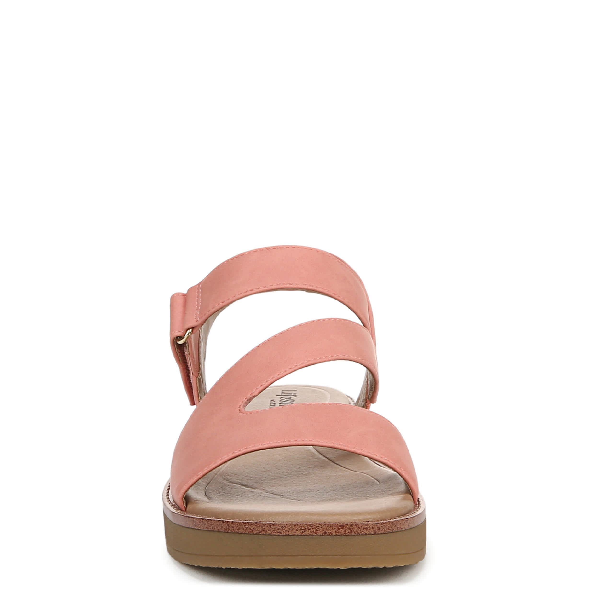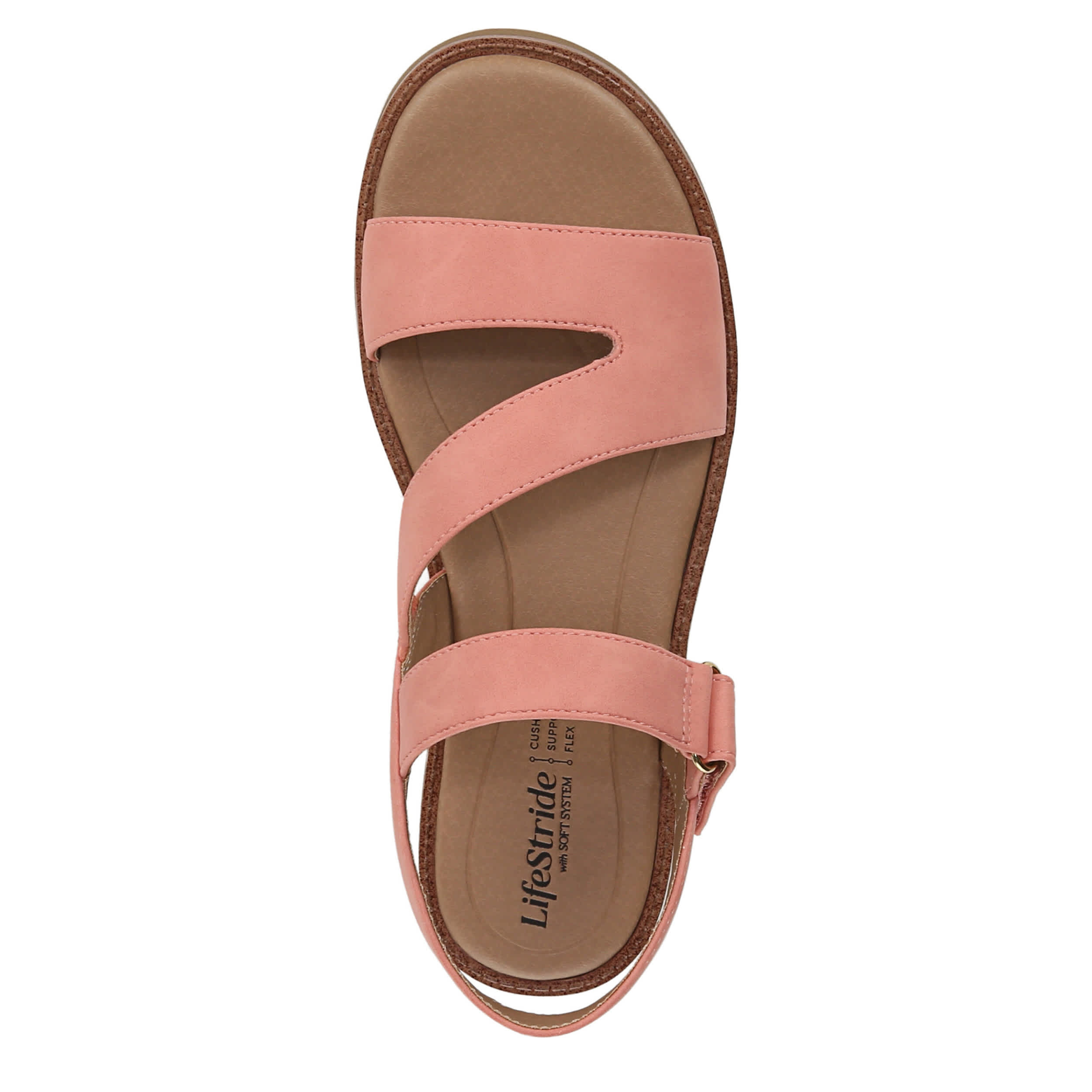 Step into fresh style with the Waverly sandal from LifeStride. Featuring a faux leather upper with built-in stretch for a secure fit, this platform sandal has a stylish asymmetrical design. The Soft System® comfort technology cushions every step, while the chunky sole adds lift and stability.