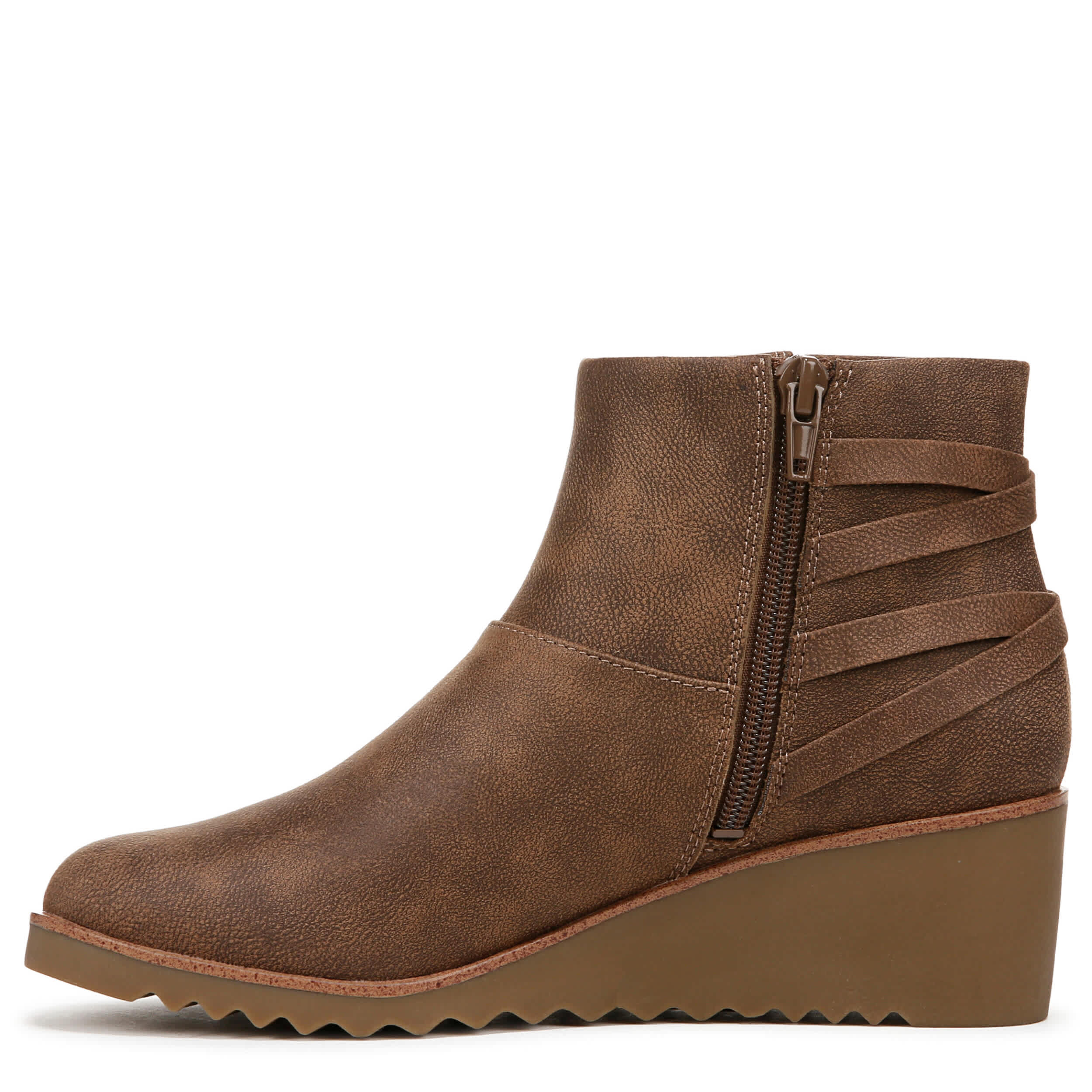 Get the full luxe effect in the Zariah wedge boot from LifeStride. Featuring a faux leather upper with a corseted back detail for extra style, this ankle boot also has a slight platform. The Soft System® comfort package cushions each step, while the wedge heel adds just enough lift.