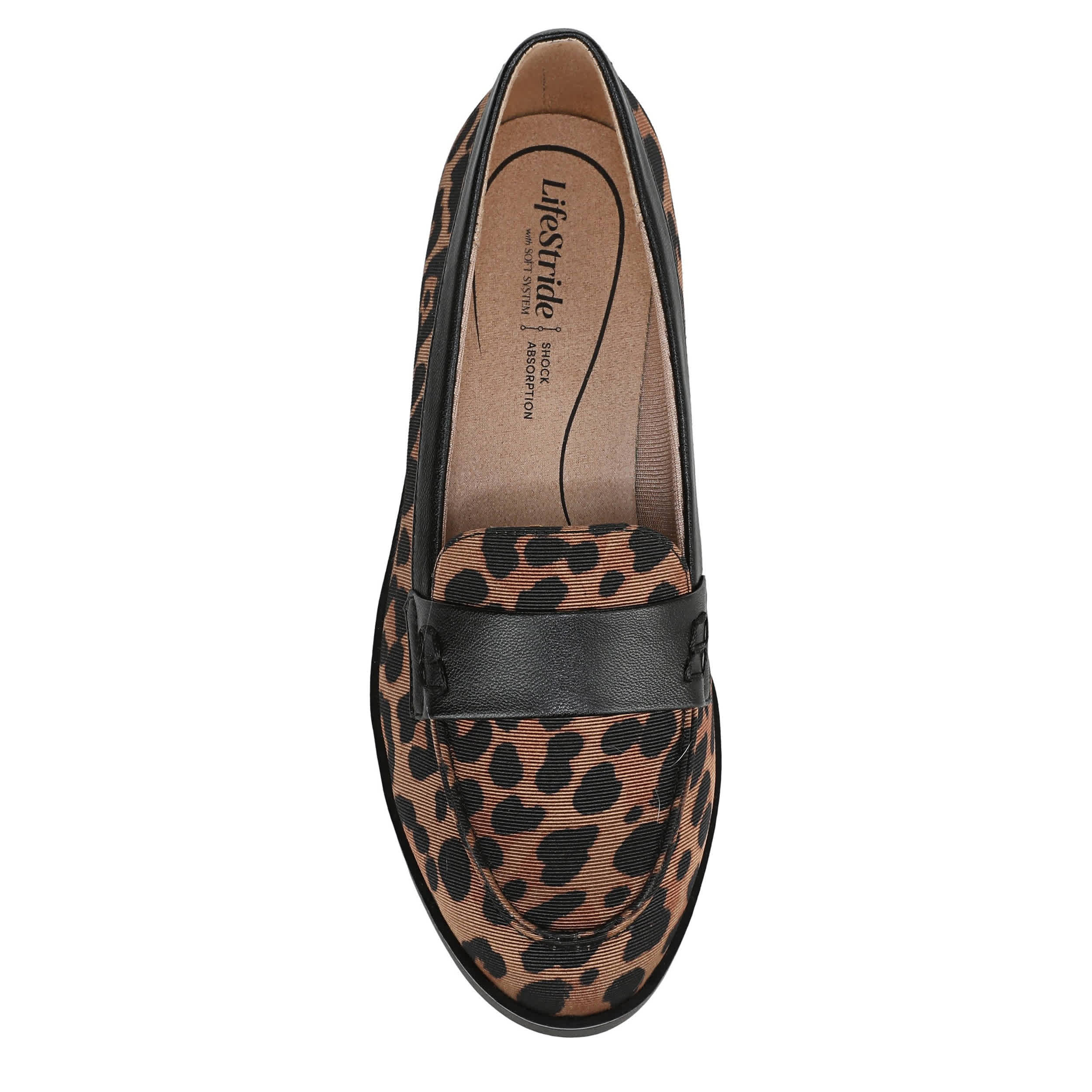 Metropolitan style with modern tailoring in the Zee women's loafer from LifeStride. Featuring a printed fabric upper with faux leather accents, this classic loafer styling also has a textured platform base. The Soft System® comfort package and Velocity 2.0® provide superior cushioning with luxe linings on the low heel.