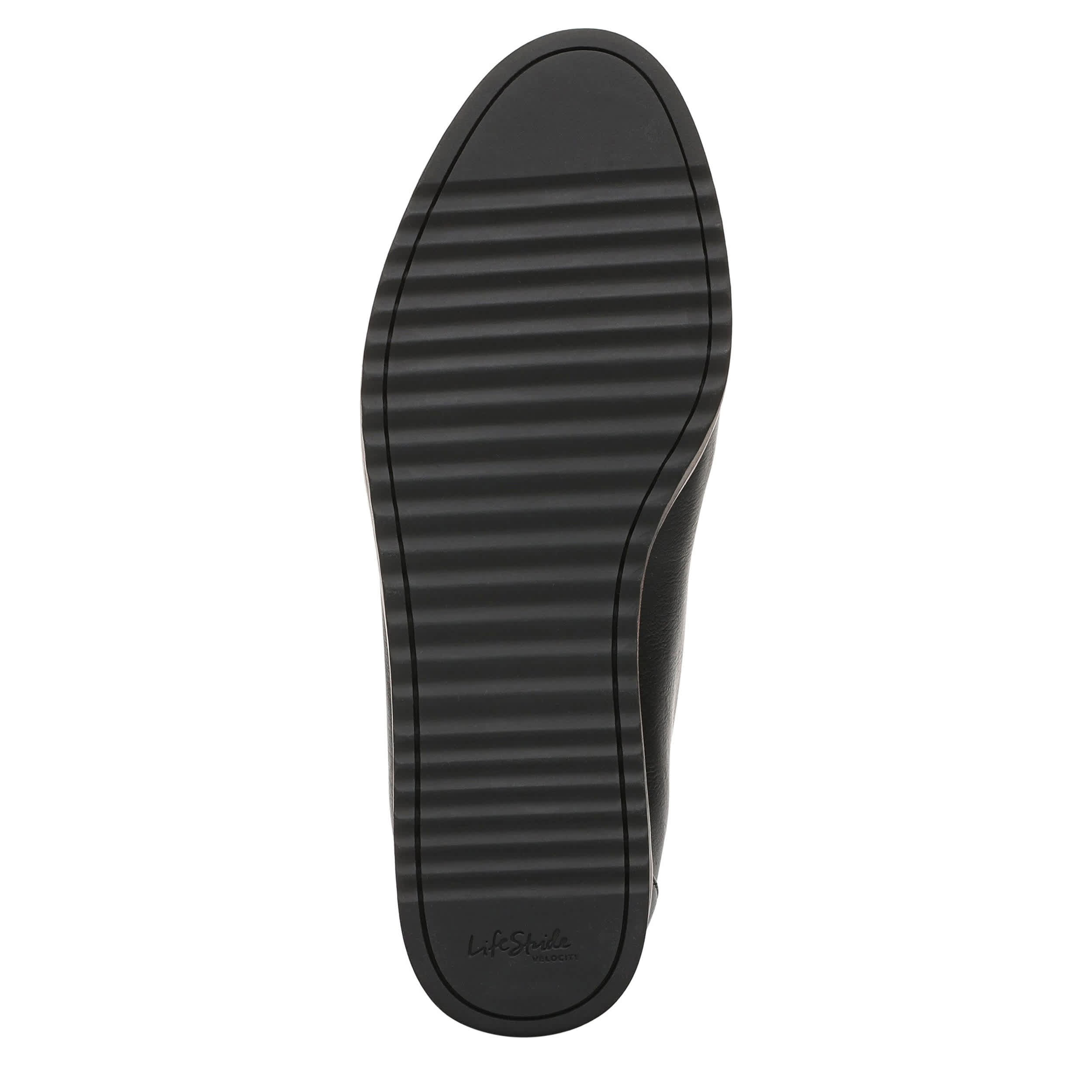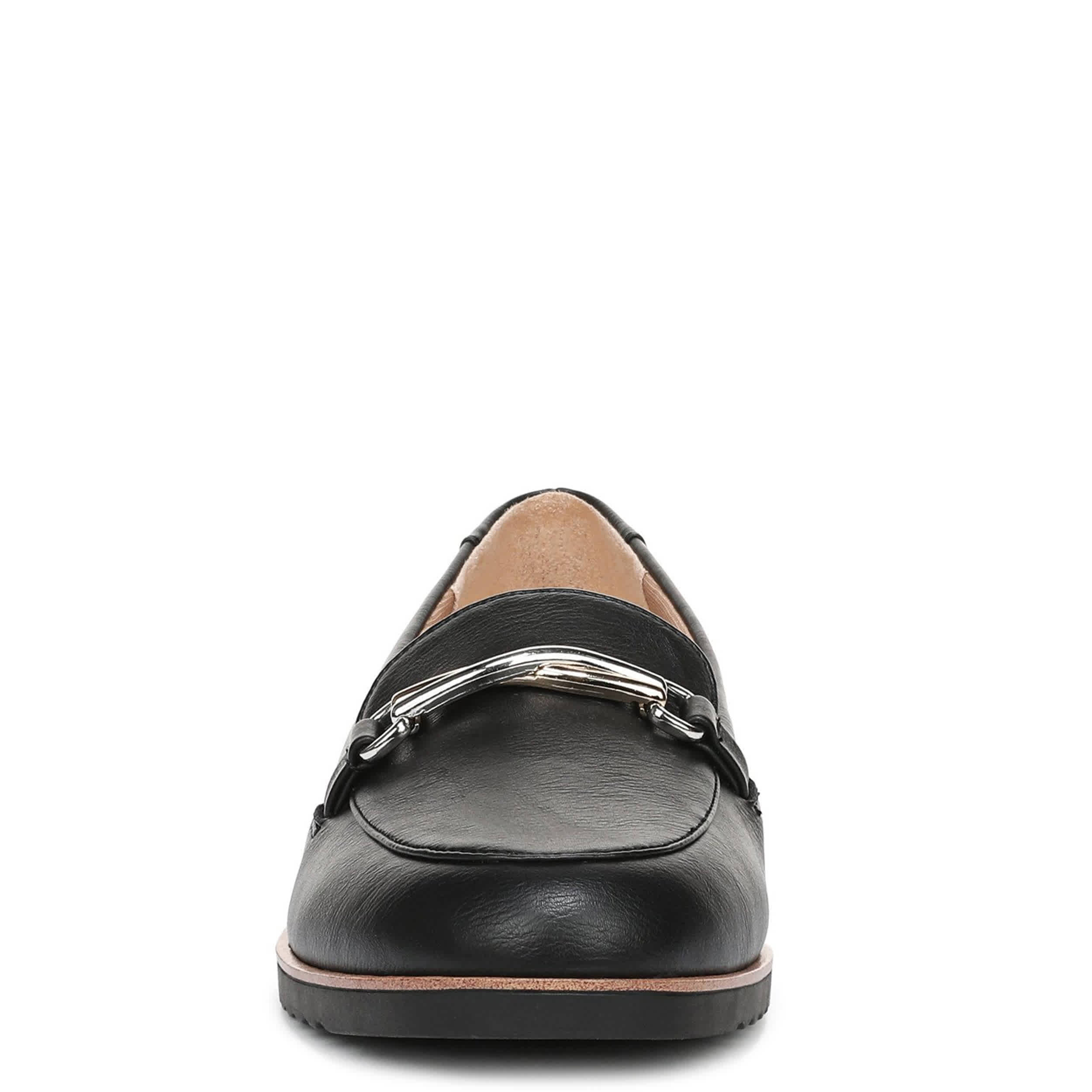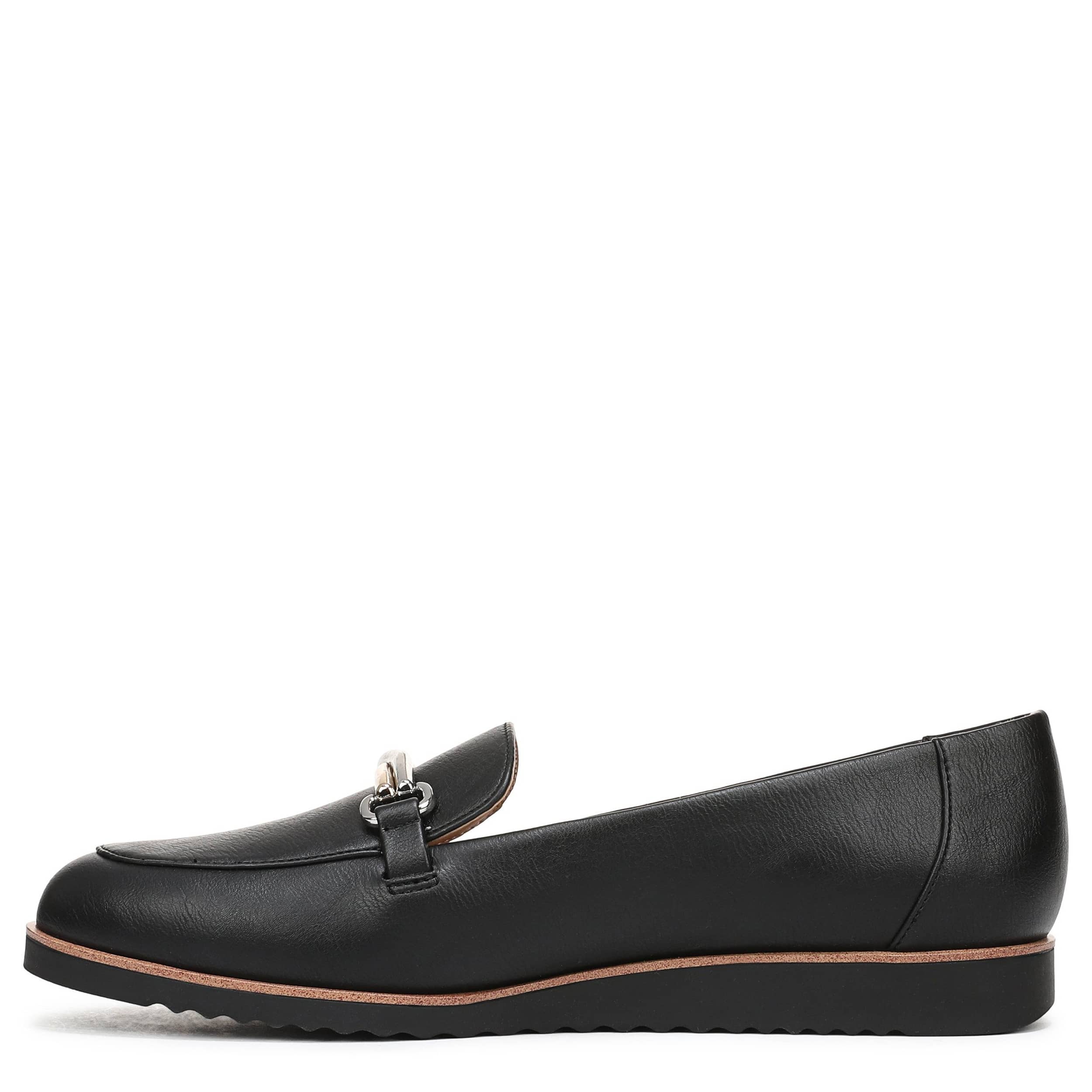 Make your style feel just as effortless as it looks in the Zeeland women's loafer from LifeStride. Featuring a faux leather upper with an edgy metal accent across the vamp, this almond-toed loafer also has a textured sole. The Soft System® comfort technology provides shock absorption with pressure distribution on the subtle heel.