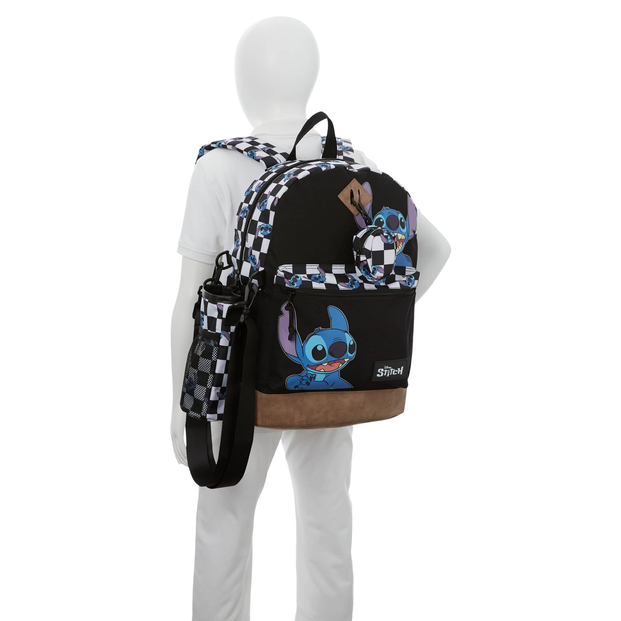 Go on an out-of-this-world adventure with the Lilo & Stitch boys' Stich backpack. Featuring blue Disney Stitch graphics and a fun checkered print, the backpack ensures comfort with adjustable, padded shoulder straps and has a convenient side pocket to store his water bottle. The front pocket is perfect for pencils and house keys.