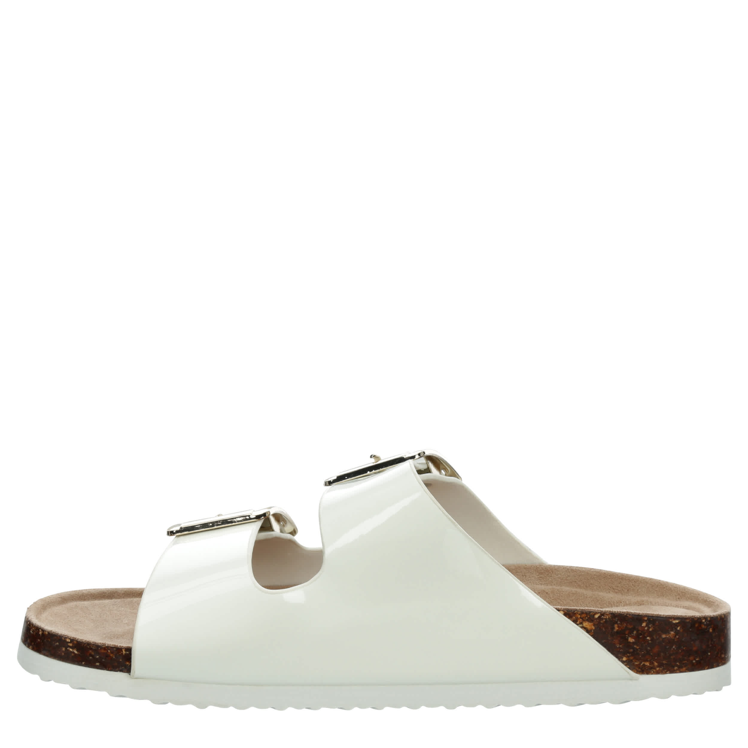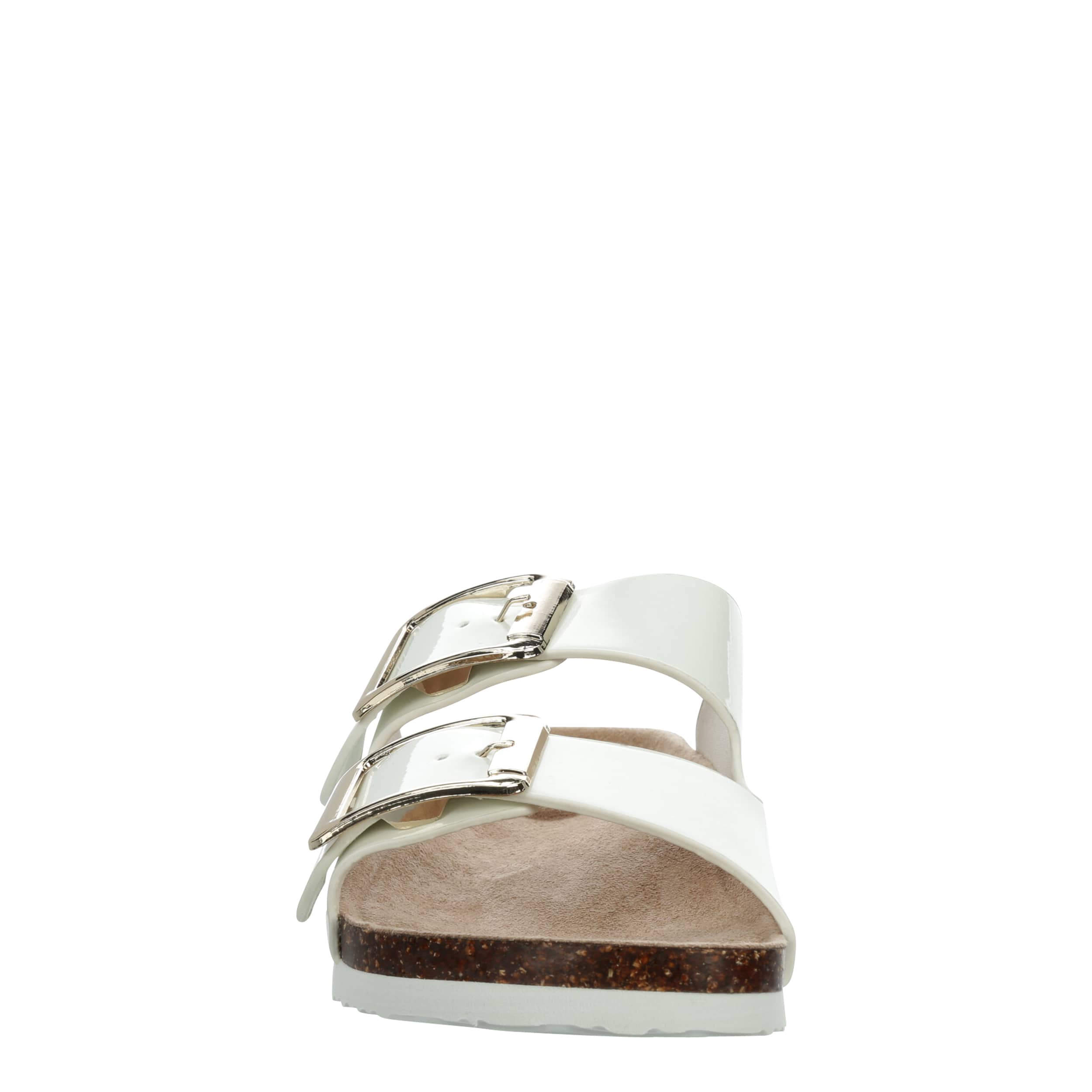 Get your summer outfits ready with the madden girl Bodie slide sandal. With a glossy patent upper, this shoe has dual buckle straps for a simple yet classic look. The contoured footbed supports your foot, while the synthetic outsole offers traction for all your plans.