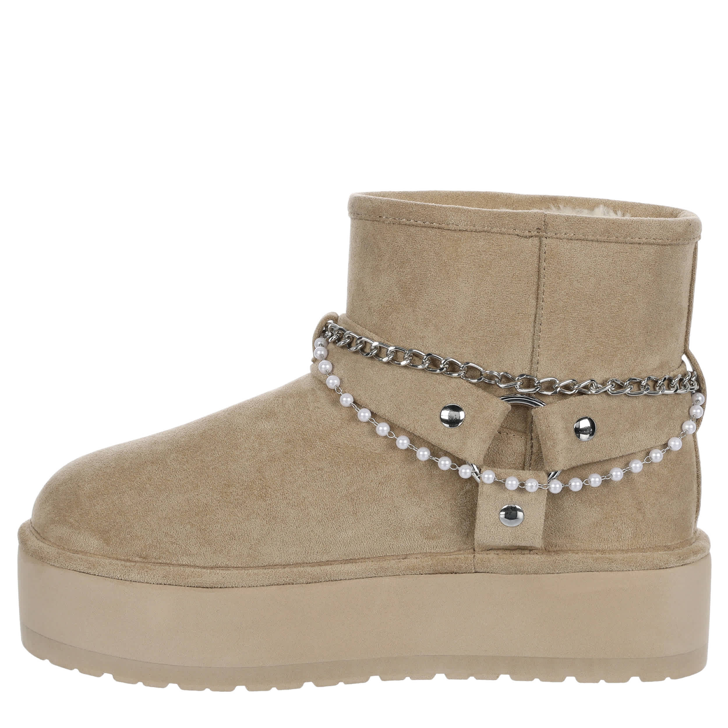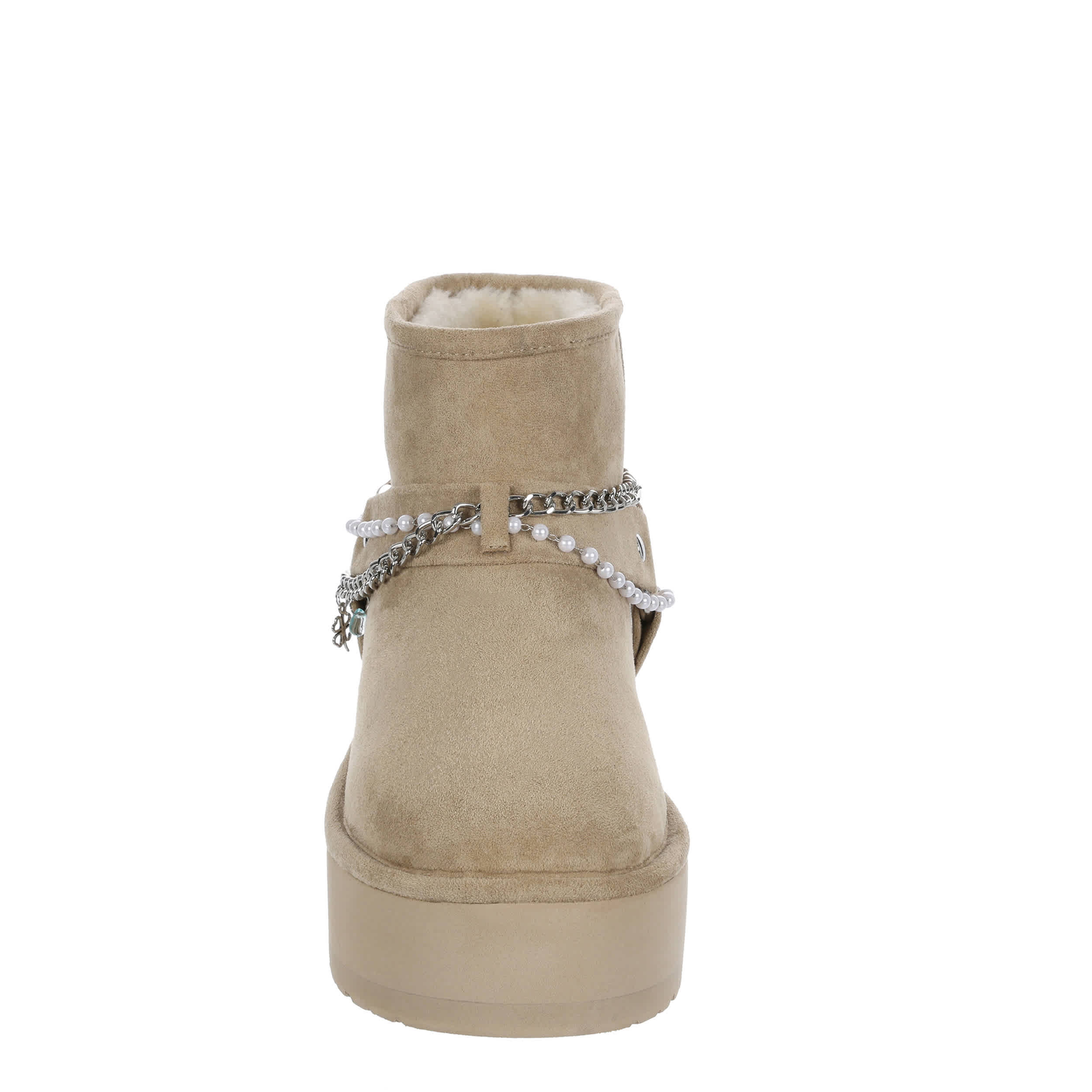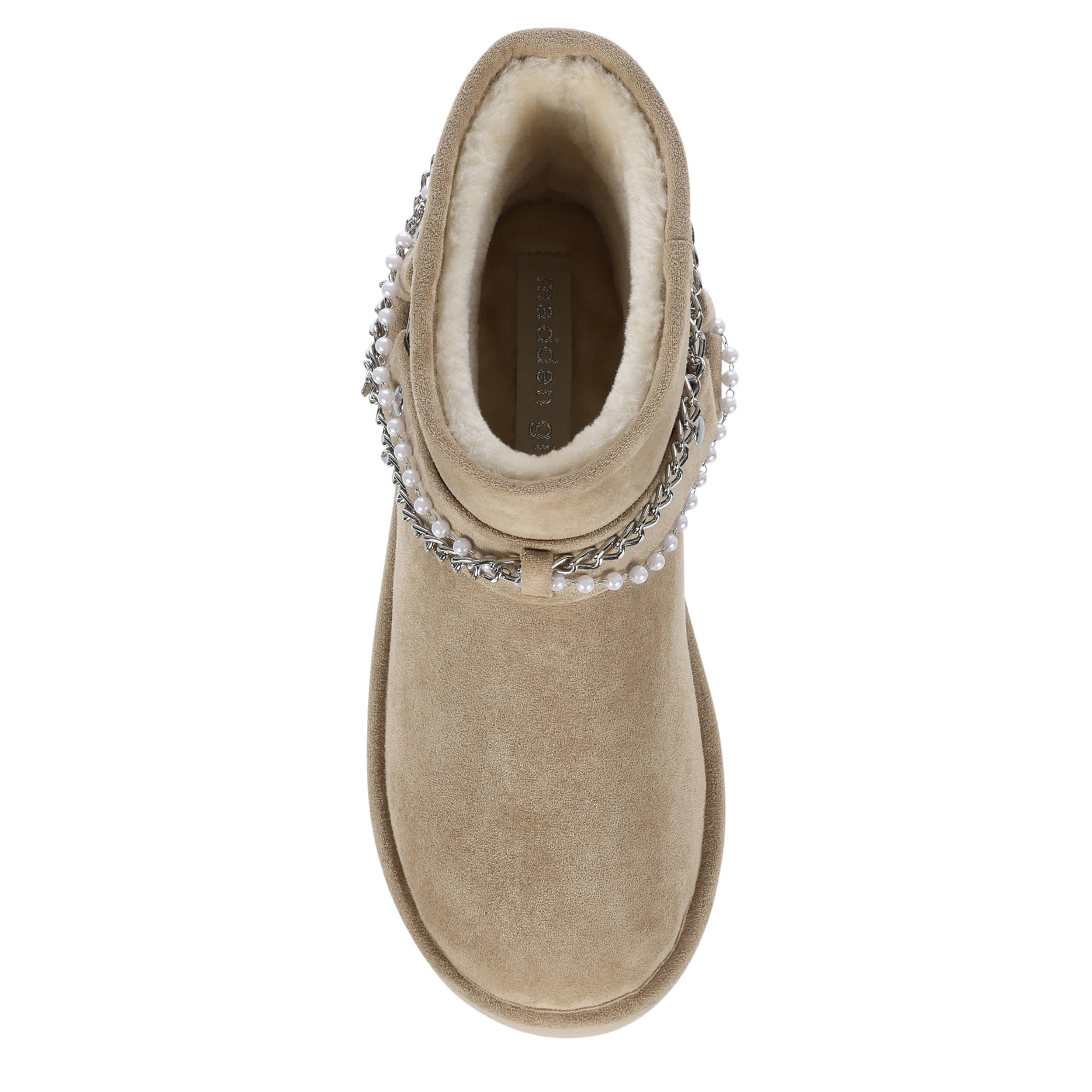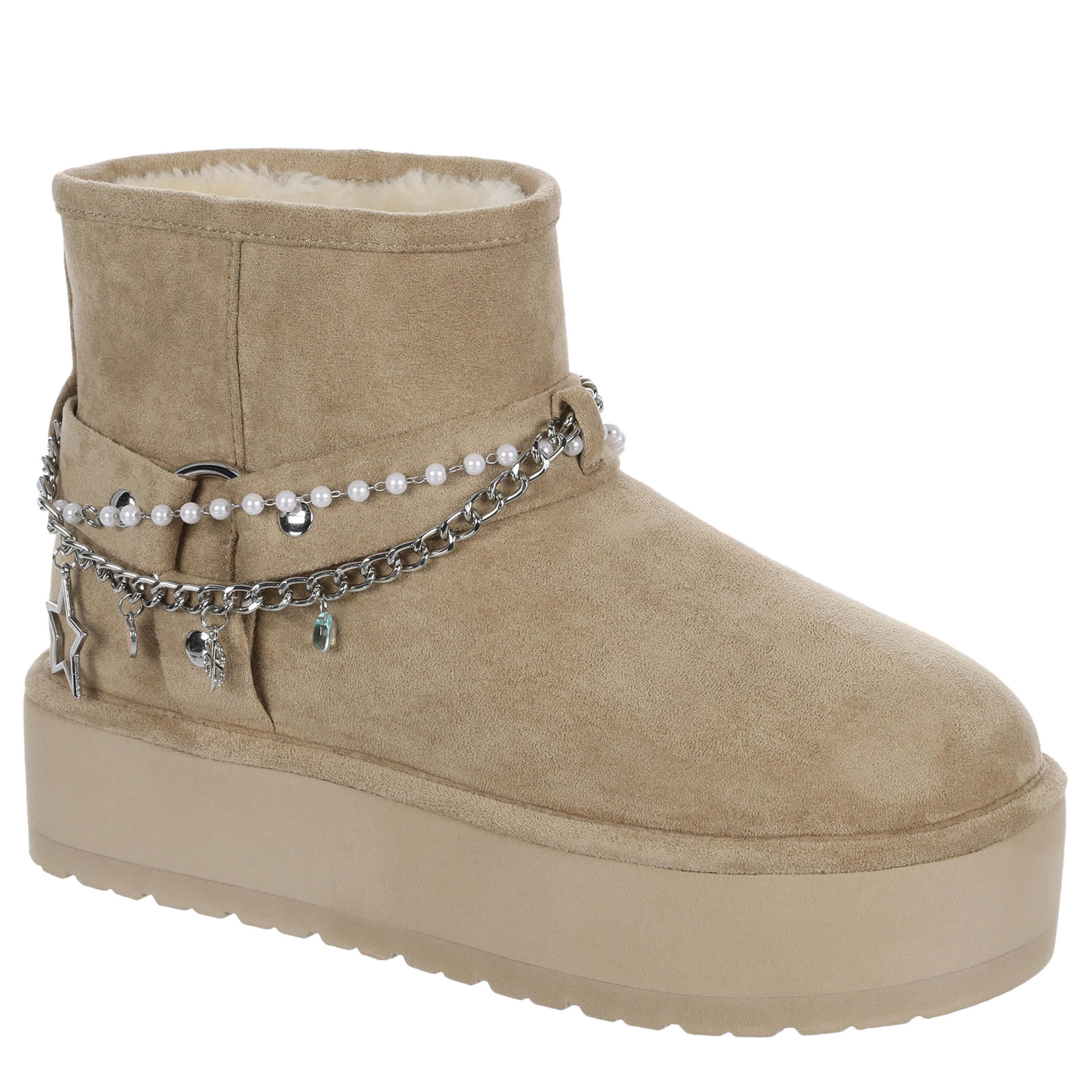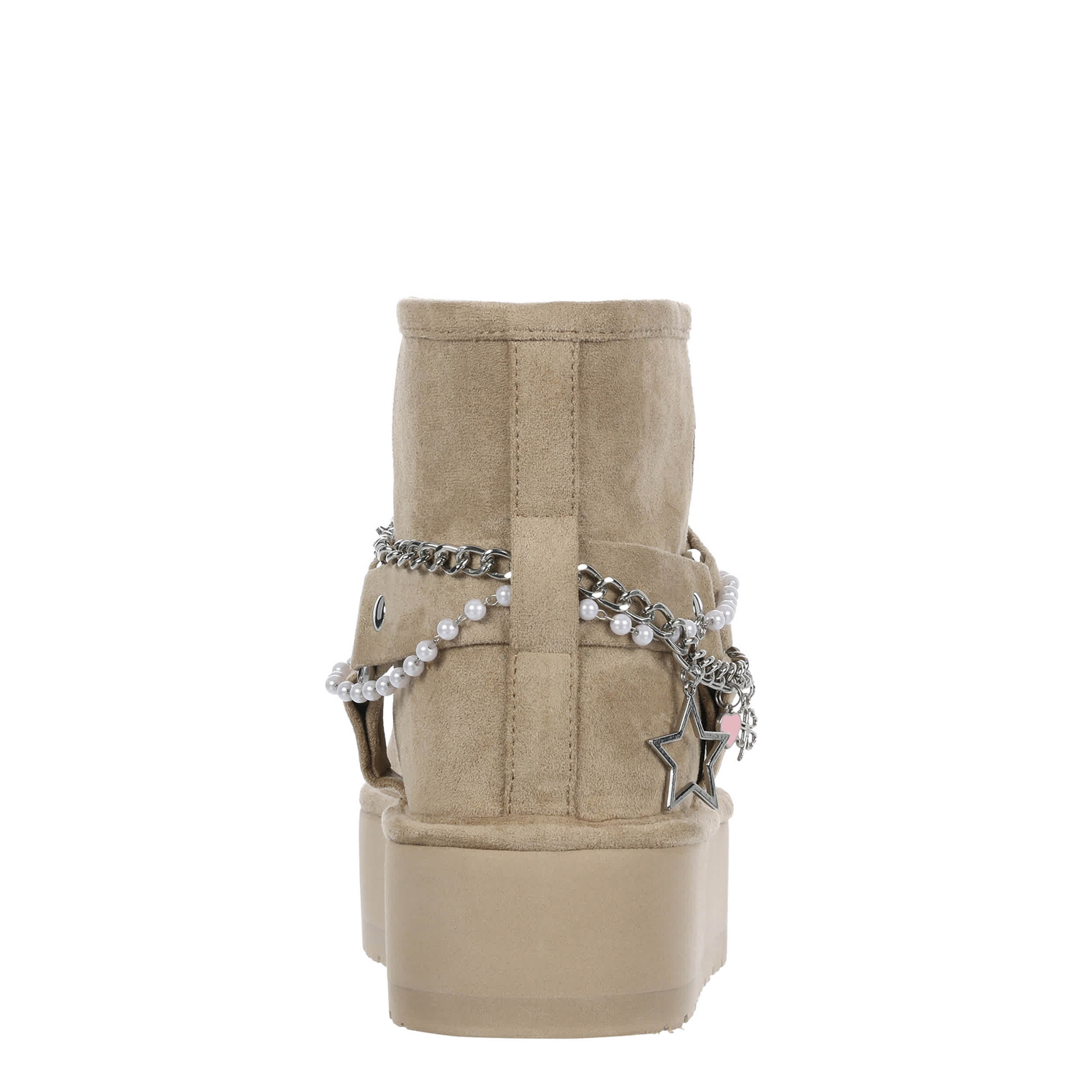 Edgy warmth see you through fall in the Emberly women's fur boot from madden girl. Featuring a microsuede upper with a chainlink and studded accents for extra style, this flatform bootie lifts your spirits every wear. Walk confidently on the sturdy flat platform sole.