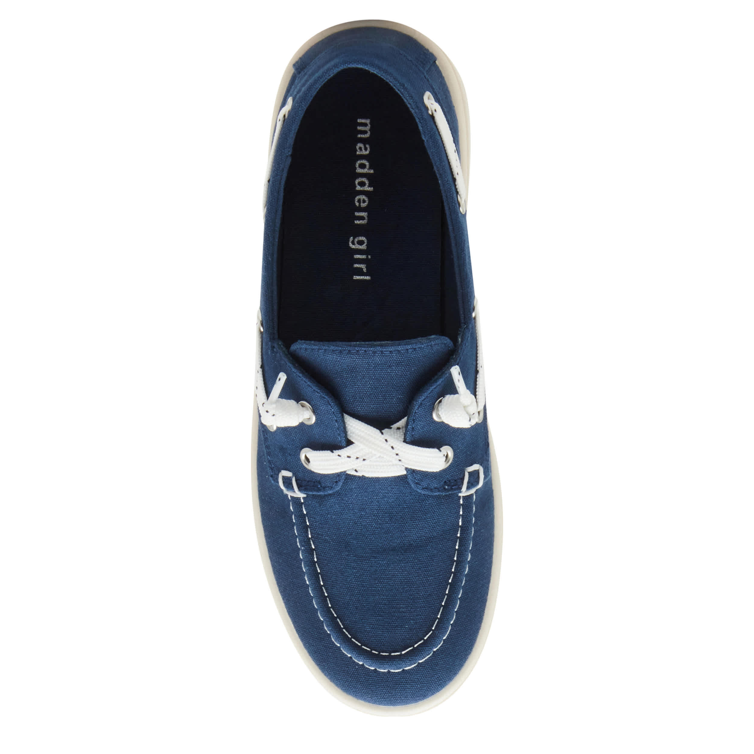 The madden girl Galley boat shoe will be your new everyday favorite. With a 360° lacing system, this shoe has a canvas upper with a round moc toe to give a classic, casual look. The cushioned insole and rubber outsole ensure supported steps, while the platform design gives a little lift.
