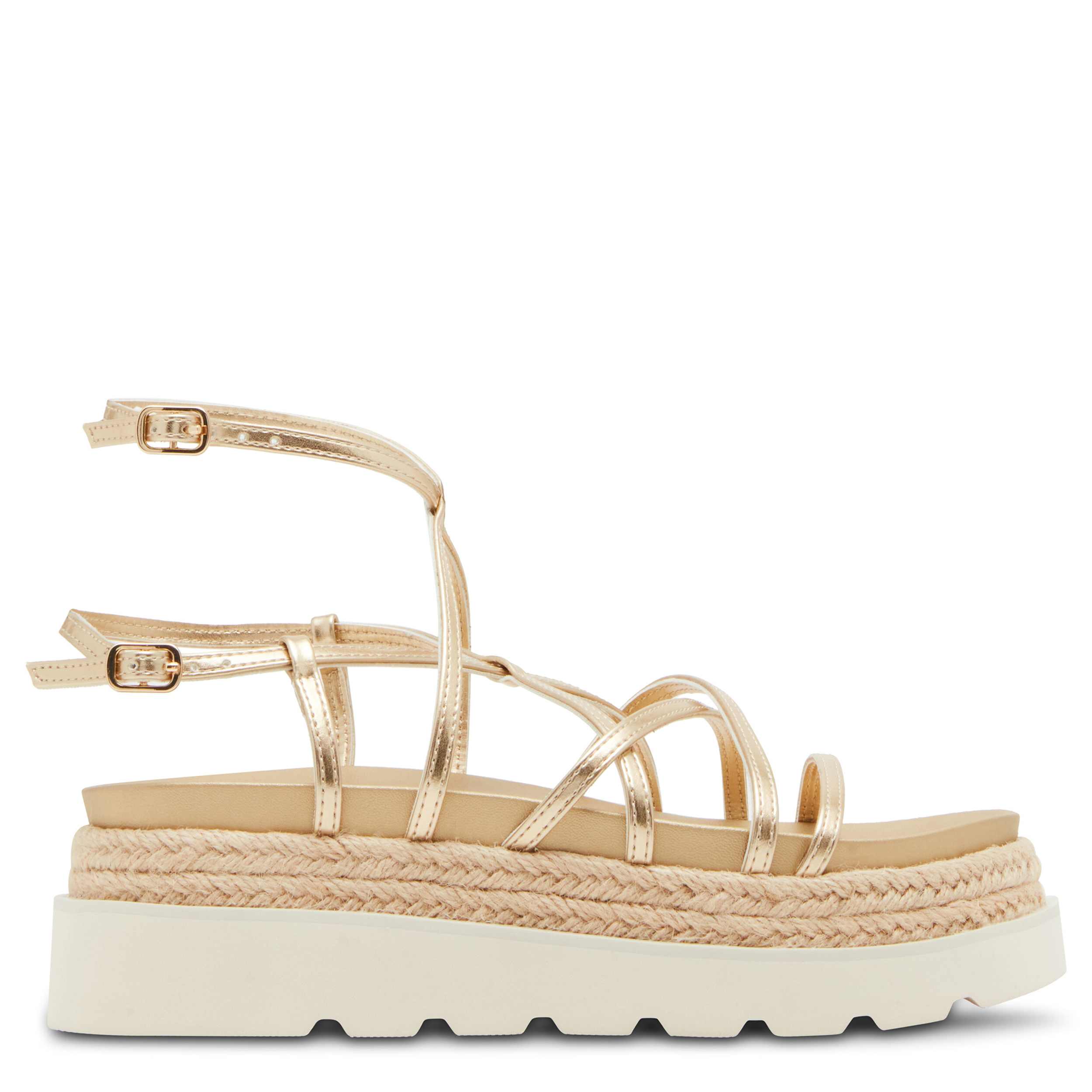 Lock in your style with the May women's sandal from madden girl. Featuring a slim, faux leather straps with small buckles for security, this chunky sandal is anything, but subtle. The footbed cradles your foot, while the espadrille platform adds style and just enough lift.