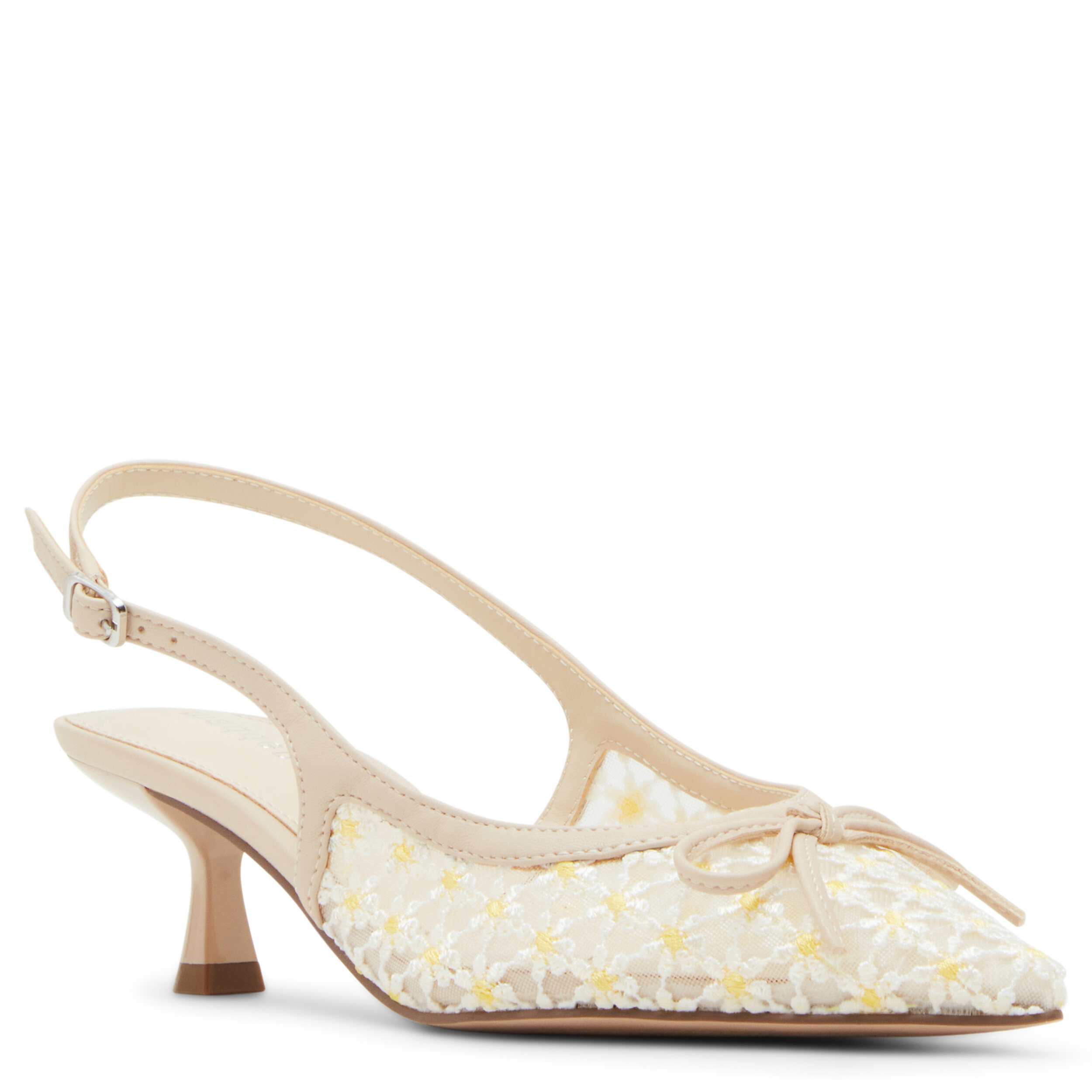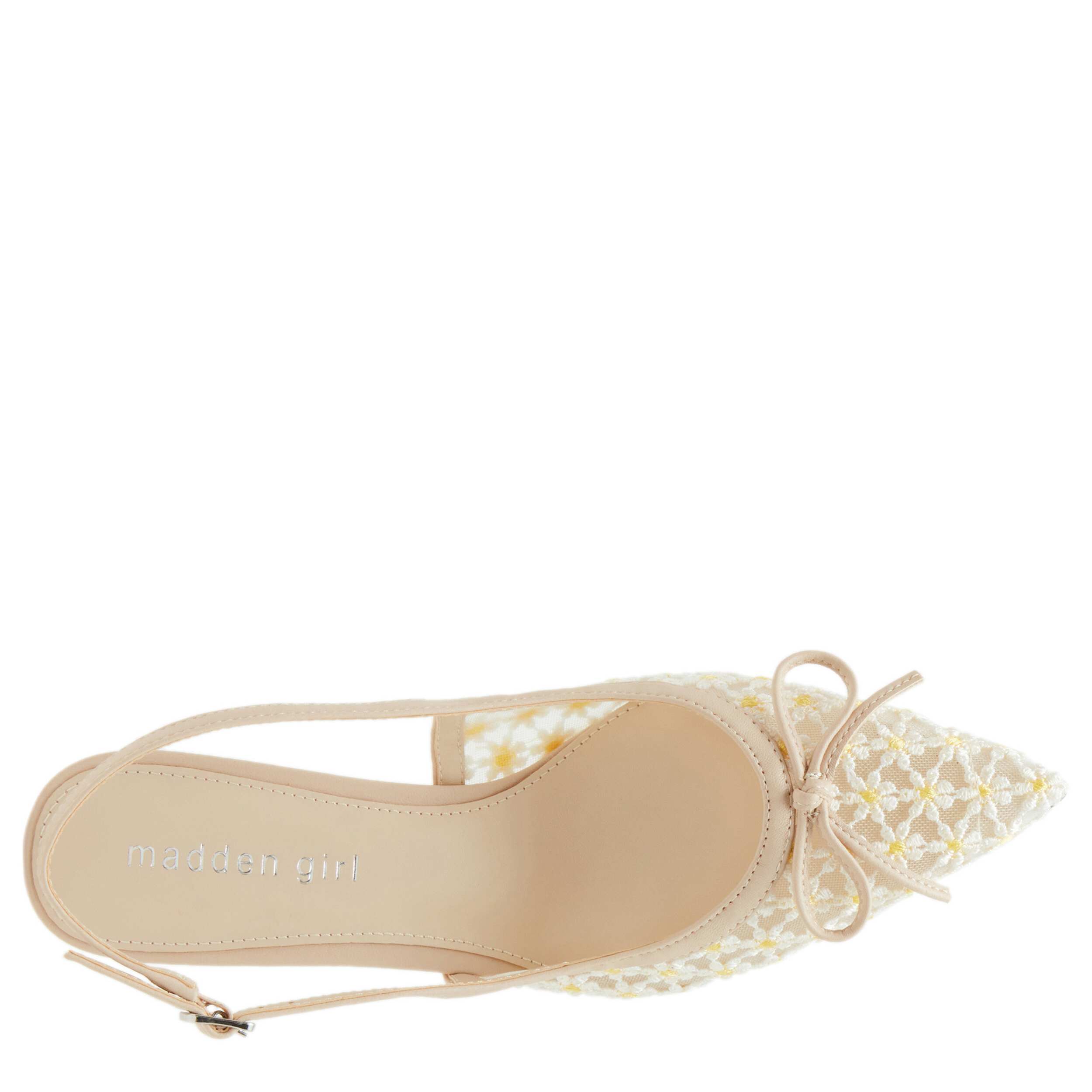 Get ready for your close-up in the Vogue pump from madden girl. Featuring a sheer mesh upper with a dainty bow accent for extra flair, this slingback heel is very dressy. The footbed soothes your foot while the sturdy heel adds nice lift.