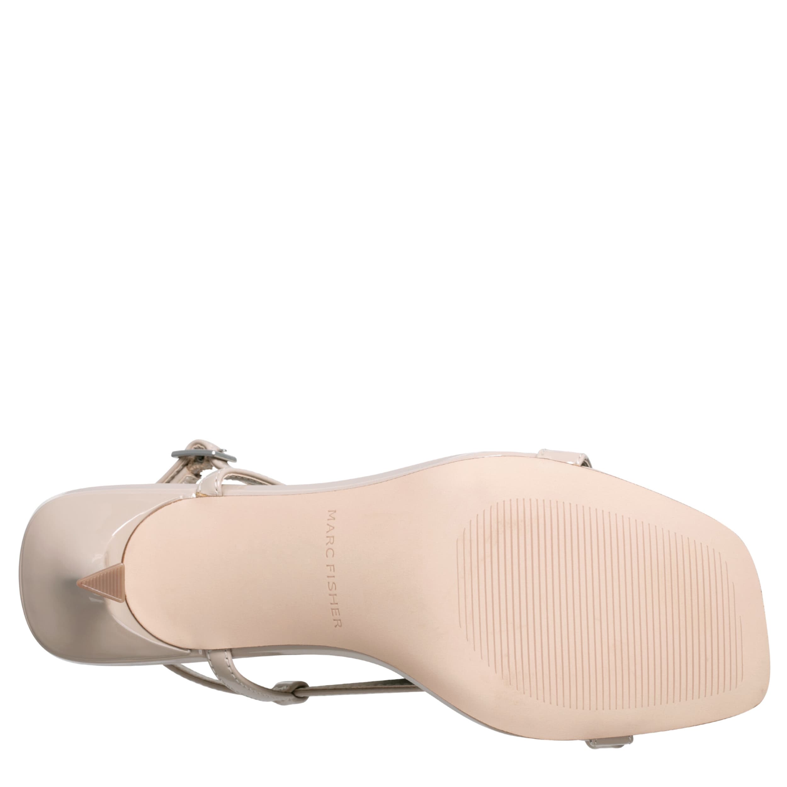 Tie up your dressy style with the Marc Fisher Danzy sandal. Minimal and dainty, this shoe has a glossy synthetic upper with a sleek square open toe and cute bow detail for extra feminine flair. The padded insole comforts your steps, while the kitten heel gives just enough lift.