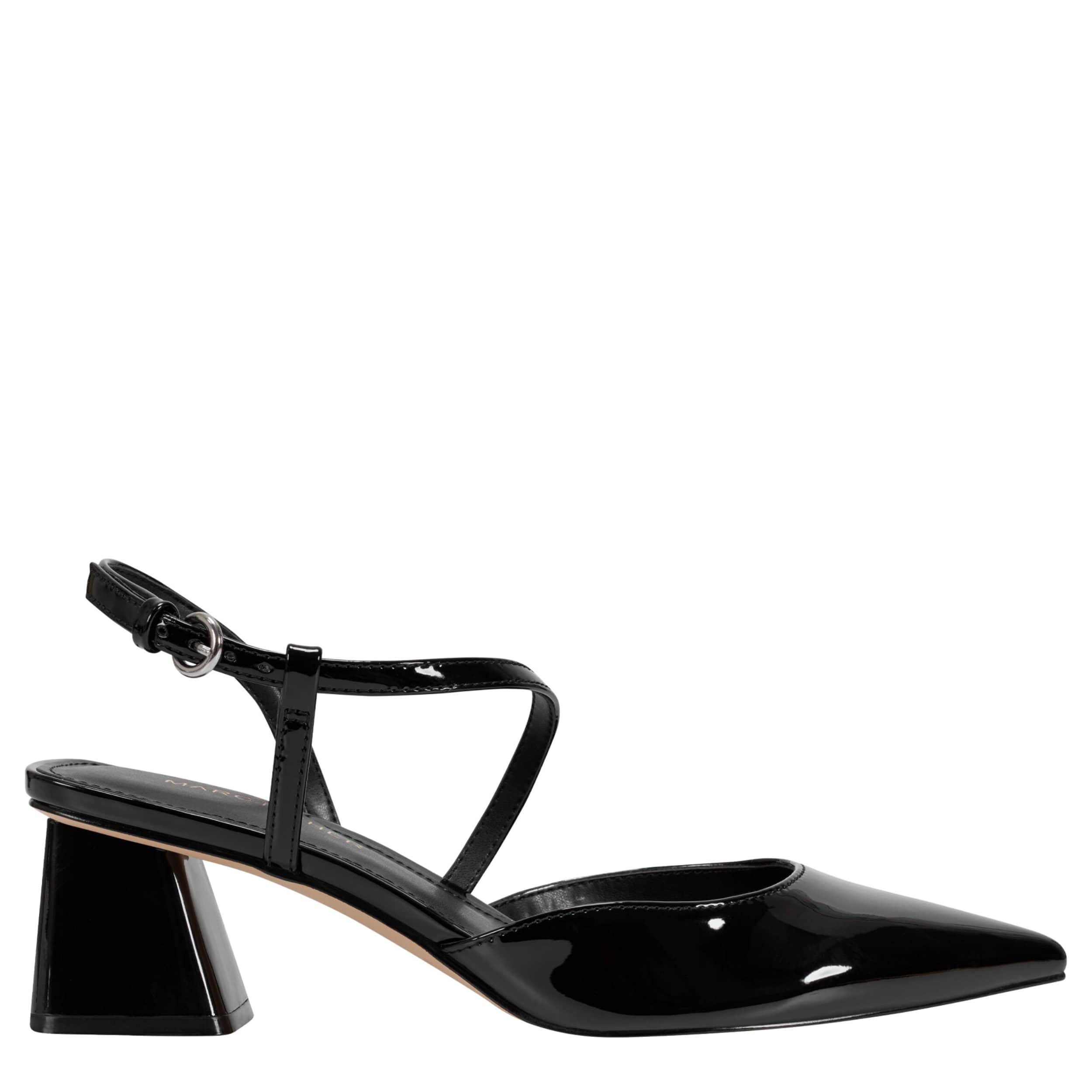 Modern looks amazing in the Marc Fisher Loya pump. With a glossy upper and wraparound strap design, this shoe catches attention with its sleek pointed toe. The insole soothes your foot, while the mid-block heel elevates your style.