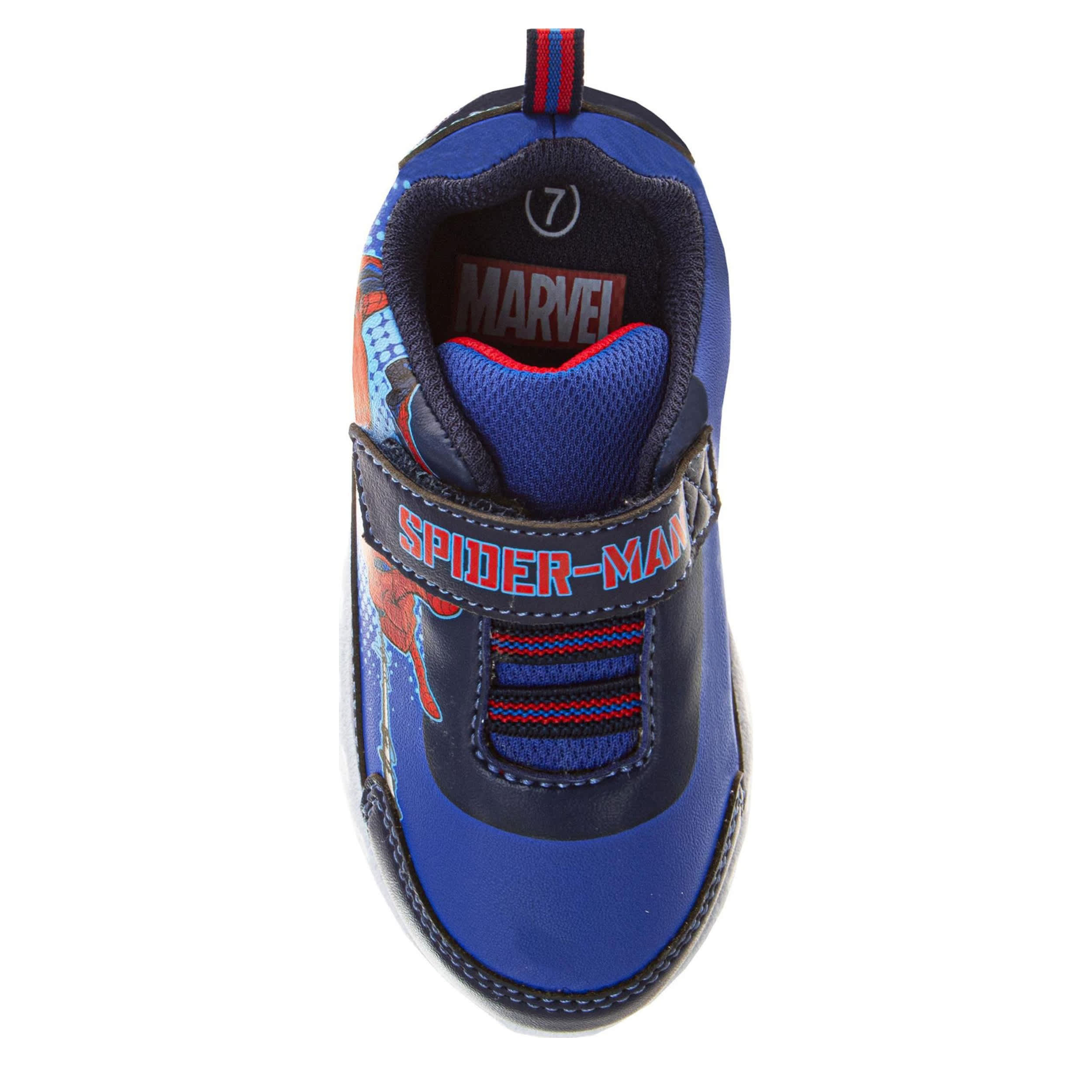Join Spidey scaling walls with the Spider-Man toddler boys' sneaker. Featuring a large Spider-Man graphic on the side with a secure ankle strap, this sneaker also has a rear pull tab for easy entry. The insole cushions his foot, while the traction outsole provides a durable grip.